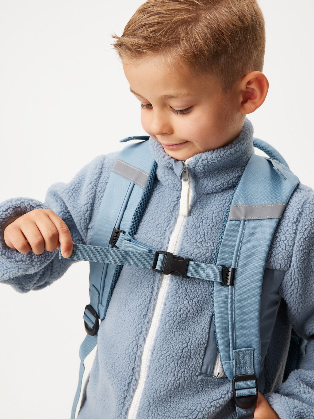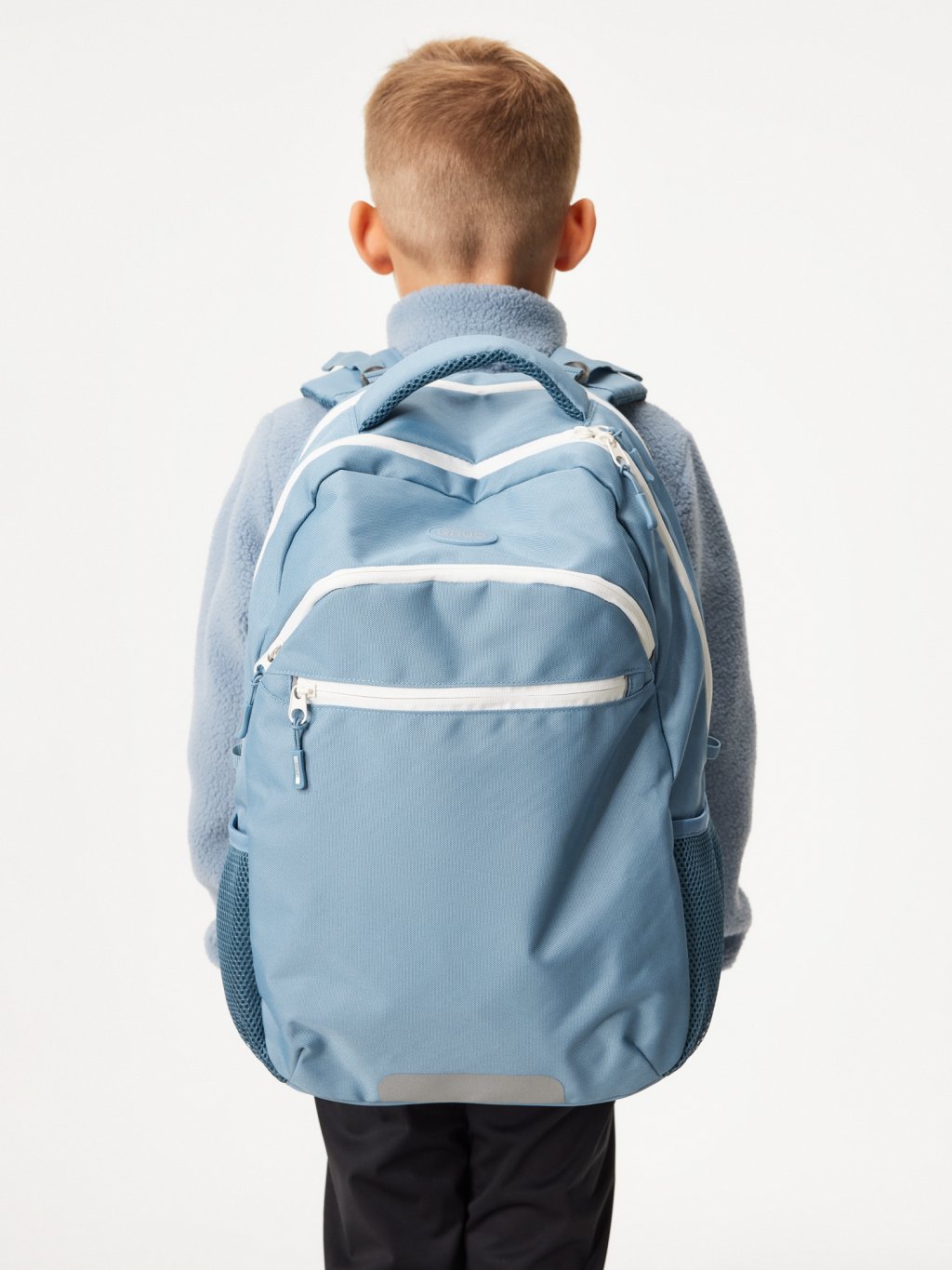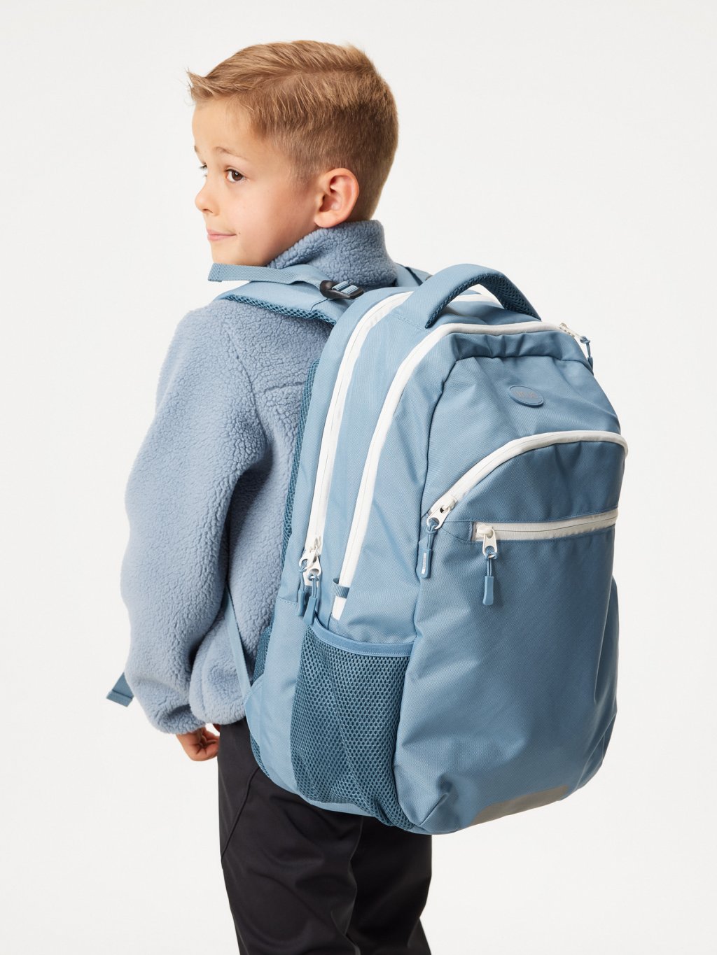 A larger backpack that easily handles everyday use, travel, or a weekend trip. With its timeless design, it’s perfect for older kids as well as moms looking for a practical yet stylish helper. Two roomy main compartments hold clothing, snacks, and other essentials with ease. On the front, there are two smaller zippered pockets for neatly storing little items and travel treasures. Side pockets are ideal for water bottles. Comfort is ensured by padded back support and a chest strap that can be tightened quickly and easily. Thoughtfully placed reflective details increase safety at every step. Designed in the Czech Republic, made in China. A reliable companion for every day, whether you’re heading out into nature or into the city.