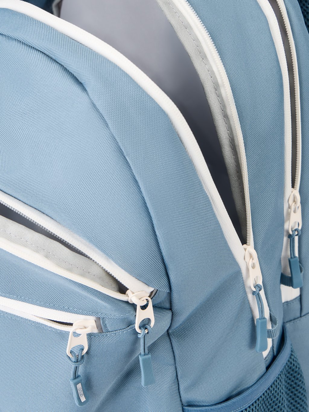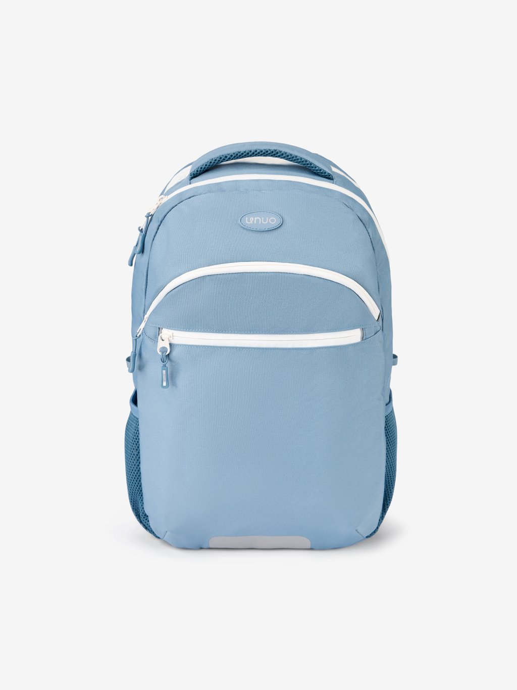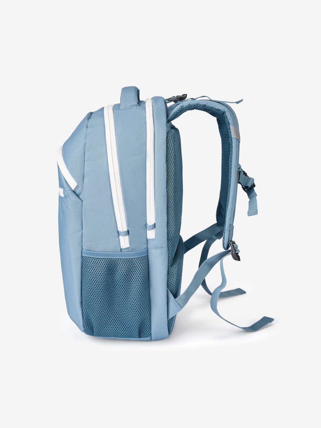 A larger backpack that easily handles everyday use, travel, or a weekend trip. With its timeless design, it’s perfect for older kids as well as moms looking for a practical yet stylish helper. Two roomy main compartments hold clothing, snacks, and other essentials with ease. On the front, there are two smaller zippered pockets for neatly storing little items and travel treasures. Side pockets are ideal for water bottles. Comfort is ensured by padded back support and a chest strap that can be tightened quickly and easily. Thoughtfully placed reflective details increase safety at every step. Designed in the Czech Republic, made in China. A reliable companion for every day, whether you’re heading out into nature or into the city.