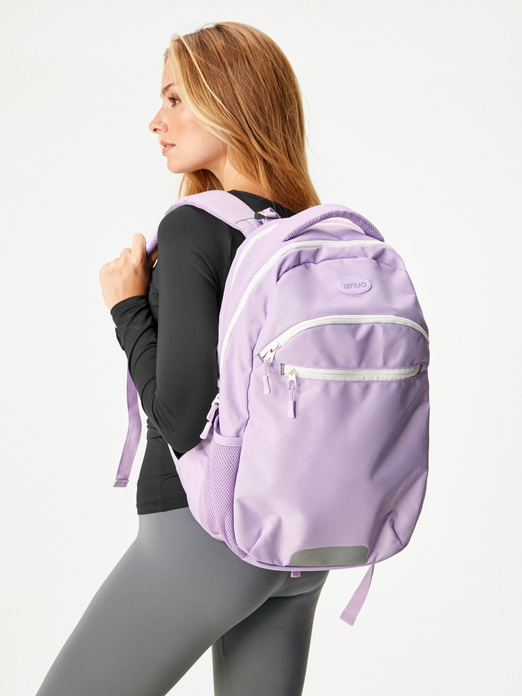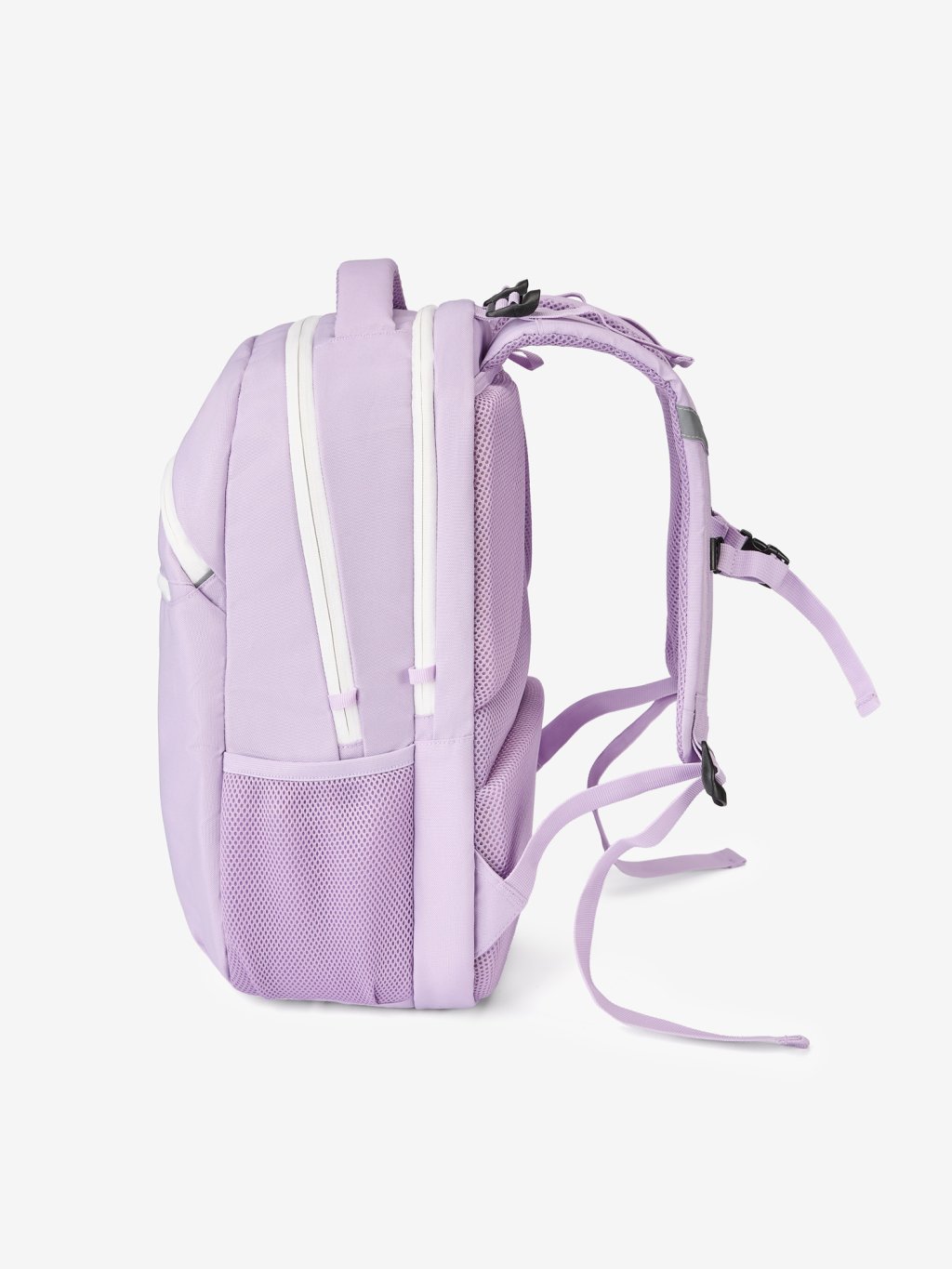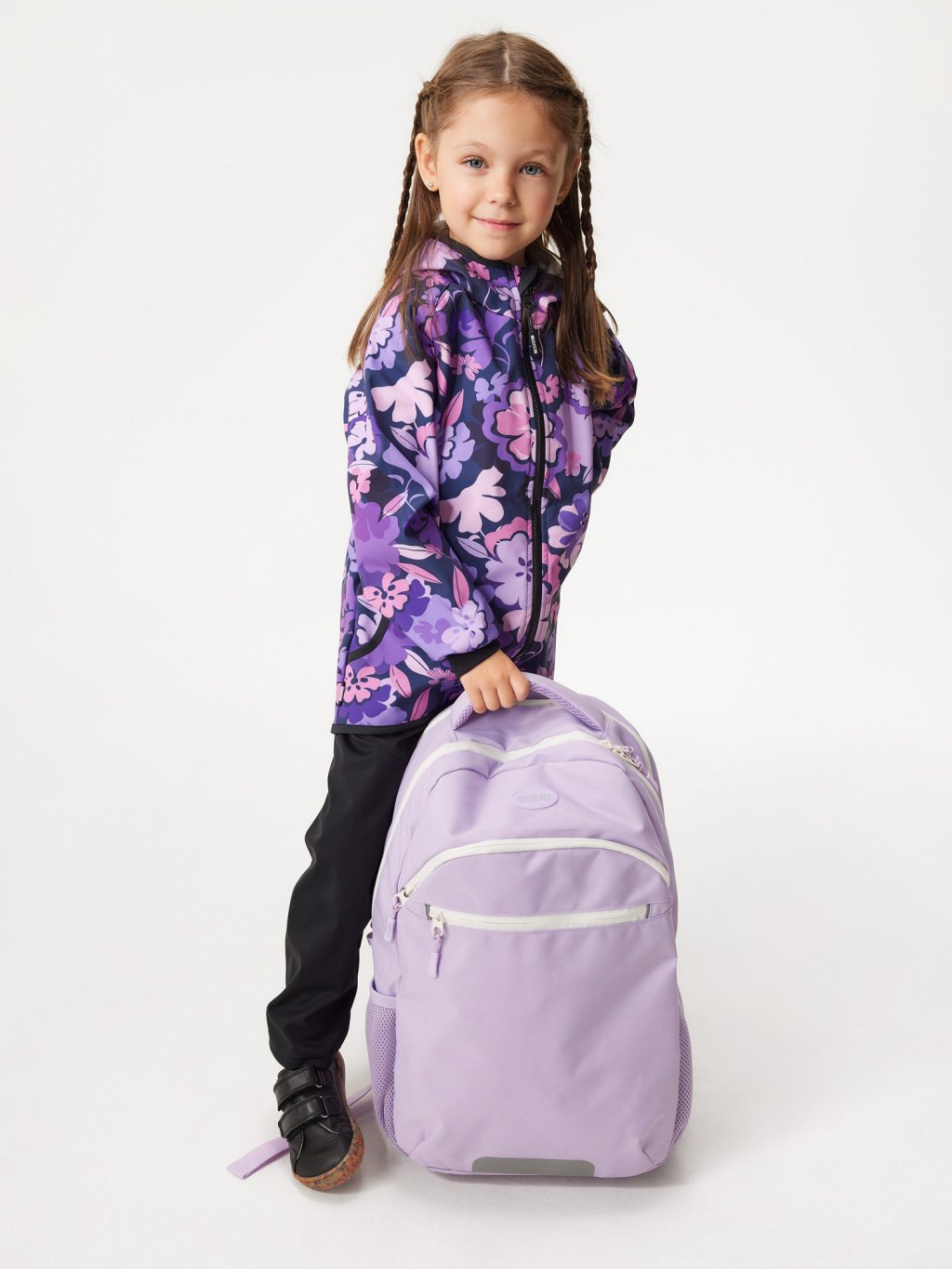 Backpack designed for older children and active moms. Two spacious main compartments, two smaller front pockets, side bottle holders, and reflective details. Padded back and chest strap ensure comfortable wear all day long.