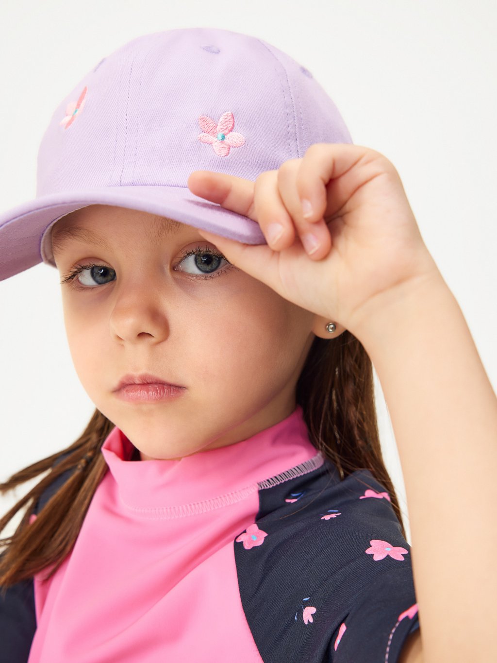 Children's cap made of 100% cotton with original embroidery. Available in three sizes, easily adjustable with a practical velcro fastener.