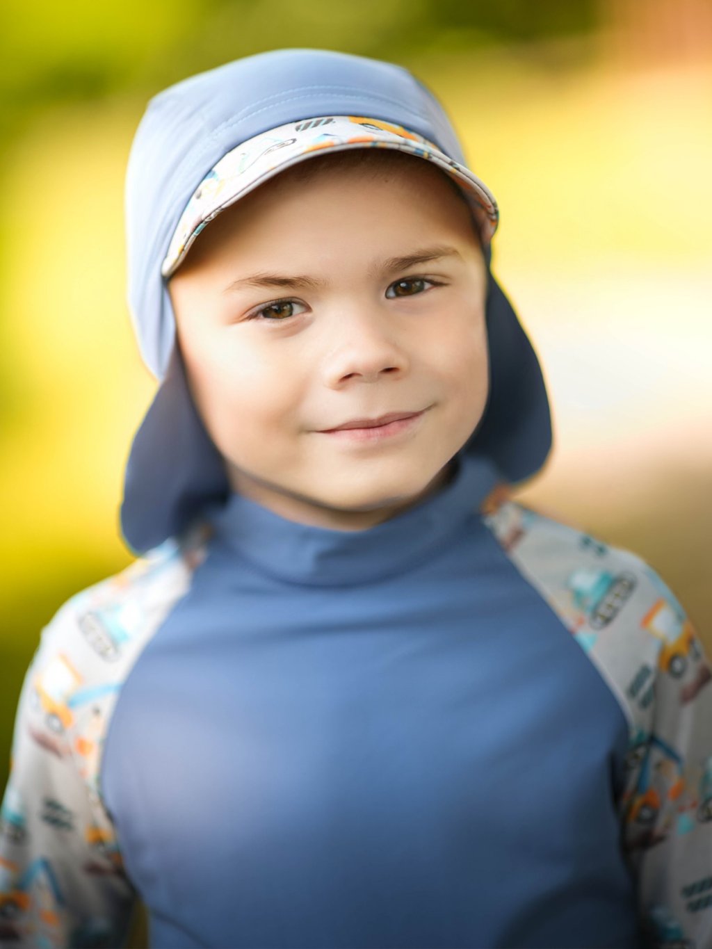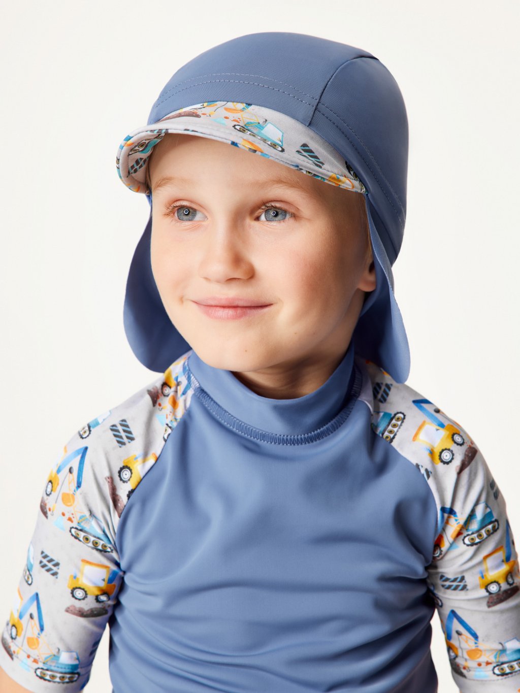 Dětská kšiltovka s plachetkou a UV ochranou 50+, Modrá, Bagry
