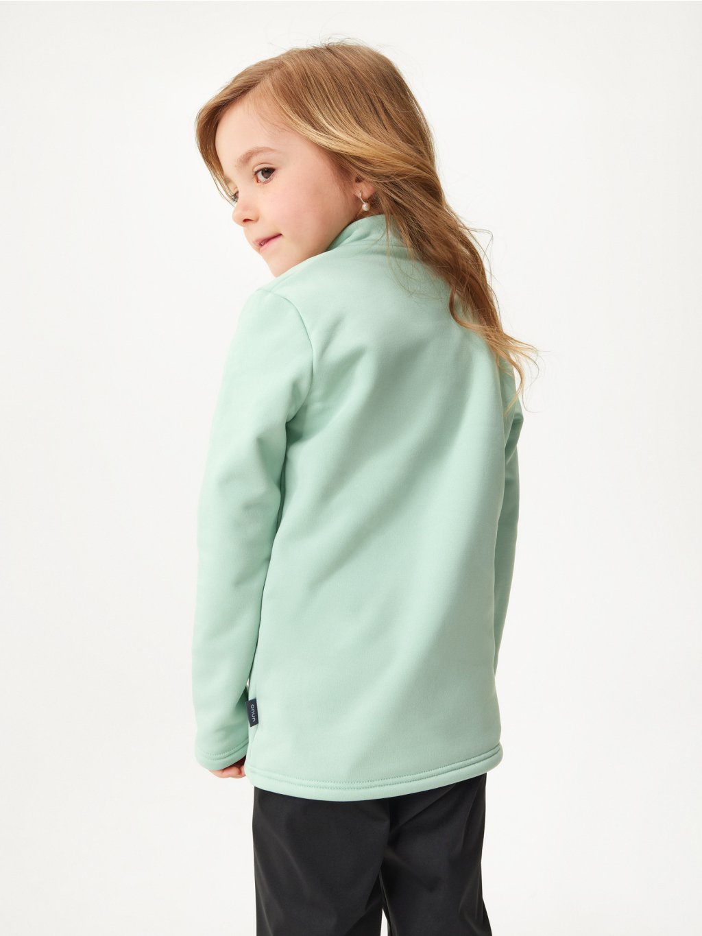 The Tecnostretch fleece hoodie is designed for maximum comfort and freedom of movement. The material is stretchy, warm and breathable, ensuring that children will stay warm and comfortable even on colder days. The sweatshirt is worn over the head and has a small zipper at the neck for easy dressing and comfortable wear. It fits perfectly as a standalone layer or under a jacket, and its lightweight and durability make it great for all outdoor activities. The hoodie was designed and manufactured in the Czech Republic.