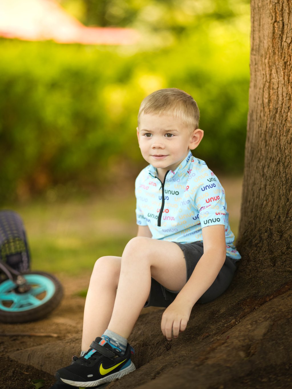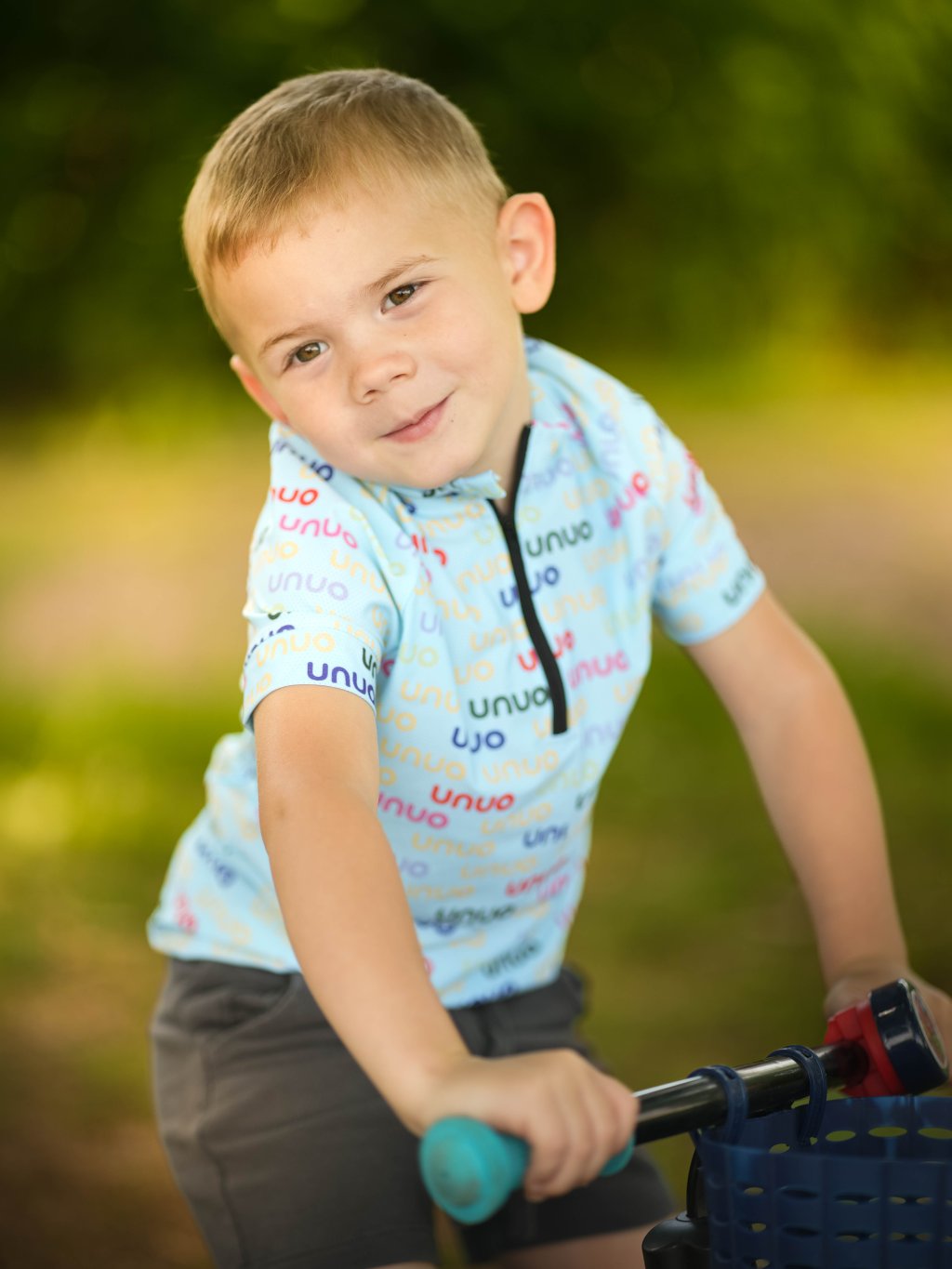 A children's cycling jersey that we created especially for young and old cycling enthusiasts. The jersey is made of lightweight, breathable material that is designed to wick away sweat and keep kids dry, comfortable and fresh for the entire ride. The fit and stretchy material allow for freedom of movement, while the back pockets are a great place to store small essentials. Plus, it's available in bright colors and popular designs that will make your kids easy to spot on the road or trail. Of course, the reflective UNUO logo on the back is a must.The cycling jerseys are designed and manufactured in the Czech Republic.