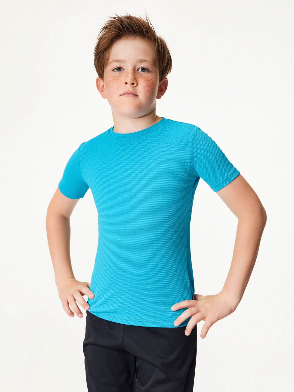 The kids' functional T-shirt is just what little adventurers need for sports, trips or frolicking outdoors. It's lightweight, breathable and ensures a great feeling during every activity