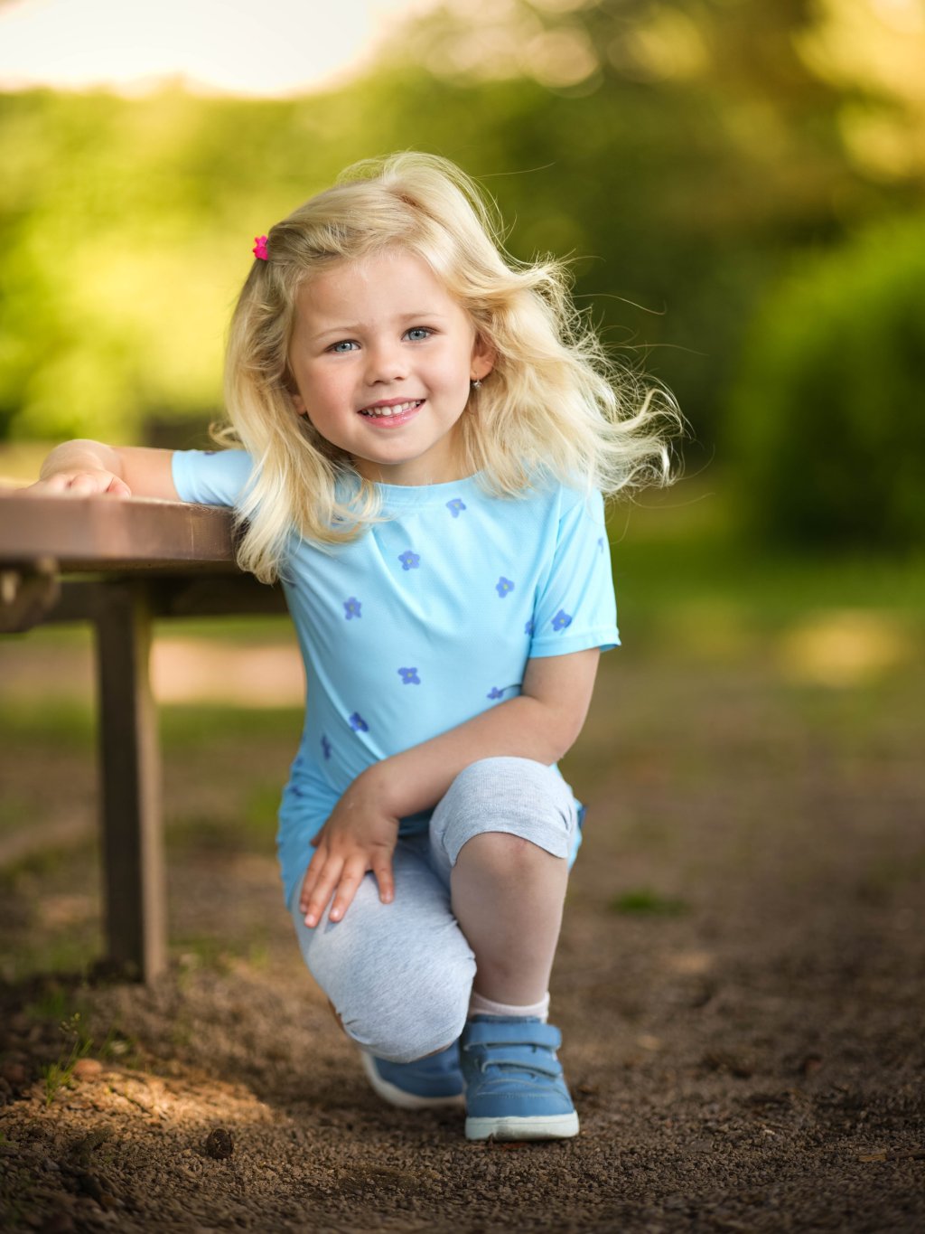 Children's functional T-shirt, L. Blue, Flowers