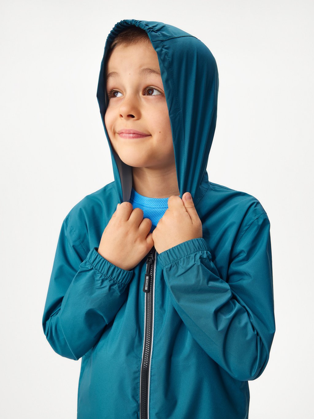 The rain jacket is made of lightweight and durable material. The water-repellent finish ensures that water droplets slide off the jacket's surface, and taped seams ensure that even heavy rain doesn't get anywhere. Thanks to these features, the raincoat effectively protects against rain and moisture.