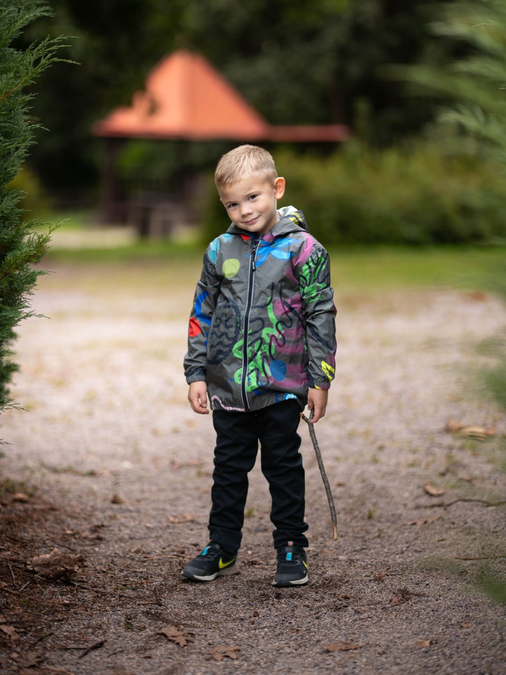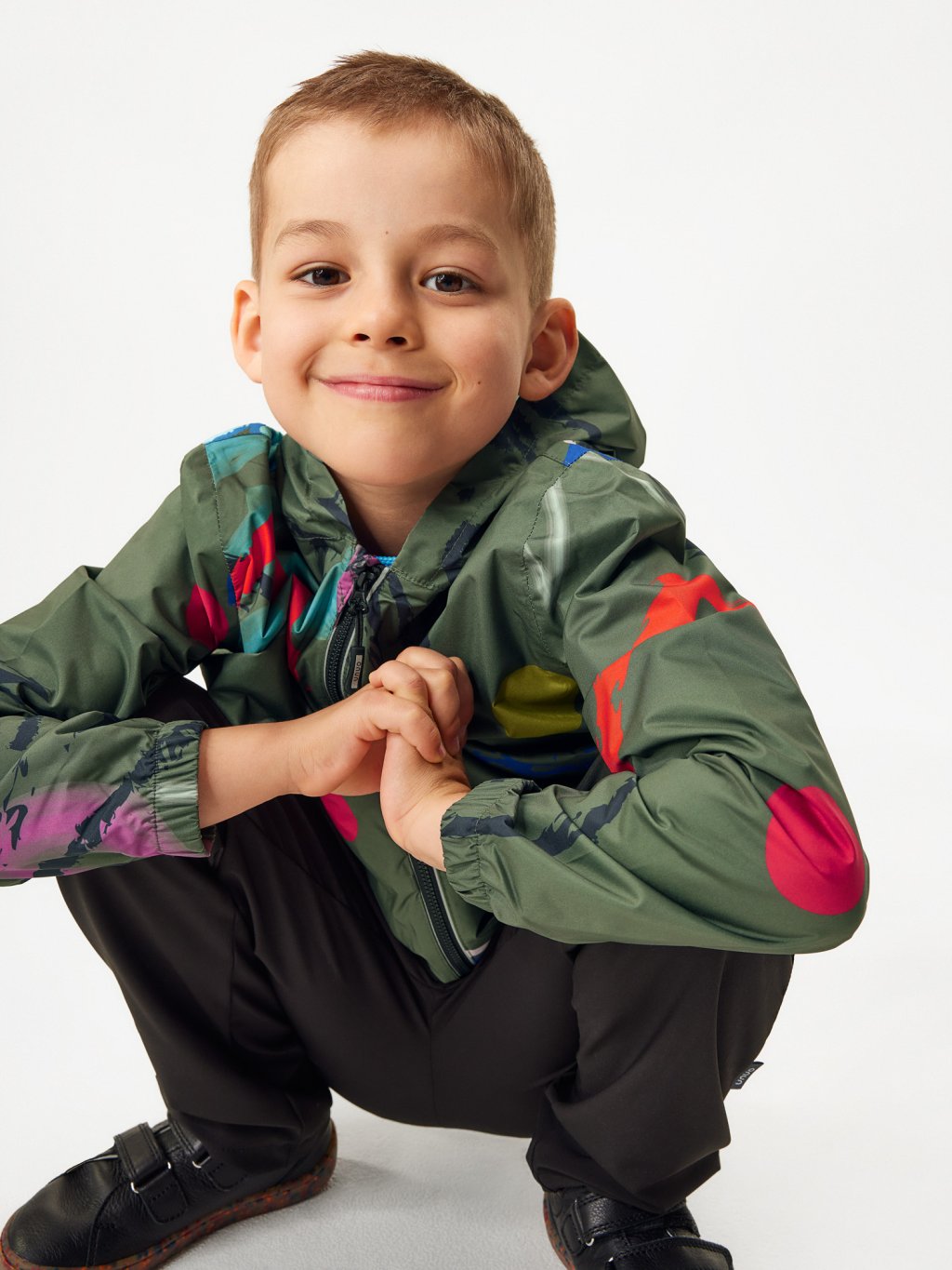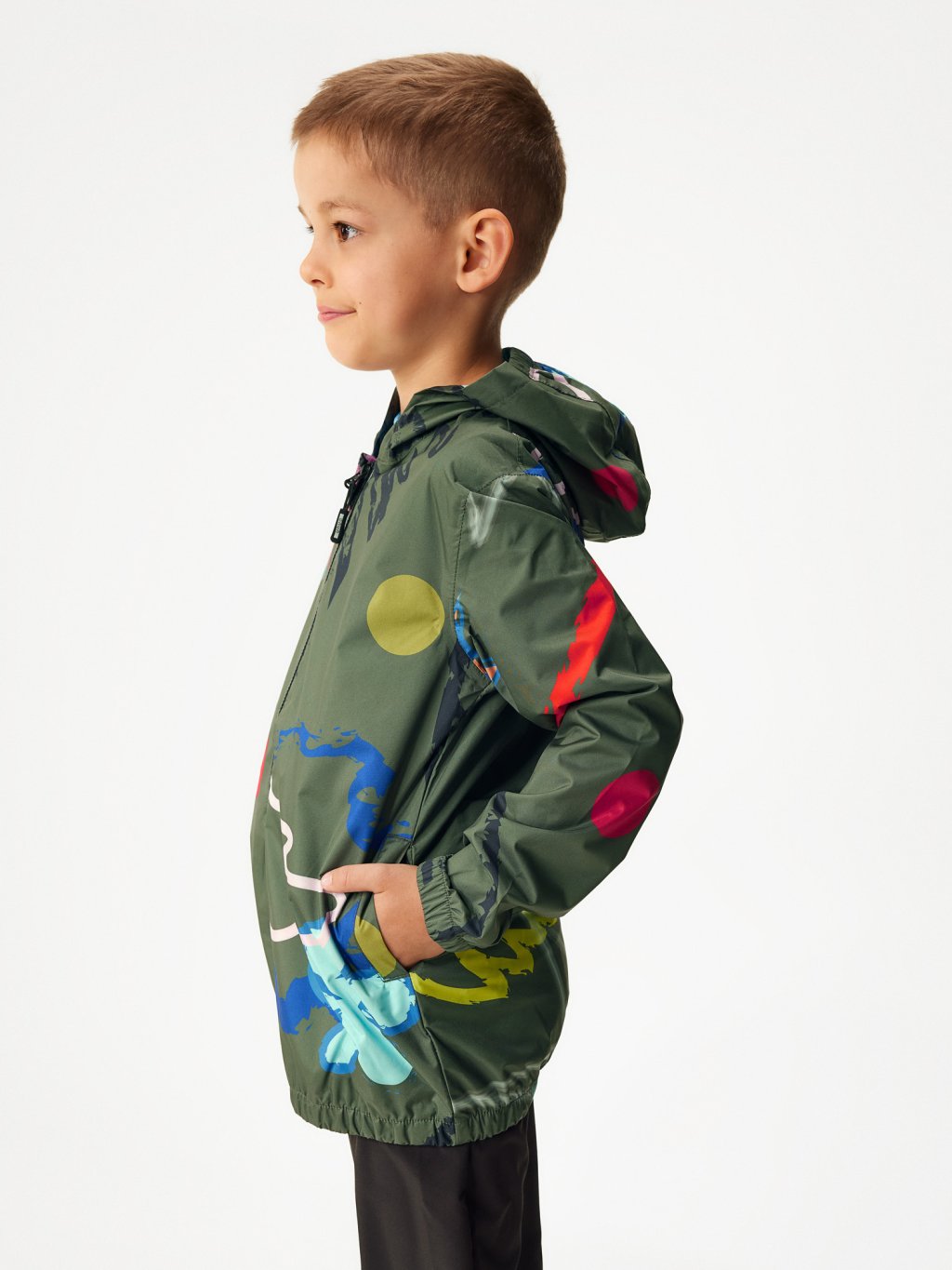 A stylish jacket that your kids will use for every occasion. Whether it's a hike, a walk in the woods or a trip to school, your child will be unmissable in our new jacket. Taped seams and elasticated waist, hood and sleeve cuffs ensure that even heavy rain gets nowhere. Practical reflective elements on the back and zipper increase safety during everyday outdoor activities. Thanks to its material, the jacket is very compact and can be quickly and easily packed into one of the pockets. The rain jacket can be purchased in universal colours as well as in popular, hand-painted patterns. The rain jacket is designed in the Czech Republic and sewn by a foreign factory.