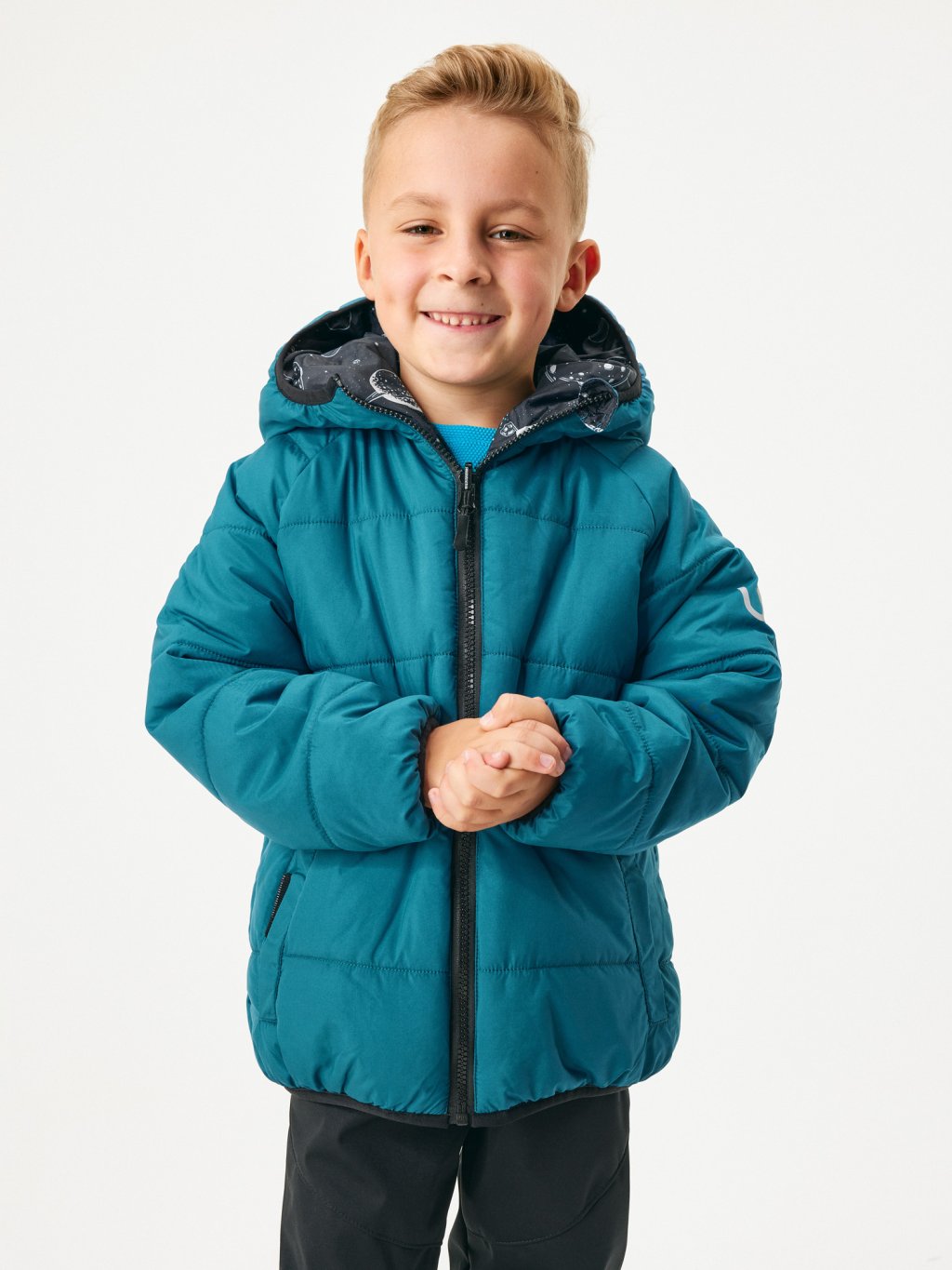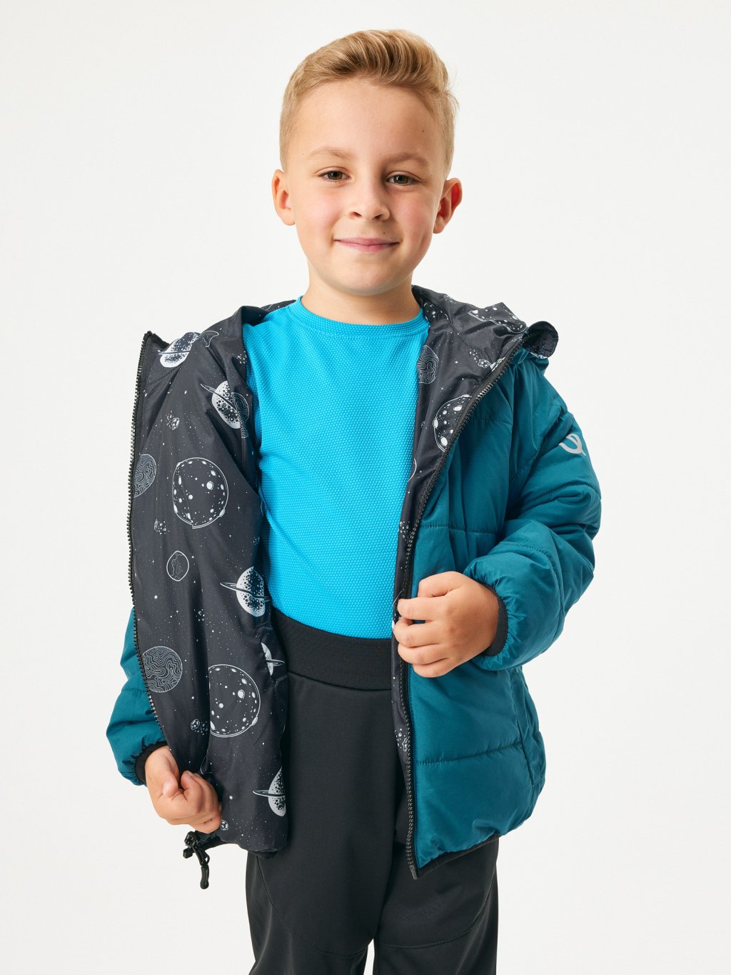 Practical and playful at the same time! Our reversible jacket offers two looks in one piece. Simple plain style or striking unuo pattern? Just flip it according to your mood. On both sides, Velcro pockets give kids space for all their essentials. Thanks to the elastic waistband, cuffs, and hood, the jacket fits perfectly and protects against wind and cold. Reflective details on the back, sleeve, and zipper pull increase visibility and safety during outdoor play or on the way to school or kindergarten. The jacket was designed in the Czech Republic and sewn in a foreign sewing workshop.
