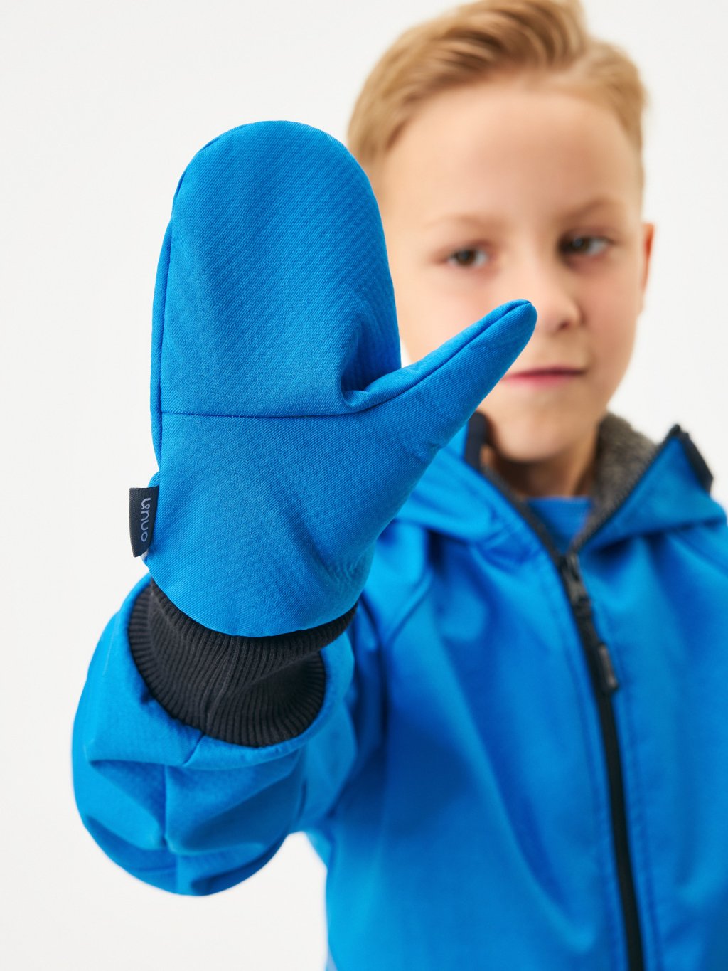 The “Light” softshell gloves with teddy lining for kids are the perfect choice for winter walks. They’re made from softshell fabric with a soft teddy layer on the inside instead of regular fleece. This makes them lighter, more comfortable, and more practical than traditional winter gloves. They fit perfectly thanks to a higher, stretchy cuff that hugs the wrist well. They’re easy to care for – just wipe them clean and they dry quickly. For real snowy fun like sledding or snowball fights, though, we recommend our Polar winter gloves.