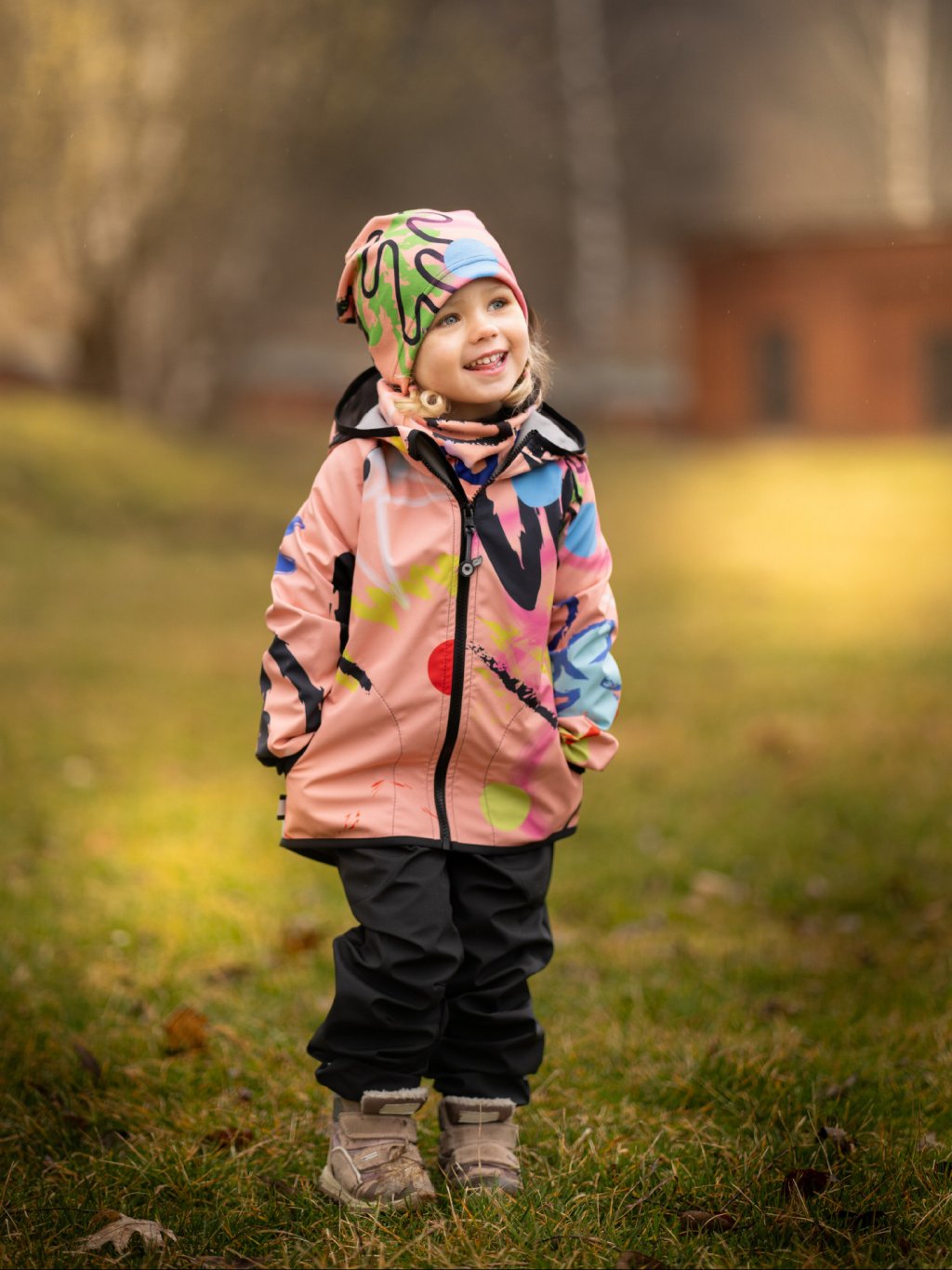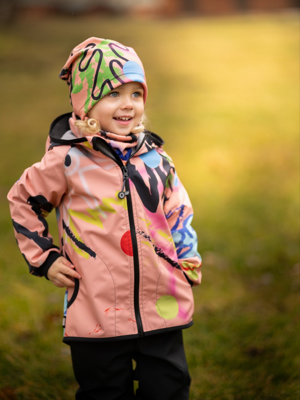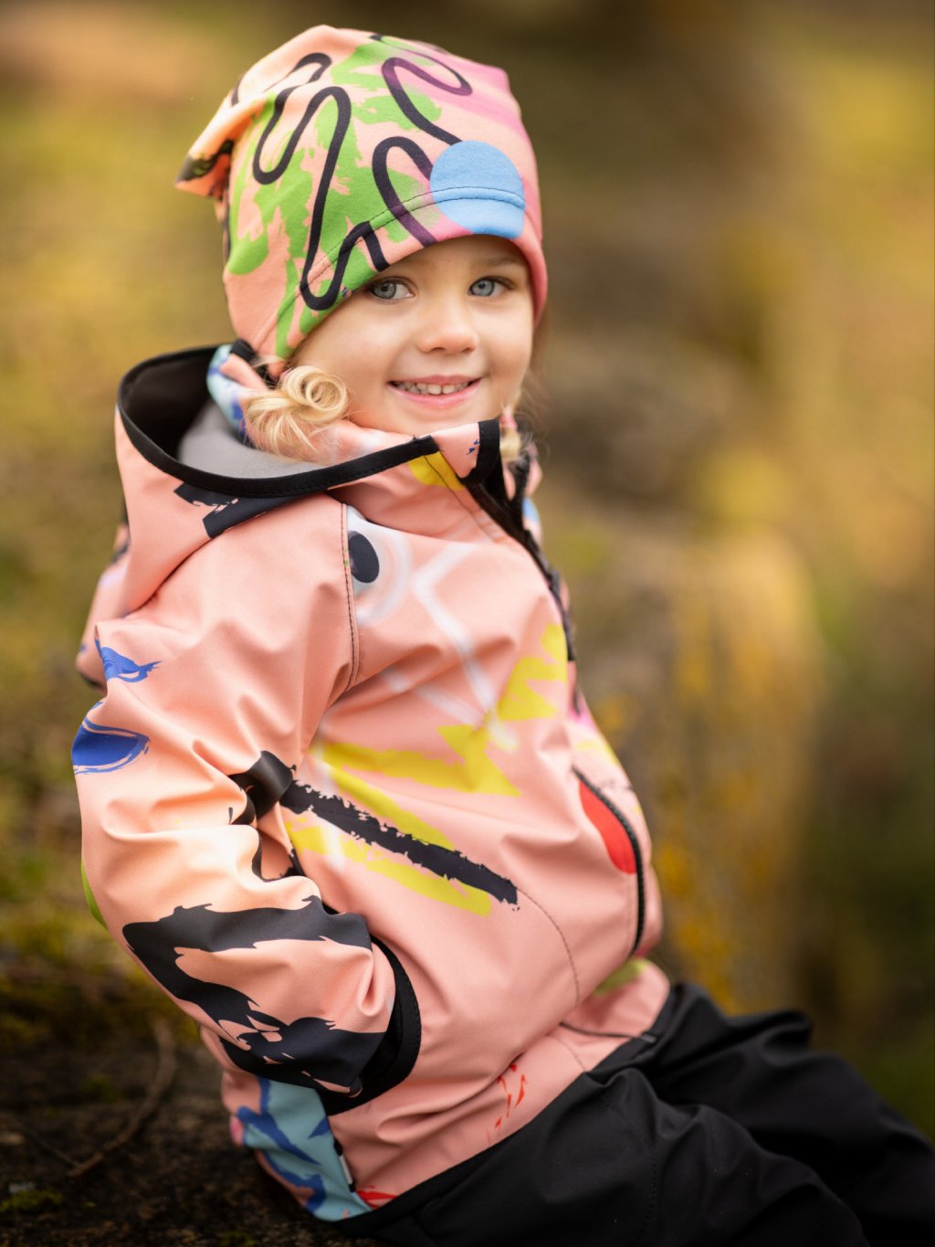 Material from the cosmos, maybe mums just dream. It's warm when it blows around, but when the sun shines, the special membrane makes sure that the kids don't sweat in it. Today, this material is mainly made from recycled PET bottles. Smaller children will use this material on their jacket all year round, but if you want to know when to use it, look at our guide. The material is not completely water-resistant, like a raincoat, but it can handle smaller rains easily. Small accidents can only be wiped with a cloth. Softshell is fitted with a special treatment with high resistance in the abrasion. Water resistance: