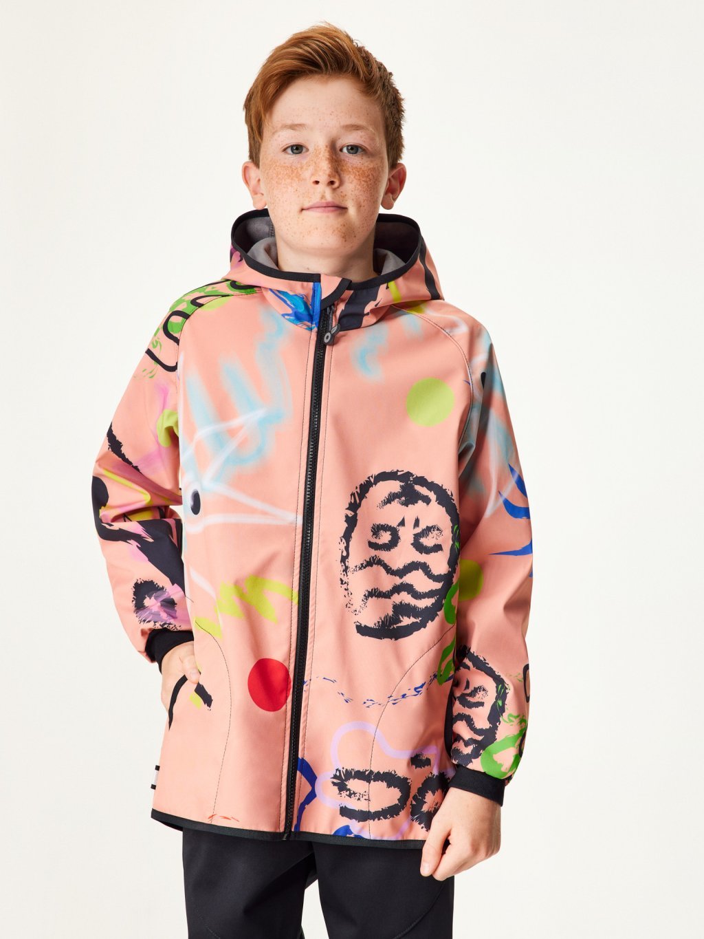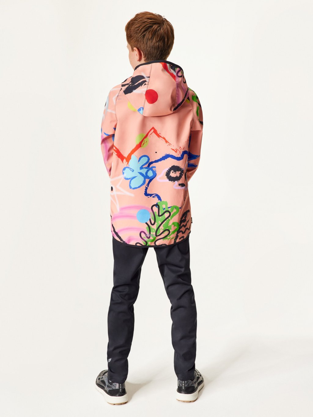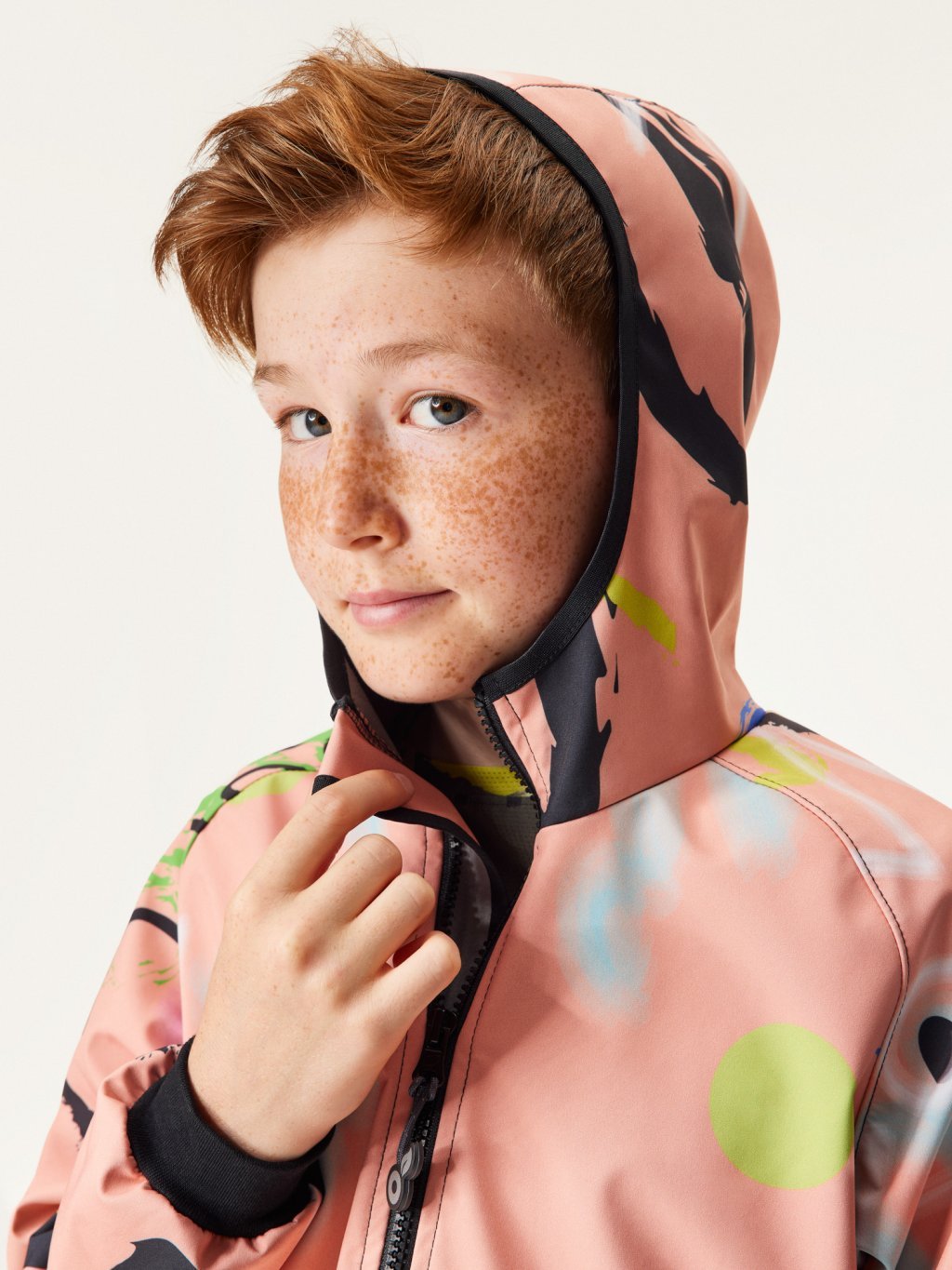 Material from the cosmos, maybe mums just dream. It's warm when it blows around, but when the sun shines, the special membrane makes sure that the kids don't sweat in it. Today, this material is mainly made from recycled PET bottles. Smaller children will use this material on their jacket all year round, but if you want to know when to use it, look at our guide. The material is not completely water-resistant, like a raincoat, but it can handle smaller rains easily. Small accidents can only be wiped with a cloth. Softshell is fitted with a special treatment with high resistance in the abrasion. Water resistance: