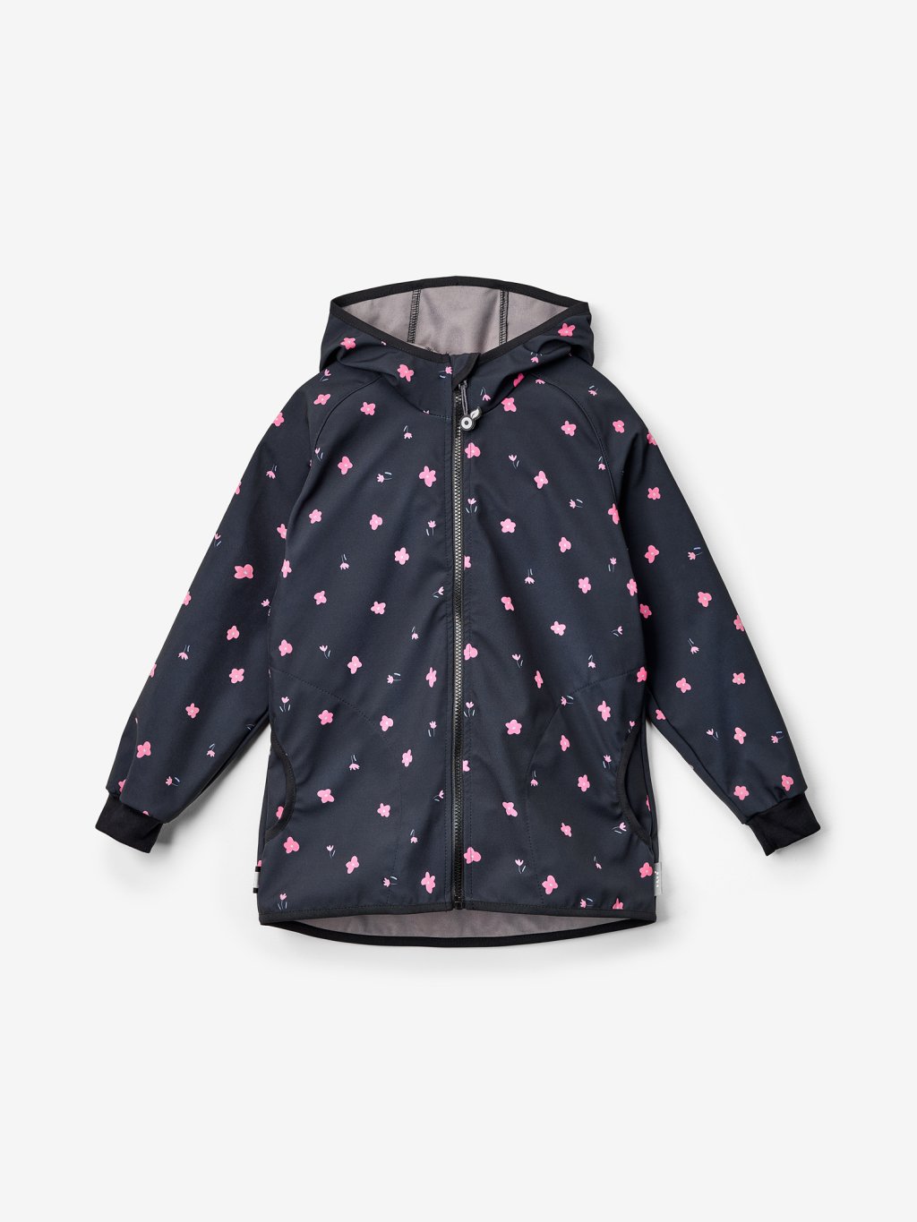 Children's softshell jacket with fleece Basic, Black, Flowers