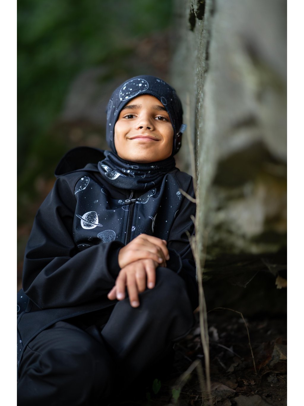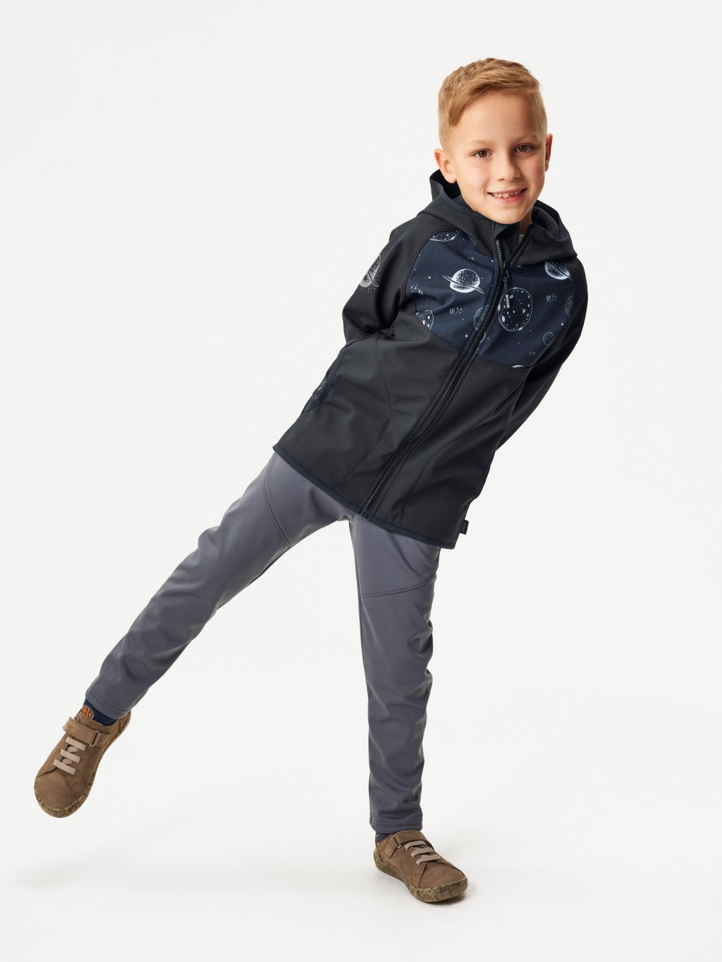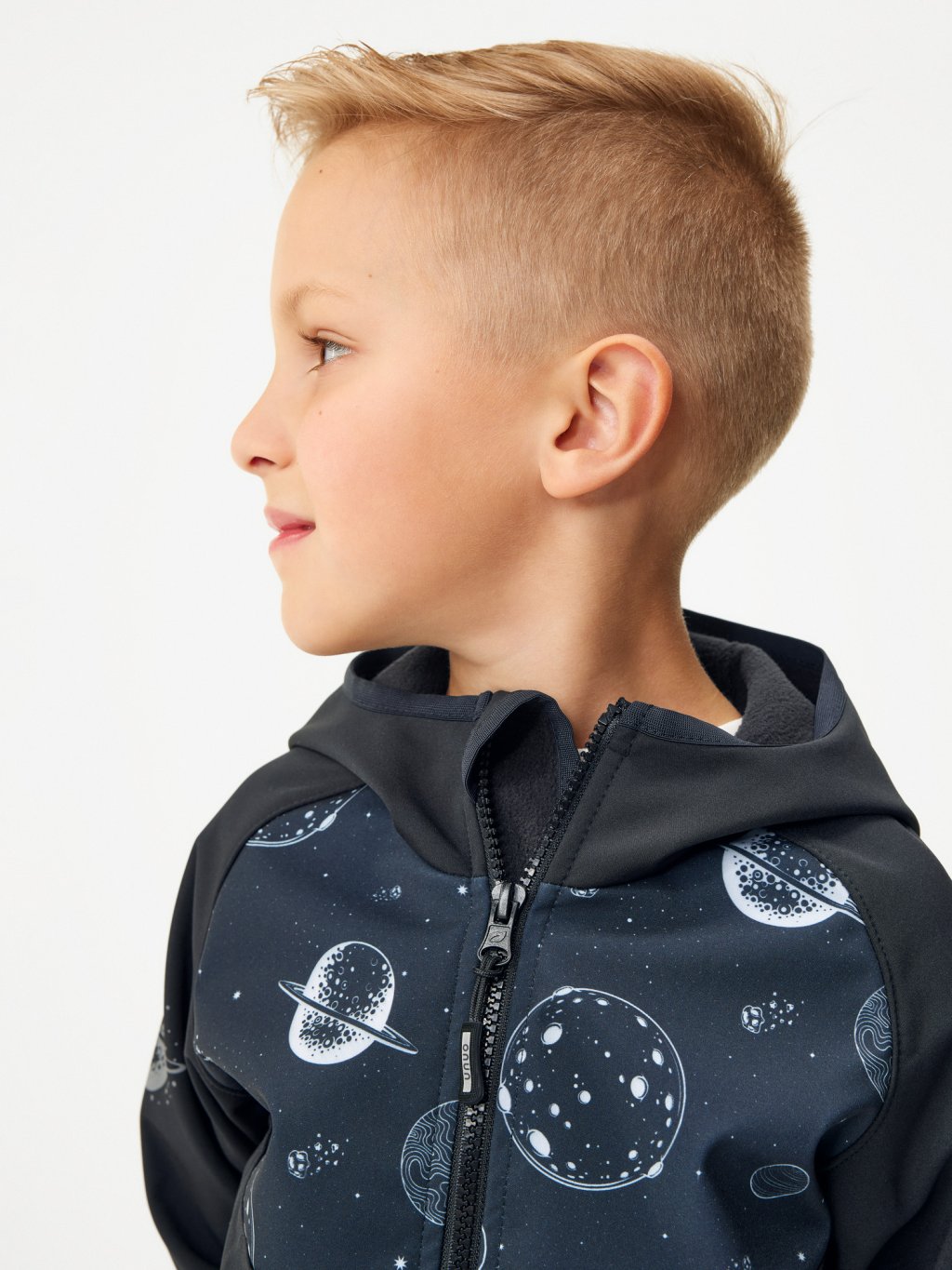 Material from the cosmos, maybe mums just dream. It's warm when it blows around, but when the sun shines, the special membrane makes sure that the kids don't sweat in it. Today, this material is mainly made from recycled PET bottles. Smaller children will use this material on their jacket all year round, but if you want to know when to use it, look at our guide. The material is not completely water-resistant, like a raincoat, but it can handle smaller rains easily. Small accidents can only be wiped with a cloth. Softshell is fitted with a special treatment with high resistance in the abrasion. Water resistance: