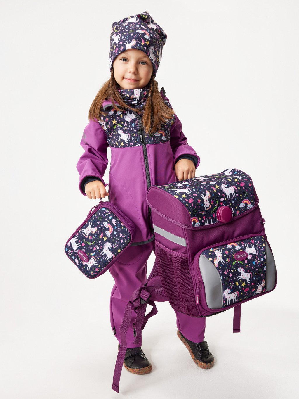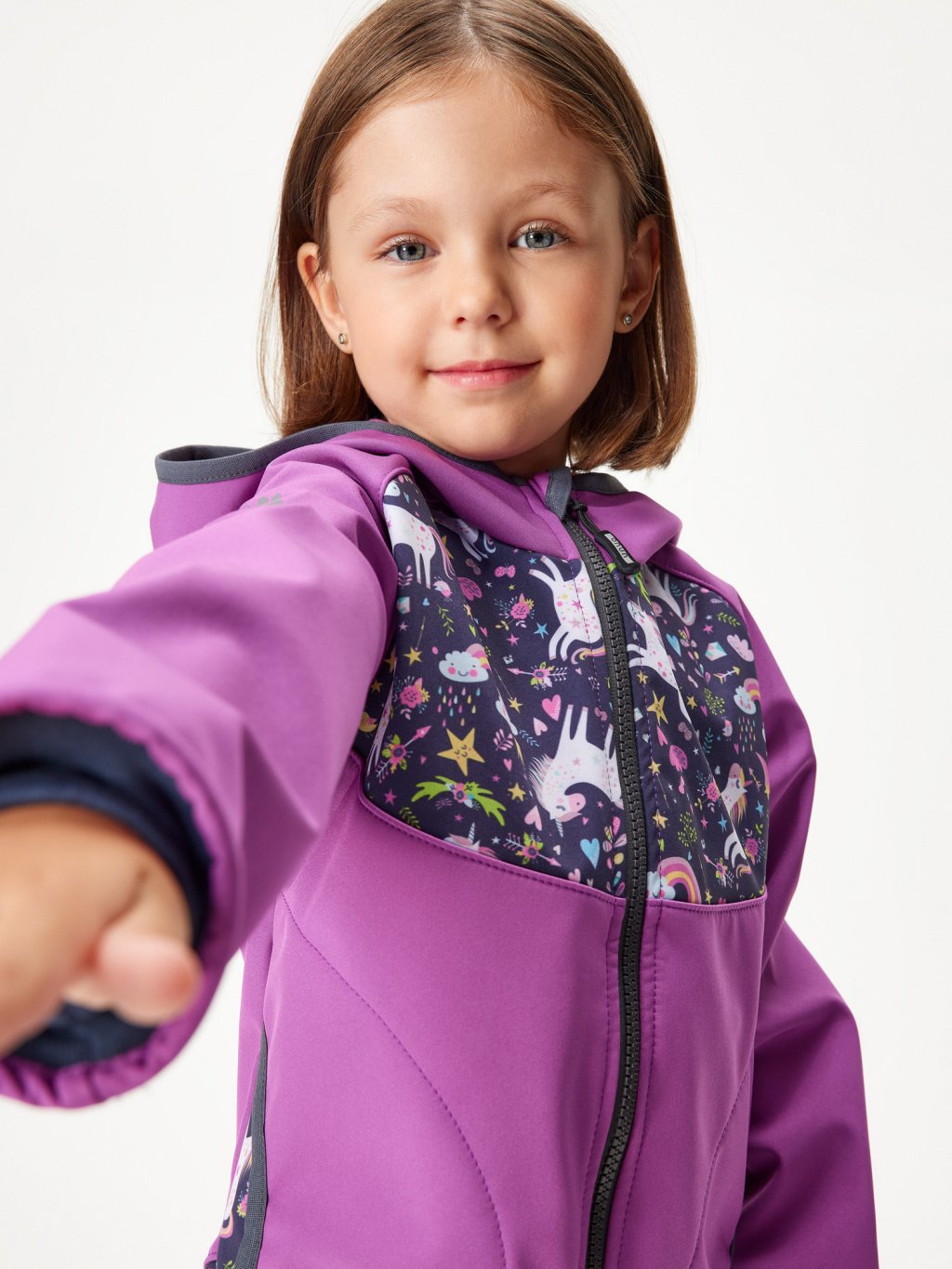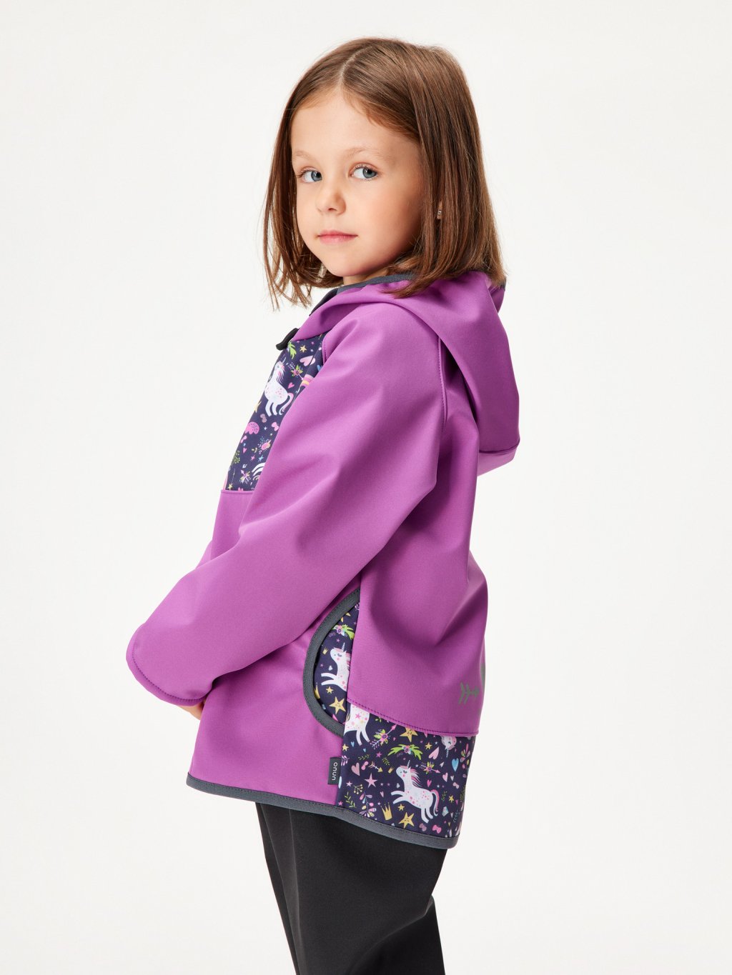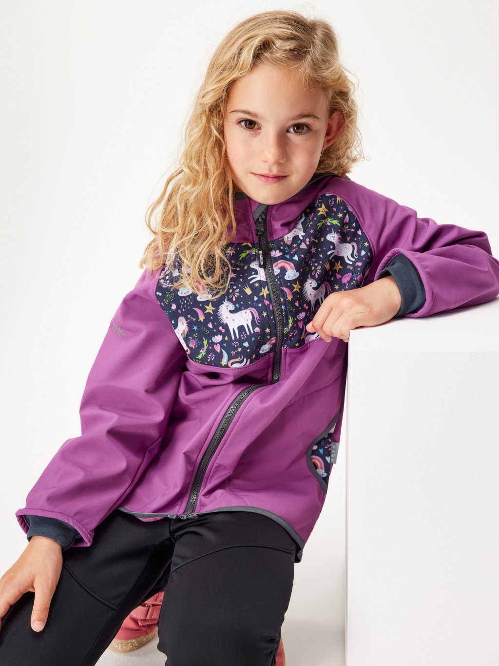 Children's softshell jacket with fleece Basic, Blackberry, Unicorns