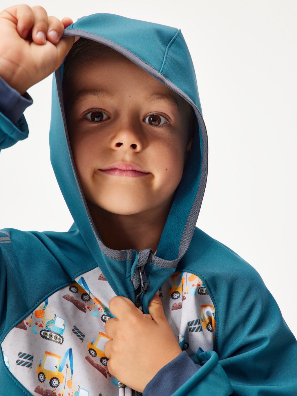 Material from the cosmos, maybe mums just dream. It's warm when it blows around, but when the sun shines, the special membrane makes sure that the kids don't sweat in it. Today, this material is mainly made from recycled PET bottles. Smaller children will use this material on their jacket all year round, but if you want to know when to use it, look at our guide. The material is not completely water-resistant, like a raincoat, but it can handle smaller rains easily. Small accidents can only be wiped with a cloth. Softshell is fitted with a special treatment with high resistance in the abrasion. Water resistance: