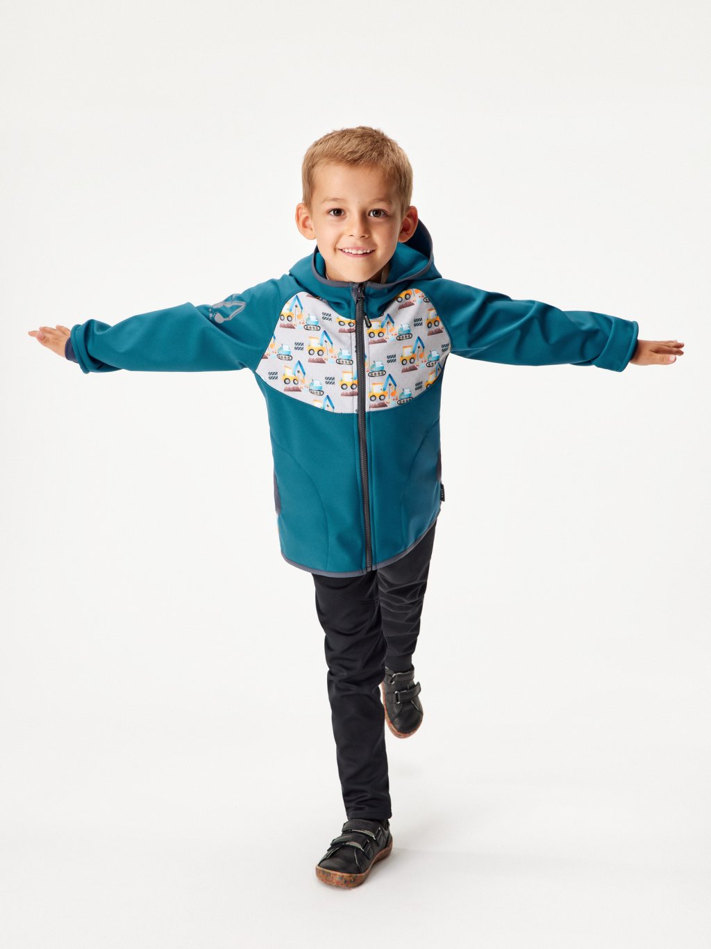 The elastic cuffs at the sleeve ends guard against wind and ensure the jacket grows with the child, quite literally For all children whose adventurous passion never sleeps, we present a softshell jacket with an extended cut! In this jacket, your child can fully focus on exploring nature without wasting time pulling the jacket down. Safety first, that's why you will find several reflective elements on our pieces. Who says outdoor style has to be boring? With this design of sparkling colors and modern cuts, your little explorers and you will look like stars on the field of adventure!