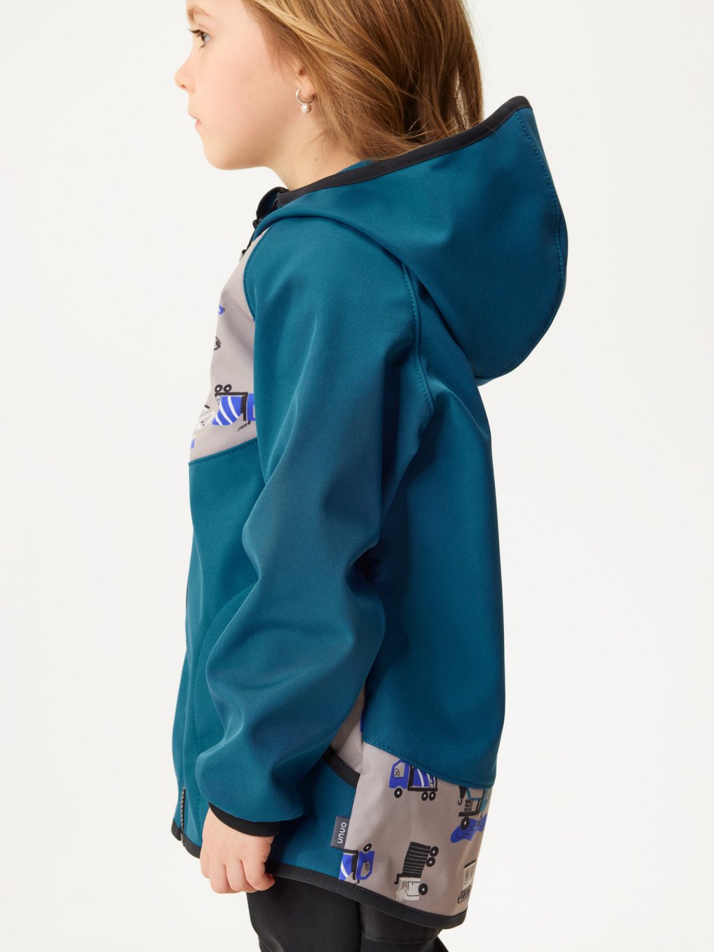 Material from the cosmos, maybe mums just dream. It's warm when it blows around, but when the sun shines, the special membrane makes sure that the kids don't sweat in it. Today, this material is mainly made from recycled PET bottles. Smaller children will use this material on their jacket all year round, but if you want to know when to use it, look at our guide. The material is not completely water-resistant, like a raincoat, but it can handle smaller rains easily. Small accidents can only be wiped with a cloth. Softshell is fitted with a special treatment with high resistance in the abrasion. Water resistance: