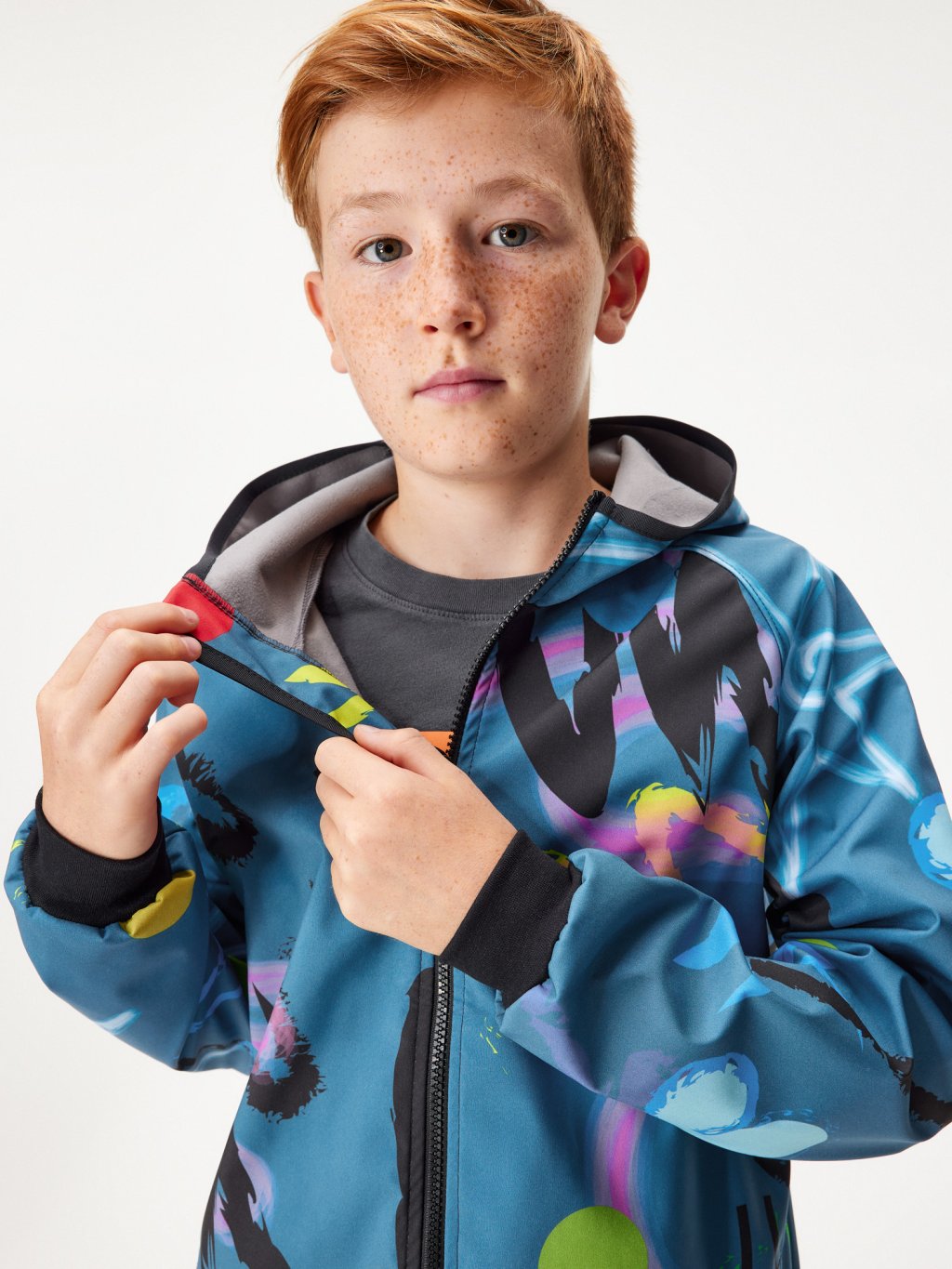 The elastic cuffs at the sleeve ends guard against wind and ensure the jacket grows with the child, quite literally For all children whose adventurous passion never sleeps, we present a softshell jacket with an extended cut! In this jacket, your child can fully focus on exploring nature without wasting time pulling the jacket down. Safety first, that's why you will find several reflective elements on our pieces. Who says outdoor style has to be boring? With this design of sparkling colors and modern cuts, your little explorers and you will look like stars on the field of adventure!
