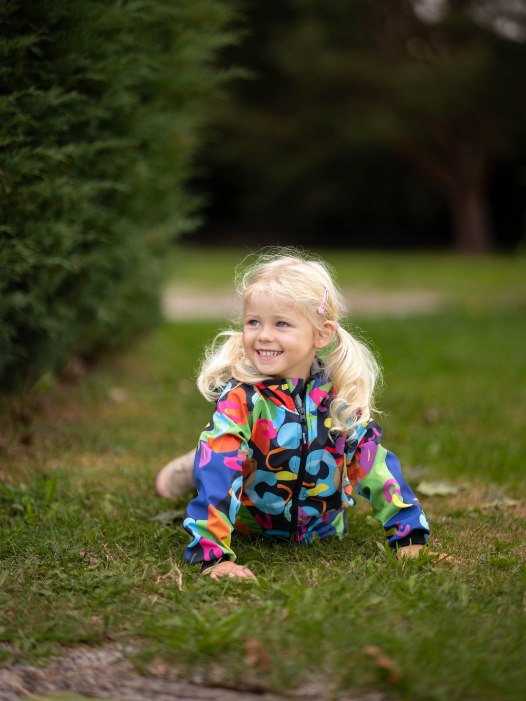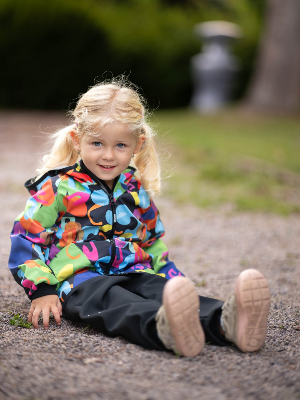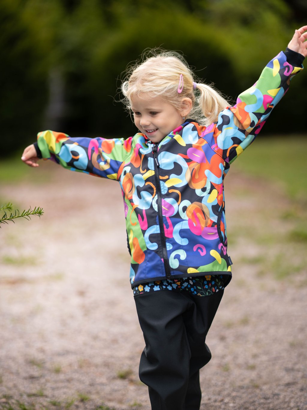 Material from the cosmos, maybe mums just dream. It's warm when it blows around, but when the sun shines, the special membrane makes sure that the kids don't sweat in it. Today, this material is mainly made from recycled PET bottles. Smaller children will use this material on their jacket all year round, but if you want to know when to use it, look at our guide. The material is not completely water-resistant, like a raincoat, but it can handle smaller rains easily. Small accidents can only be wiped with a cloth. Softshell is fitted with a special treatment with high resistance in the abrasion. Water resistance:
