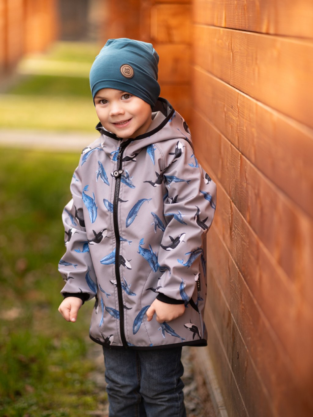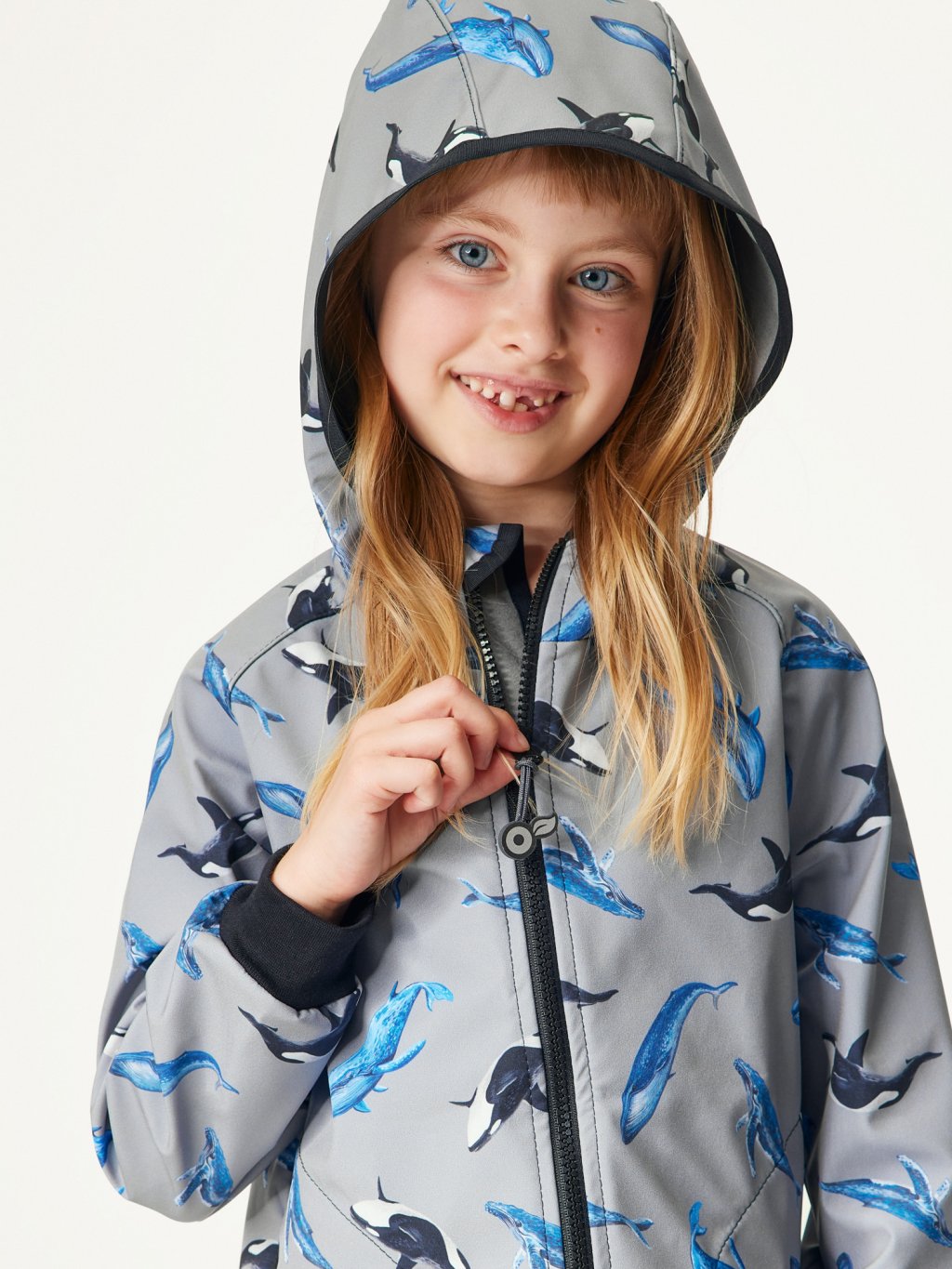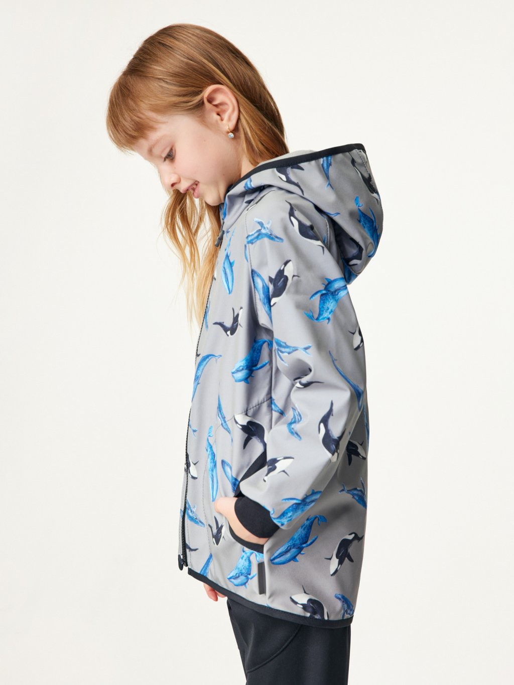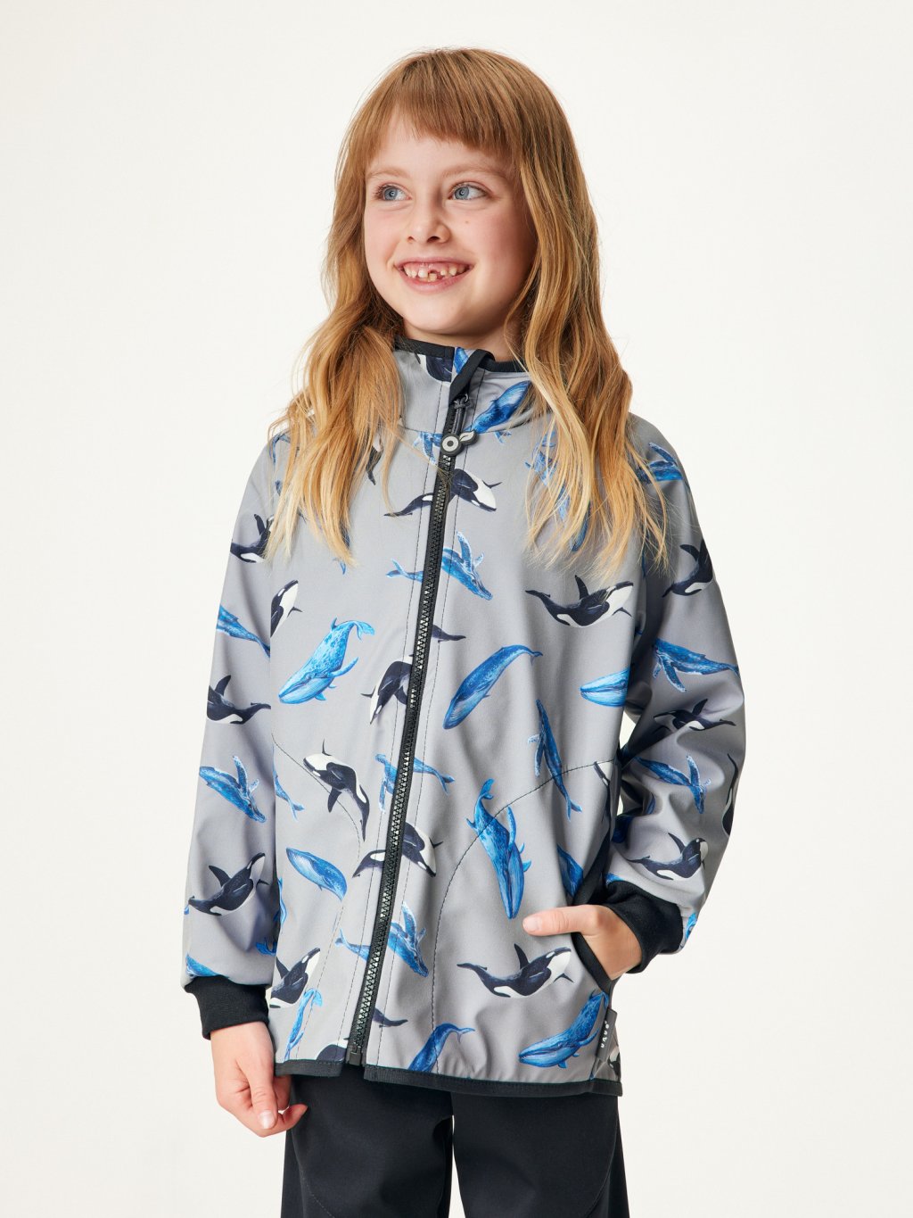 Children's softshell jacket with fleece Basic, Grey, Whales