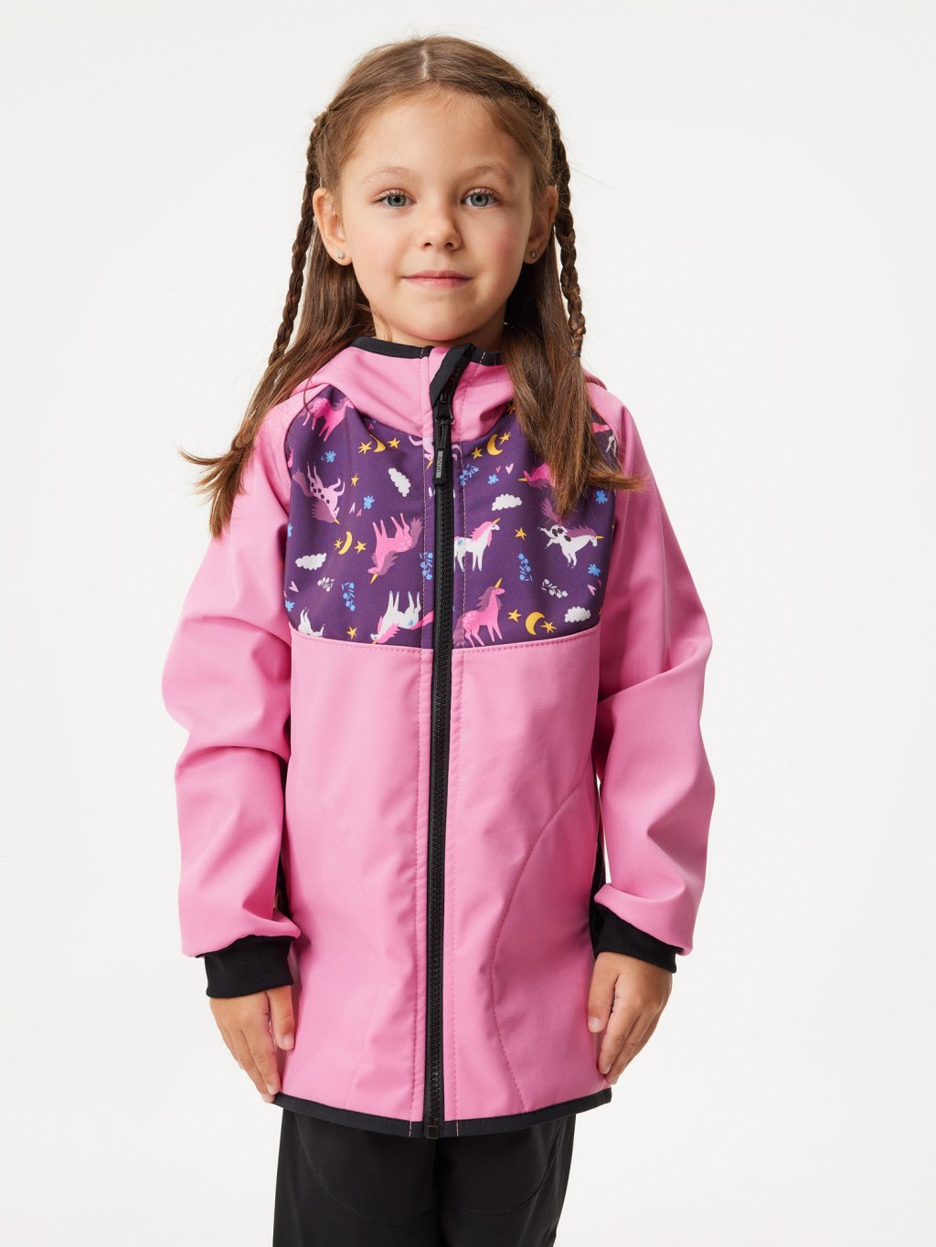 Children's softshell jacket with fleece Basic, Pink, Unicorns