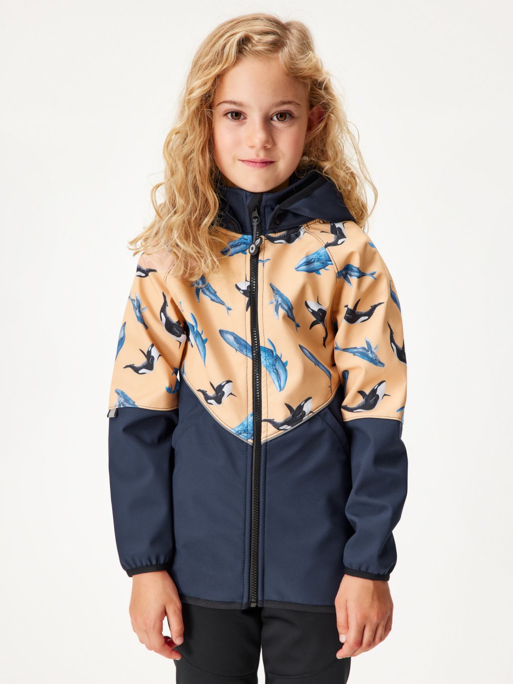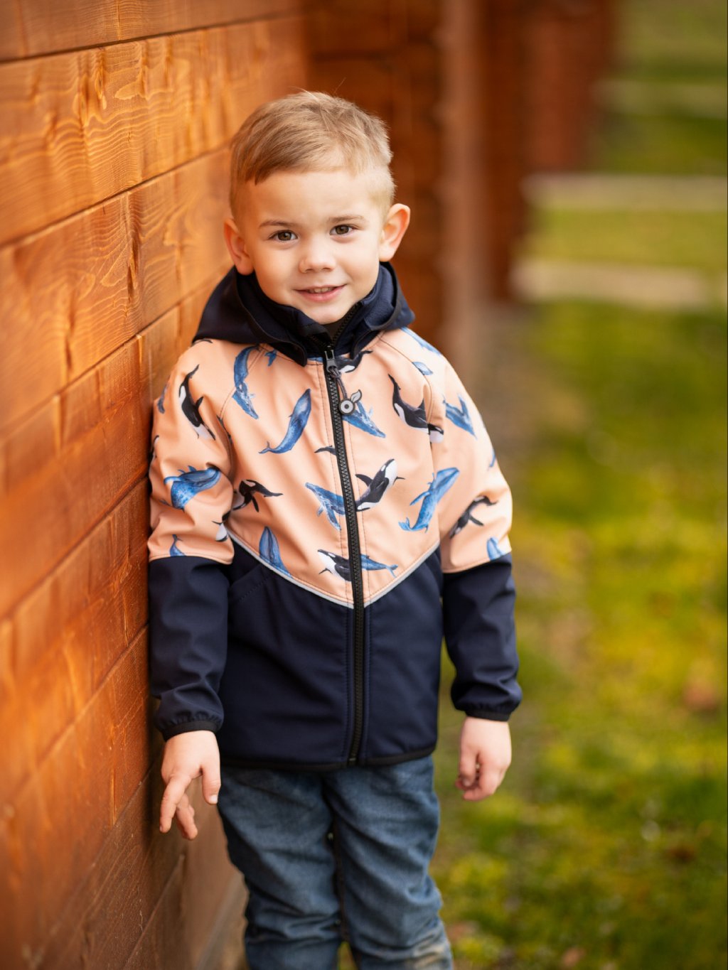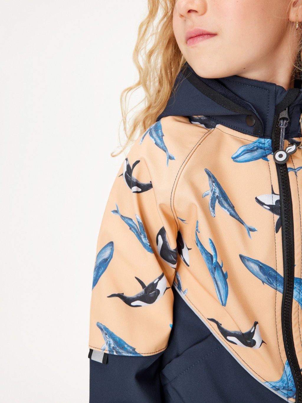 Children's softshell jacket with fleece Slim, Dark Blue-black, Apricot, Whales
