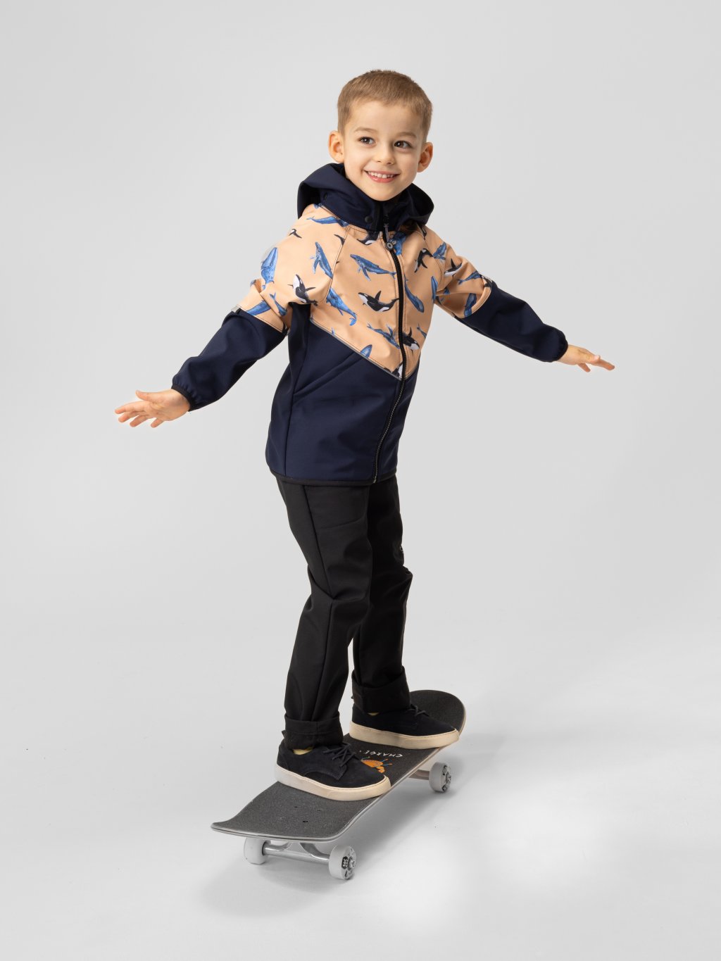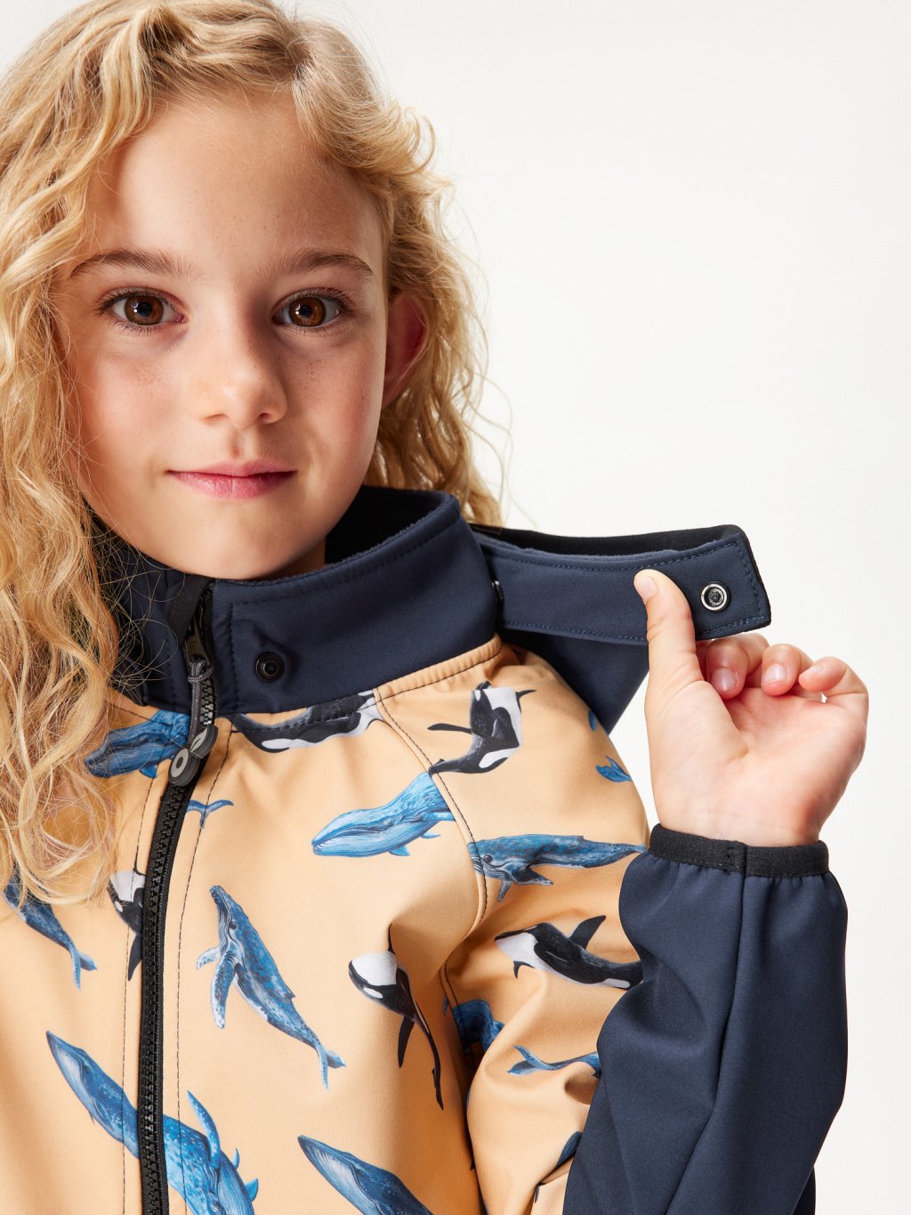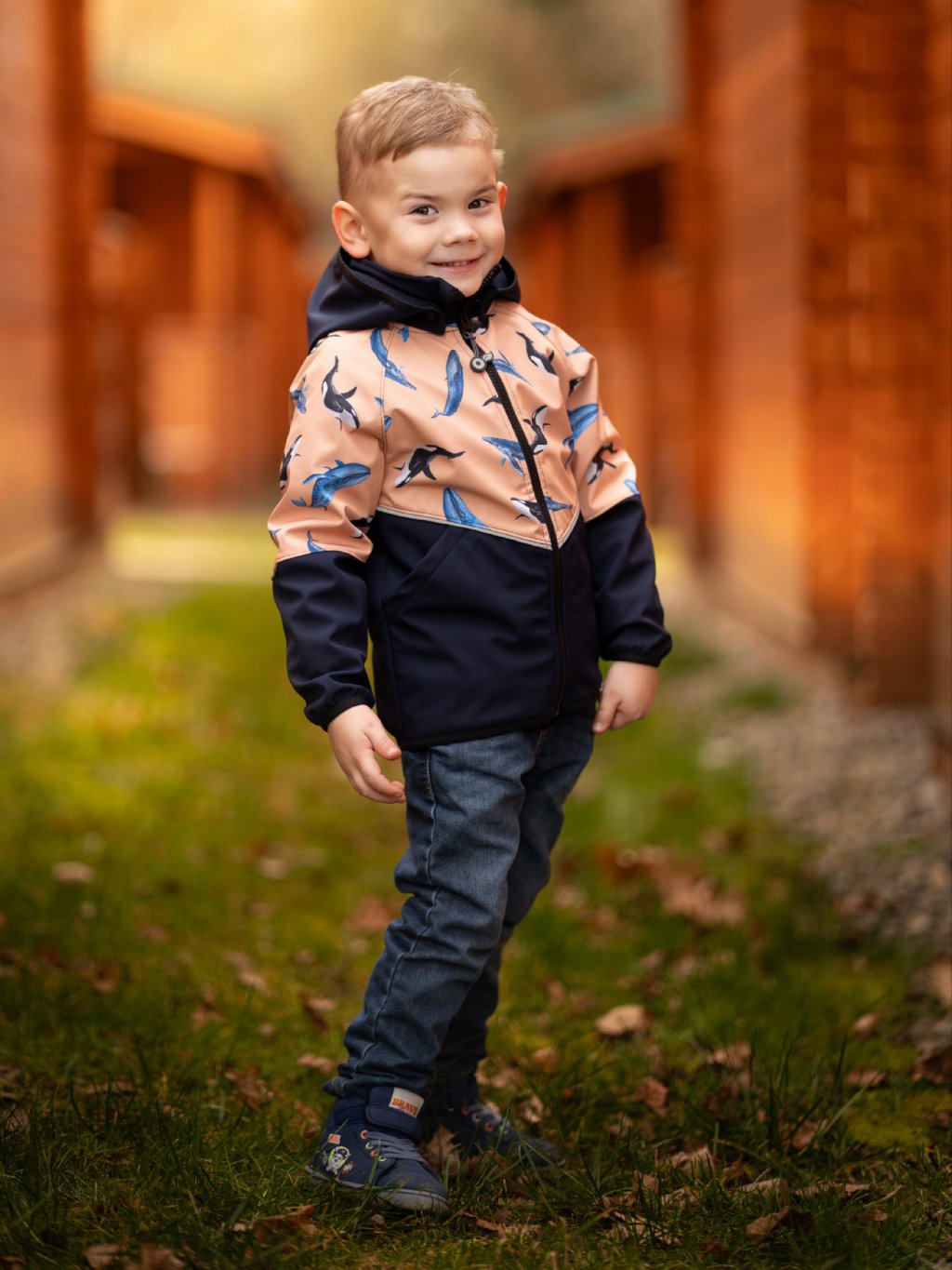 Children's softshell jacket with fleece Slim, Dark Blue-black, Apricot, Whales