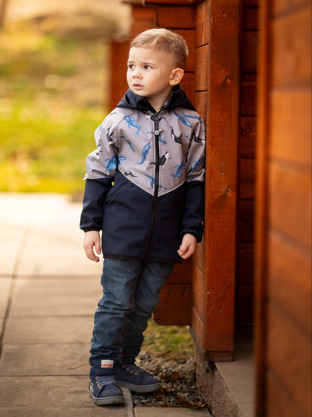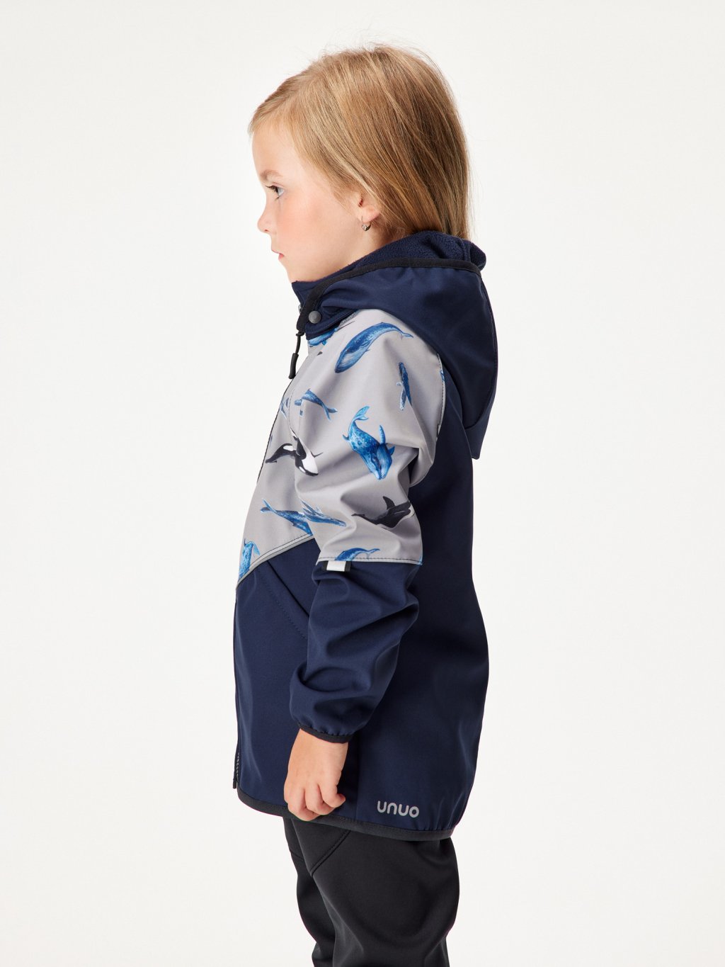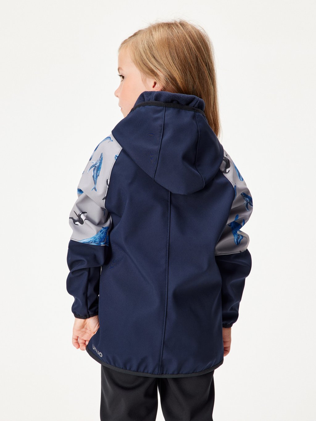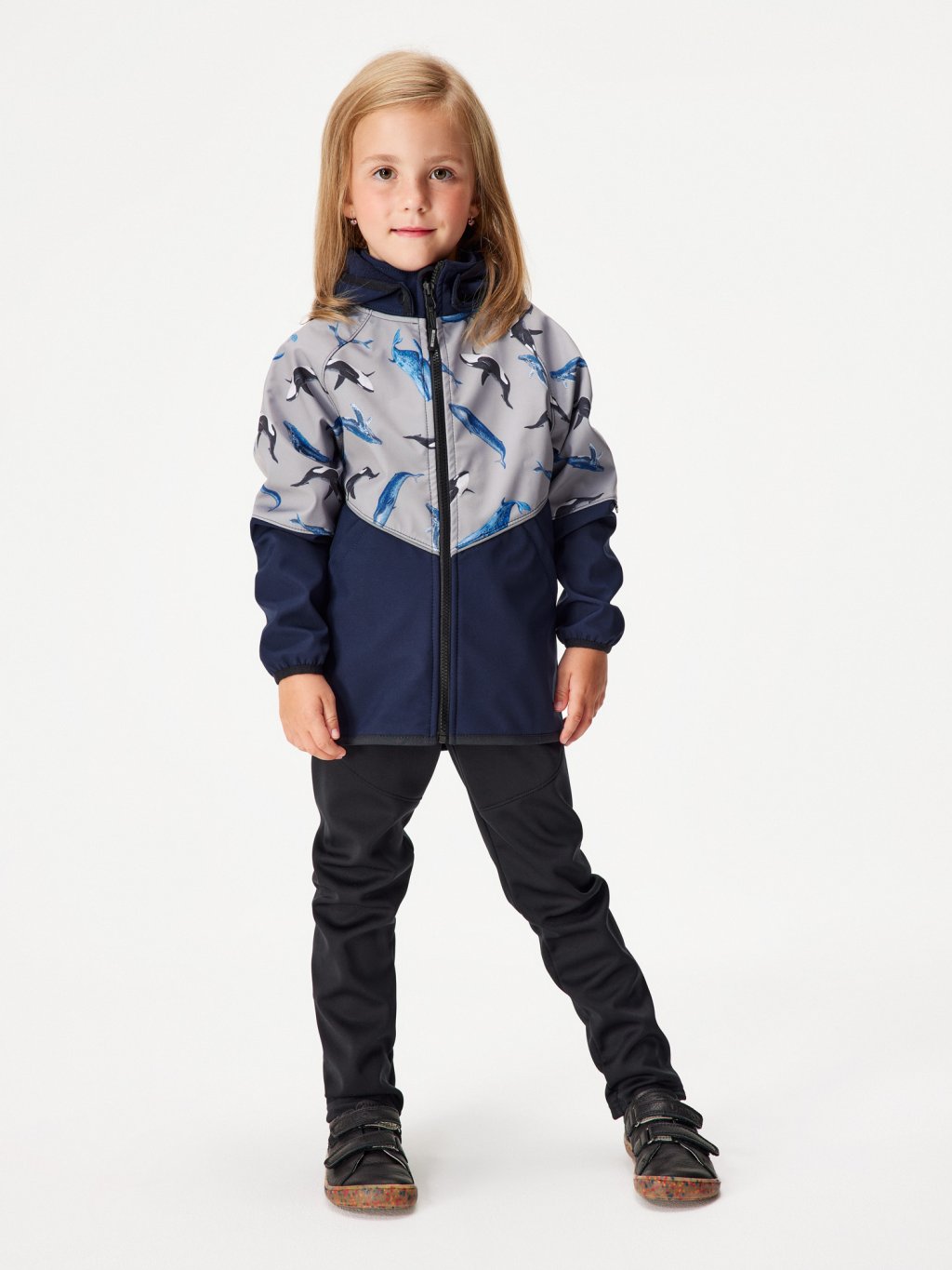 Children's softshell jacket with fleece Slim, Dark Blue-black, Grey, Whales
