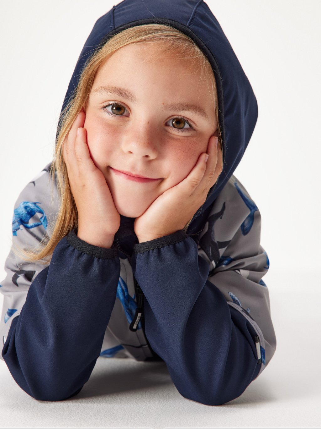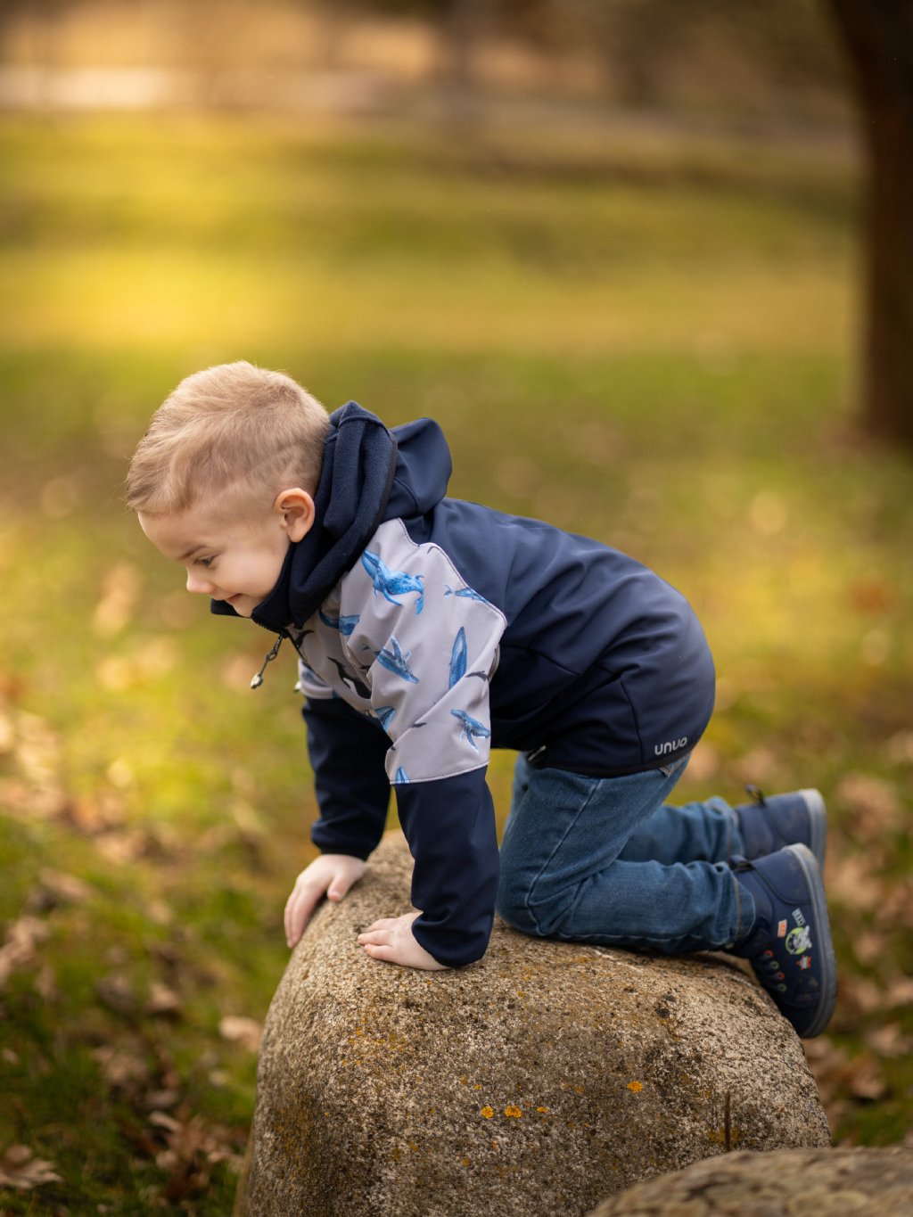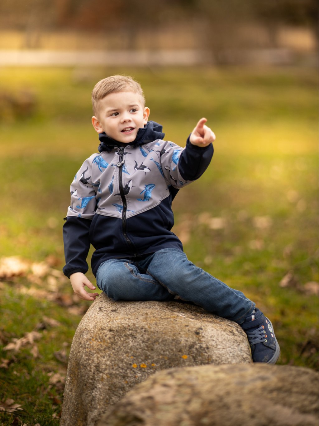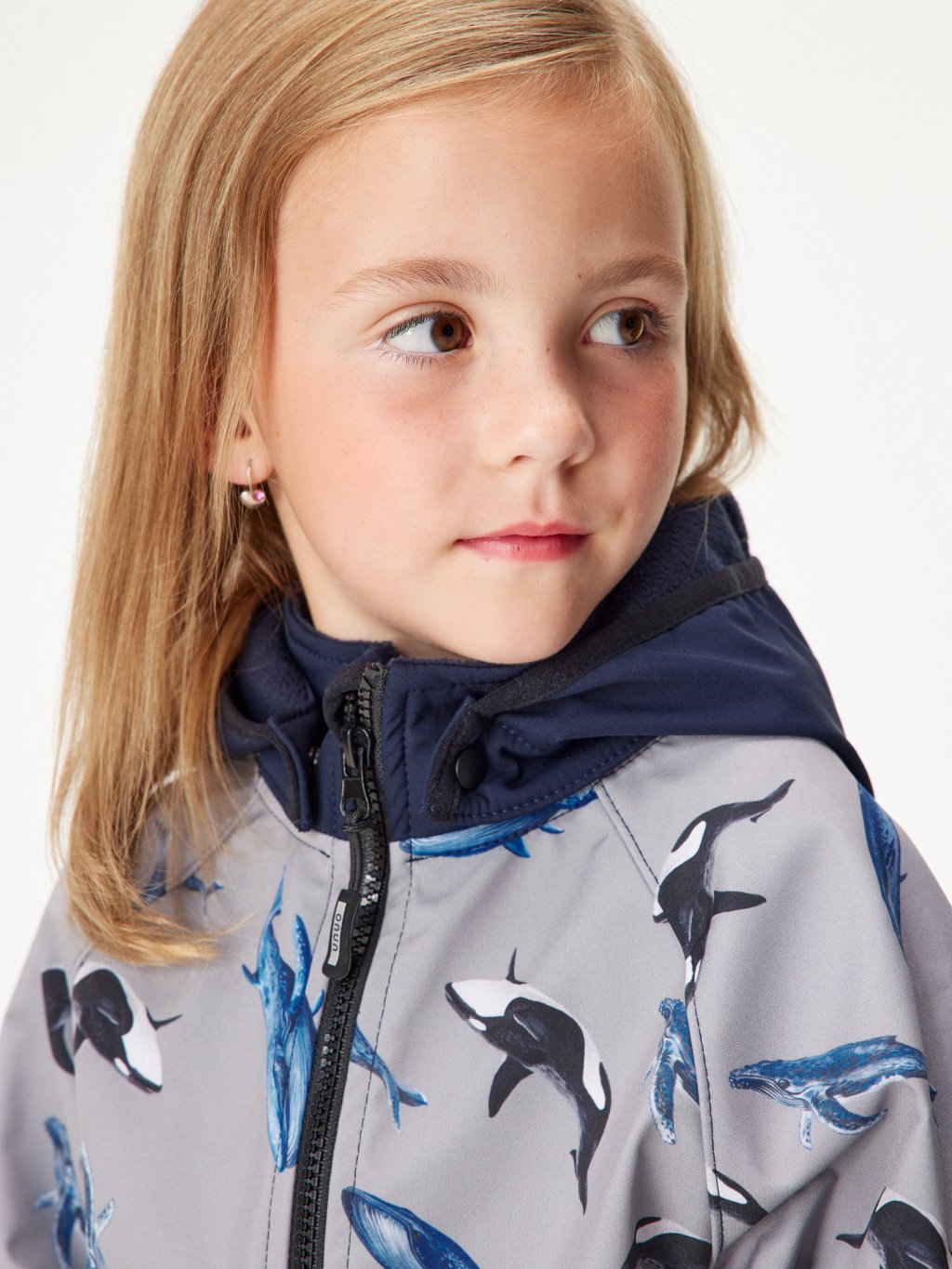 Children's softshell jacket with fleece Slim, Dark Blue-black, Grey, Whales