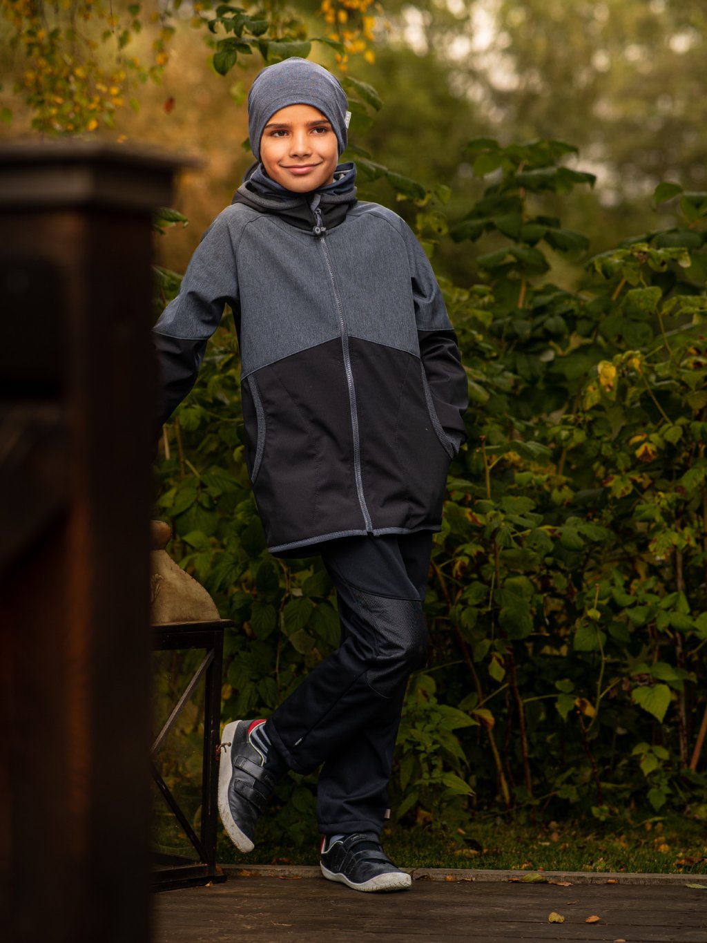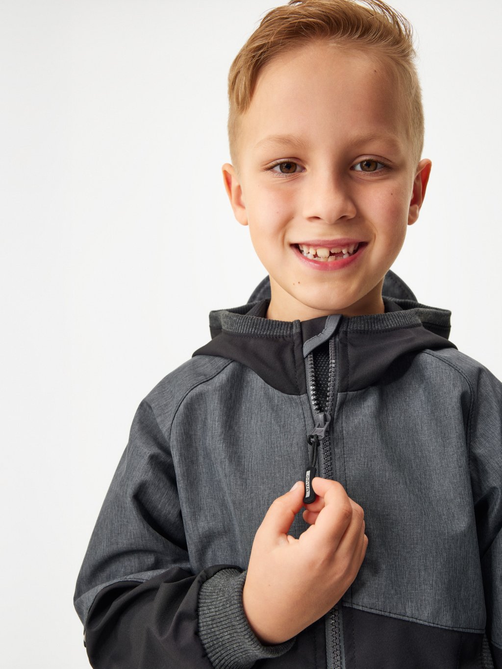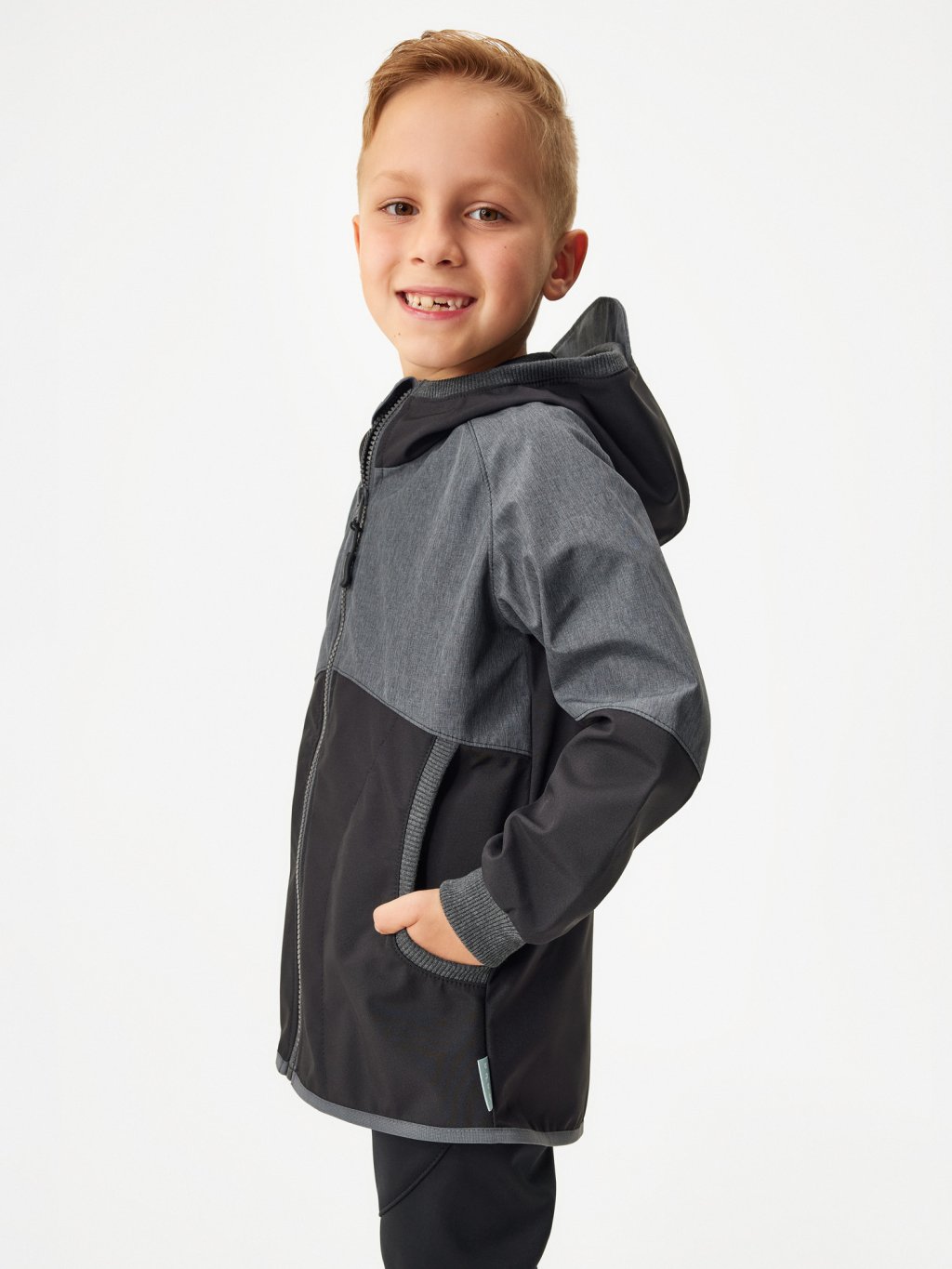 Children's softshell jacket with fleece Street, Black, Brindle Grey