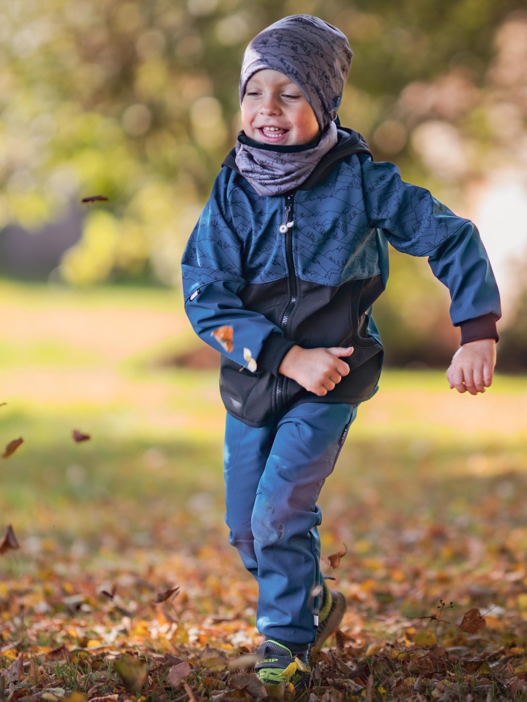 Material from the cosmos, maybe mums just dream. It's warm when it blows around, but when the sun shines, the special membrane makes sure that the kids don't sweat in it. Today, this material is mainly made from recycled PET bottles. Smaller children will use this material on their jacket all year round, but if you want to know when to use it, look at our guide. The material is not completely water-resistant, like a raincoat, but it can handle smaller rains easily. Small accidents can only be wiped with a cloth. Softshell is fitted with a special treatment with high resistance in the abrasion. Water resistance: