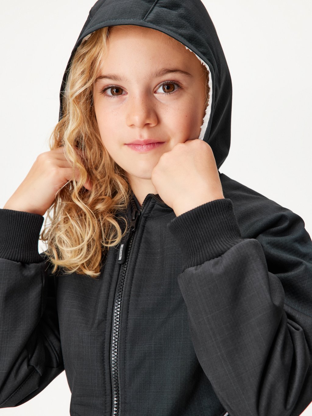 A softshell jacket that has a fleece instead of a fleece on the inside to keep your kids warm even in colder weather. It's suitable for school, winter walks and other adventures. Patches in the sleeves protect against the fuzz and ensure the jacket will literally grow with your child. The jacket has a longer cut so baby can fully focus on exploring the outdoors and not waste time pulling the jacket down. Safety is a priority for us, so in addition to the standard safety features, we've equipped the jacket with new reflective strips that increase visibility, whether during early evening walks or morning activities.