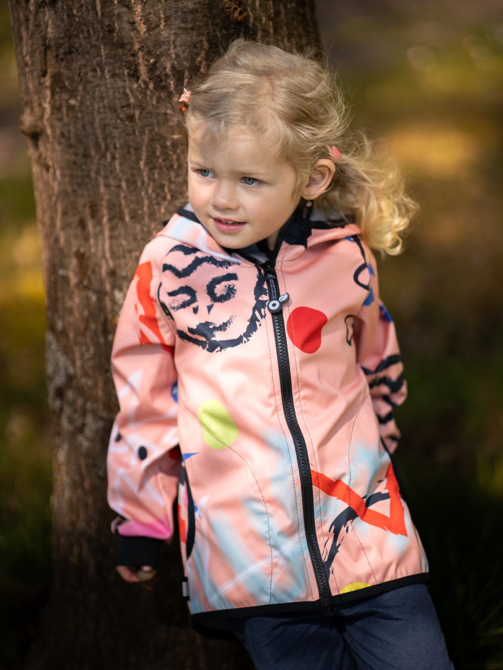 Material from the cosmos, maybe mums just dream. It's warm when it blows around, but when the sun shines, the special membrane makes sure that the kids don't sweat in it. Today, this material is mainly made from recycled PET bottles. This softshell is extremely flexible and pliable. Older children will use this material on their jacket all year round, but if you want to know when to use it, look at our guide. The material is not completely water-resistant, like a raincoat, but it can handle smaller rains easily. Water resistance:
