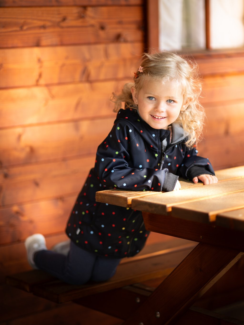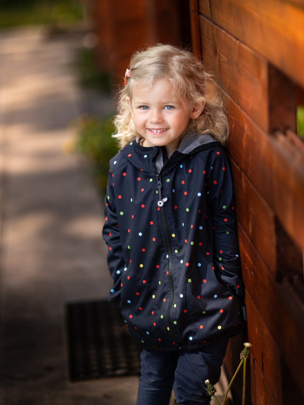 Material from the cosmos, maybe mums just dream. It's warm when it blows around, but when the sun shines, the special membrane makes sure that the kids don't sweat in it. Today, this material is mainly made from recycled PET bottles. This softshell is extremely flexible and pliable. Older children will use this material on their jacket all year round, but if you want to know when to use it, look at our guide. The material is not completely water-resistant, like a raincoat, but it can handle smaller rains easily. Water resistance: