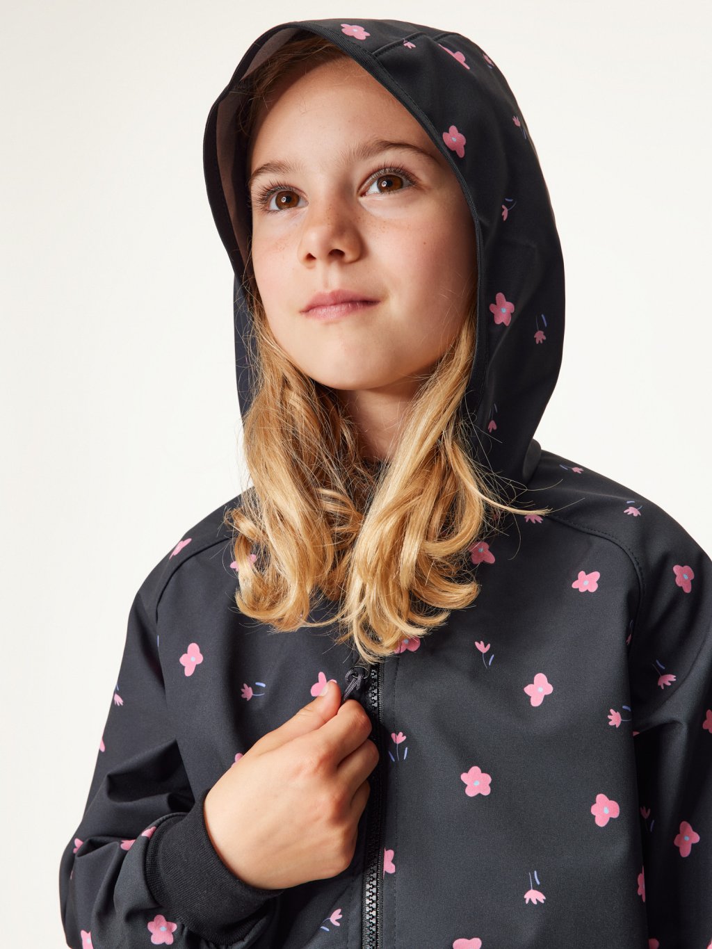 Children's softshell jacket without insulation elastic Basic, Black, Flowers