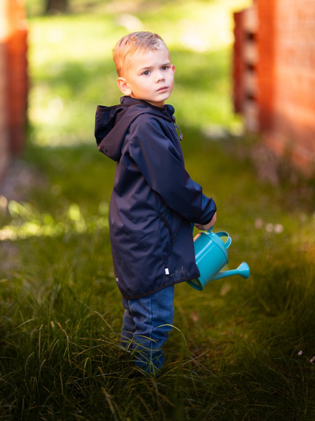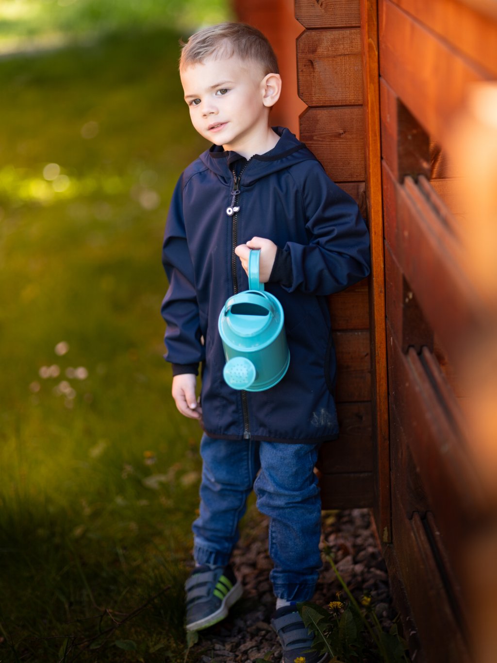 Material from the cosmos, maybe mums just dream. It's warm when it blows around, but when the sun shines, the special membrane makes sure that the kids don't sweat in it. Today, this material is mainly made from recycled PET bottles. This softshell is extremely flexible and pliable. Older children will use this material on their jacket all year round, but if you want to know when to use it, look at our guide. The material is not completely water-resistant, like a raincoat, but it can handle smaller rains easily. Water resistance: