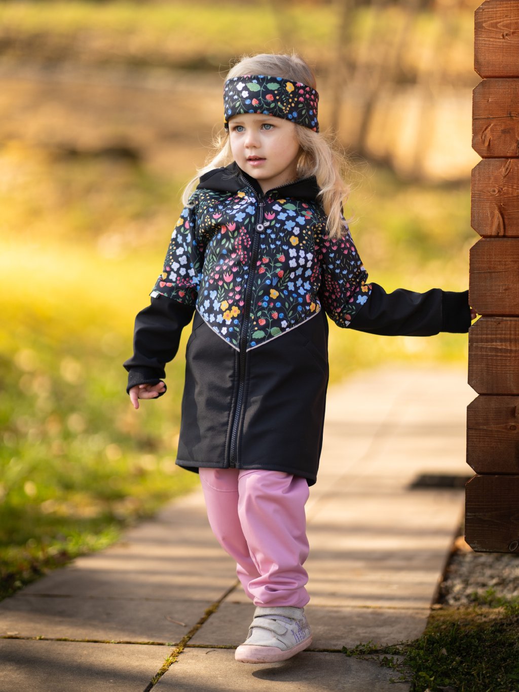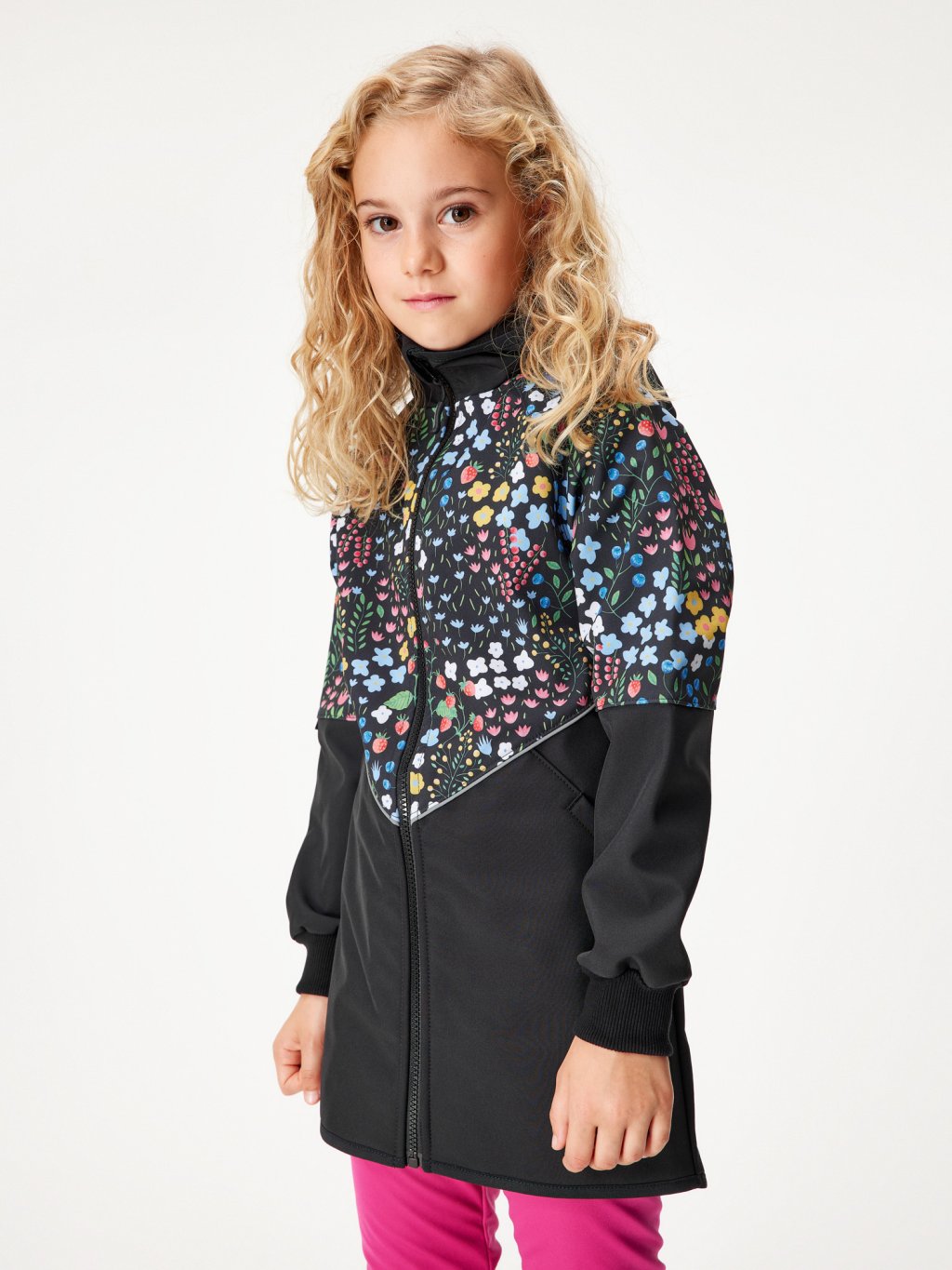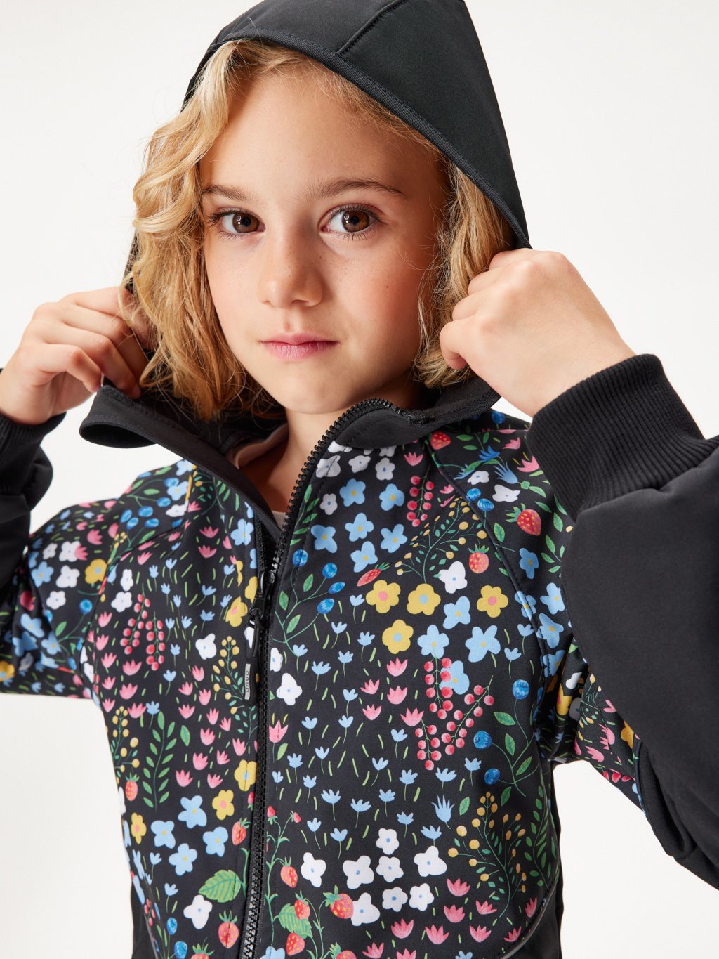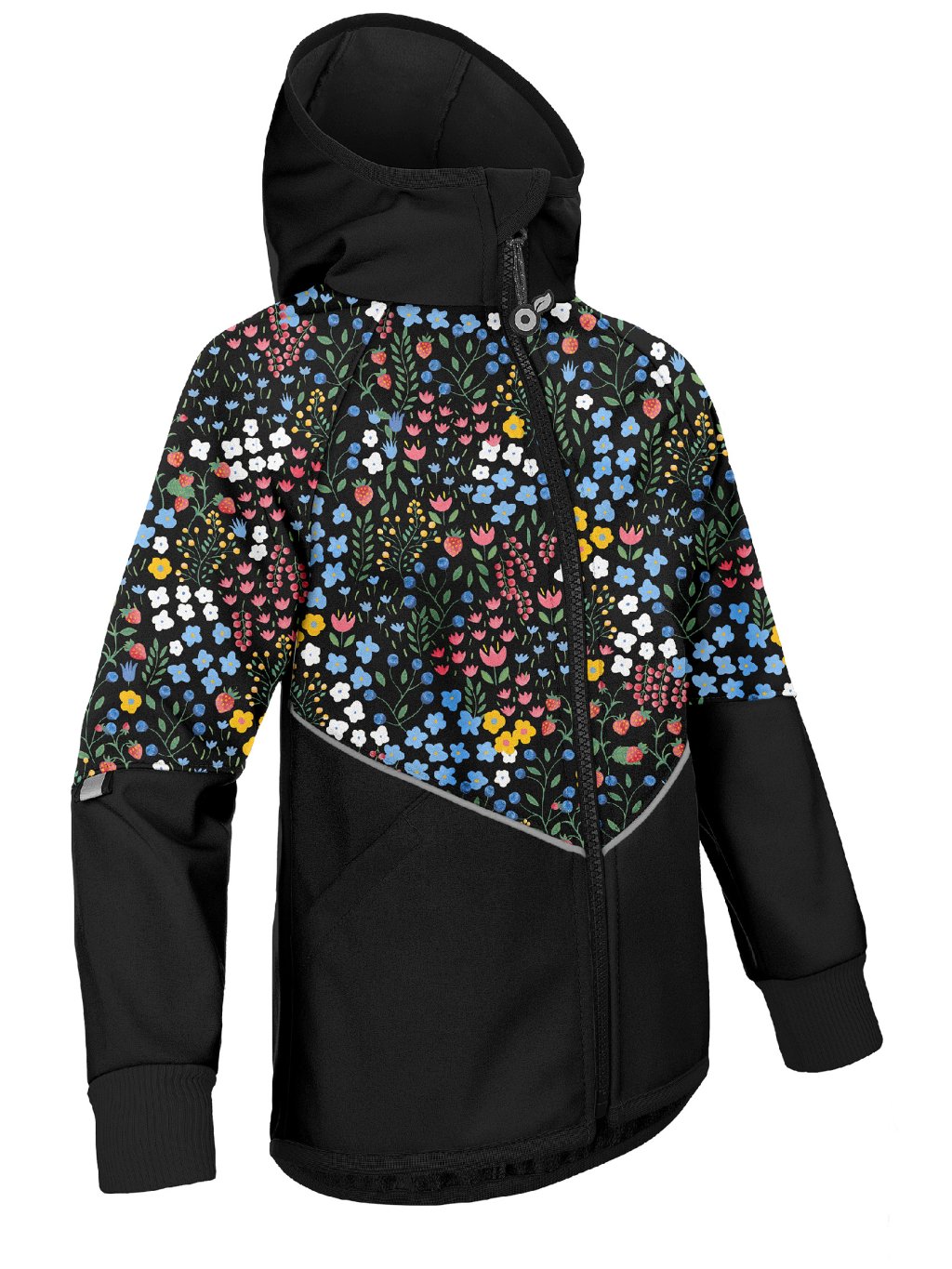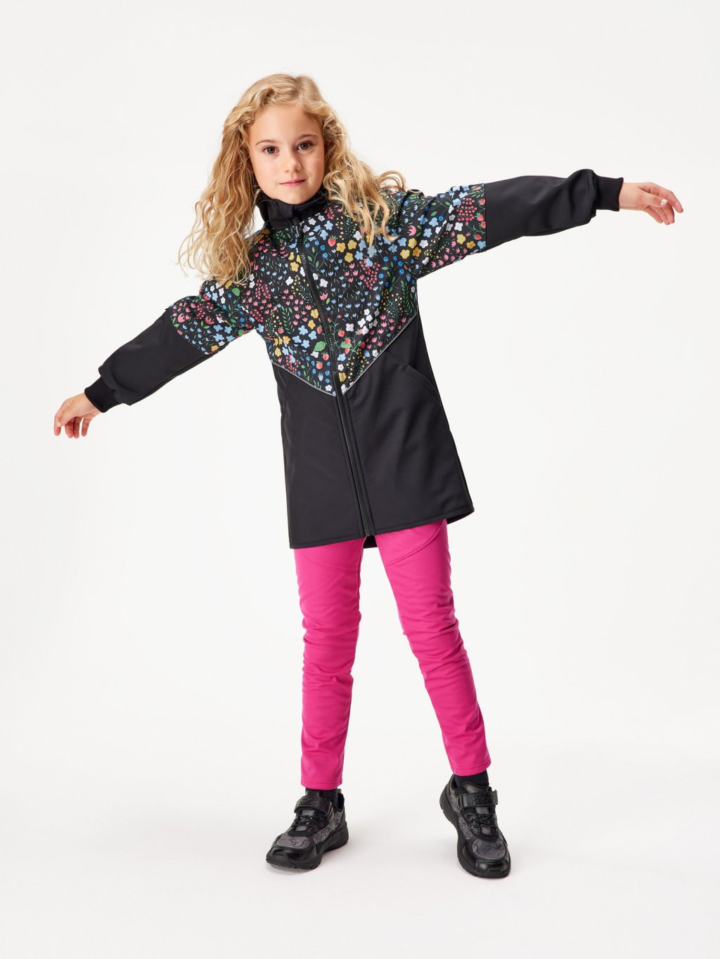Children's softshell parka with fleece, Black, Garden