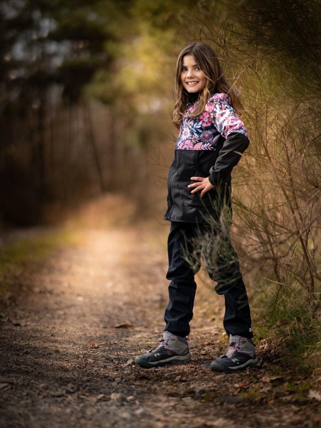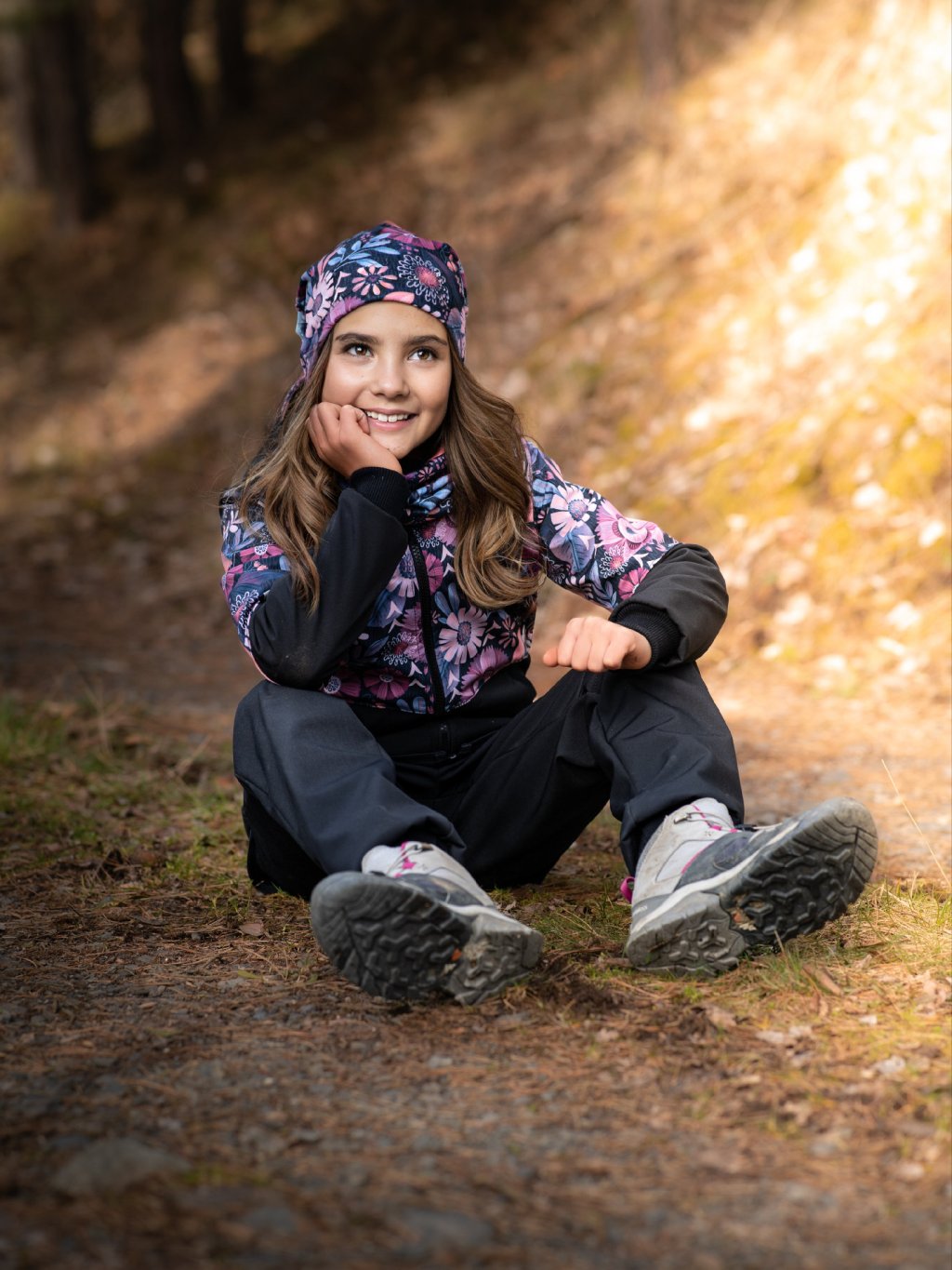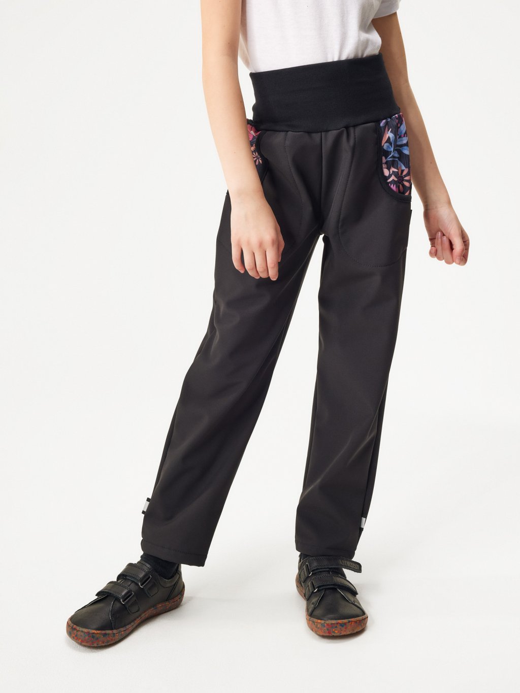 Children's softshell trousers with fleece Basic, Black, Magic Flowers