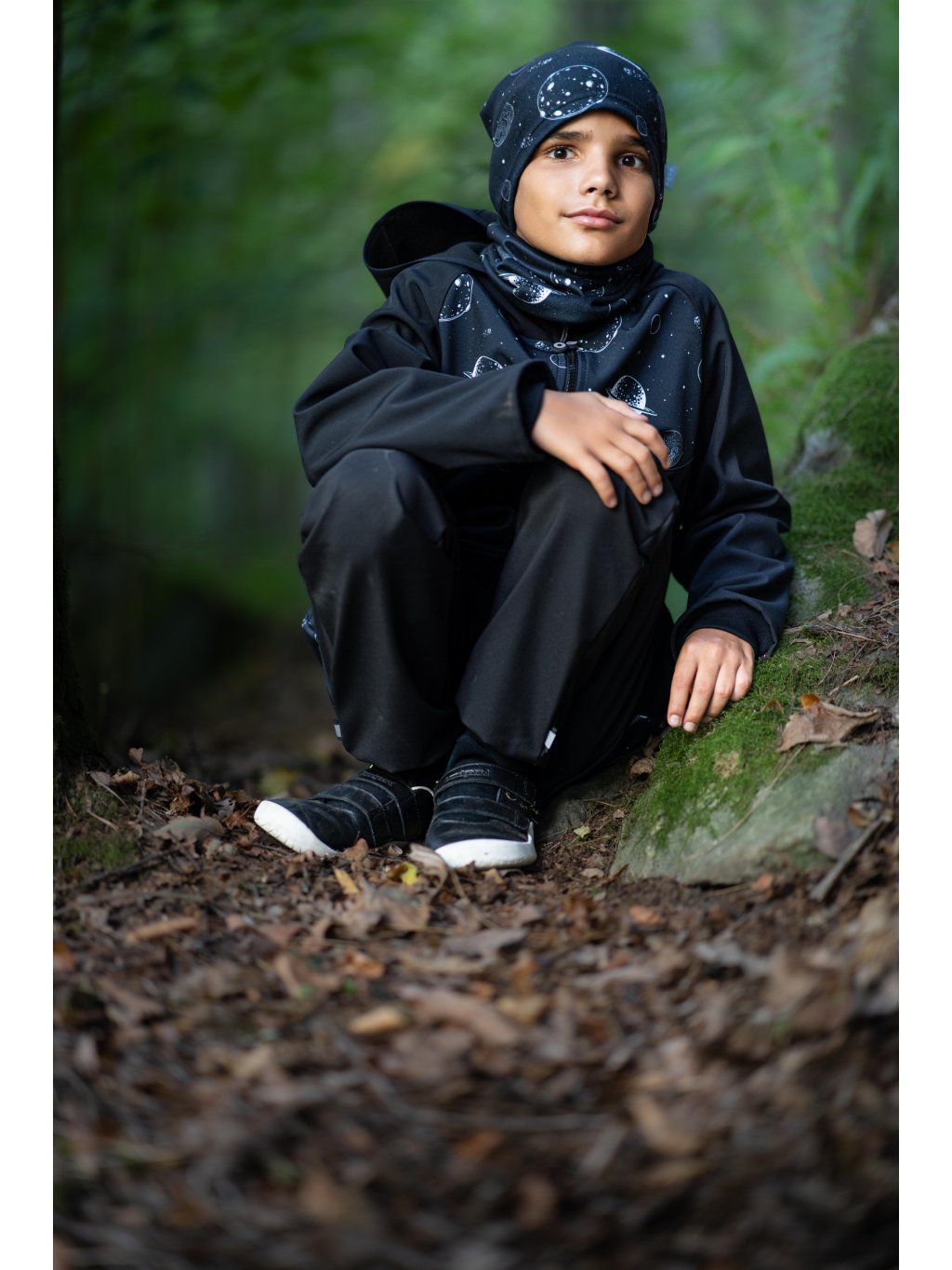 Straight pants style that fits nicely and is suitable for practically everyone. How did this piece win the hearts of so many children and parents? Let's start with strategically placed braids. In addition, we have equipped the waistband with a rubber band, which is particularly appreciated by the little skinny guys, because it can be tightened. The rubber band can also be removed, if not needed. The bottom parts of these pants don't have elastic cuffs, so that they are “as much pants as possible” and not sweatpants. As the pants do not have elastic cuffs at the bottom, you do not have to worry about them getting wet and you can also simply pull them over your kids’ shoes, when an extra layer is needed. To prevent cold air and water from entering in, there is an elastic band on the back of the leg. If there's one thing moms don't like, it's wet, muddy clothes crumpled in the school locker. That's why we equipped our trousers and jackets with a hanging loop. The loop is large enough for even the smallest hands to be able to hang the clothes up. You can also use it when packing clothes for travel.
