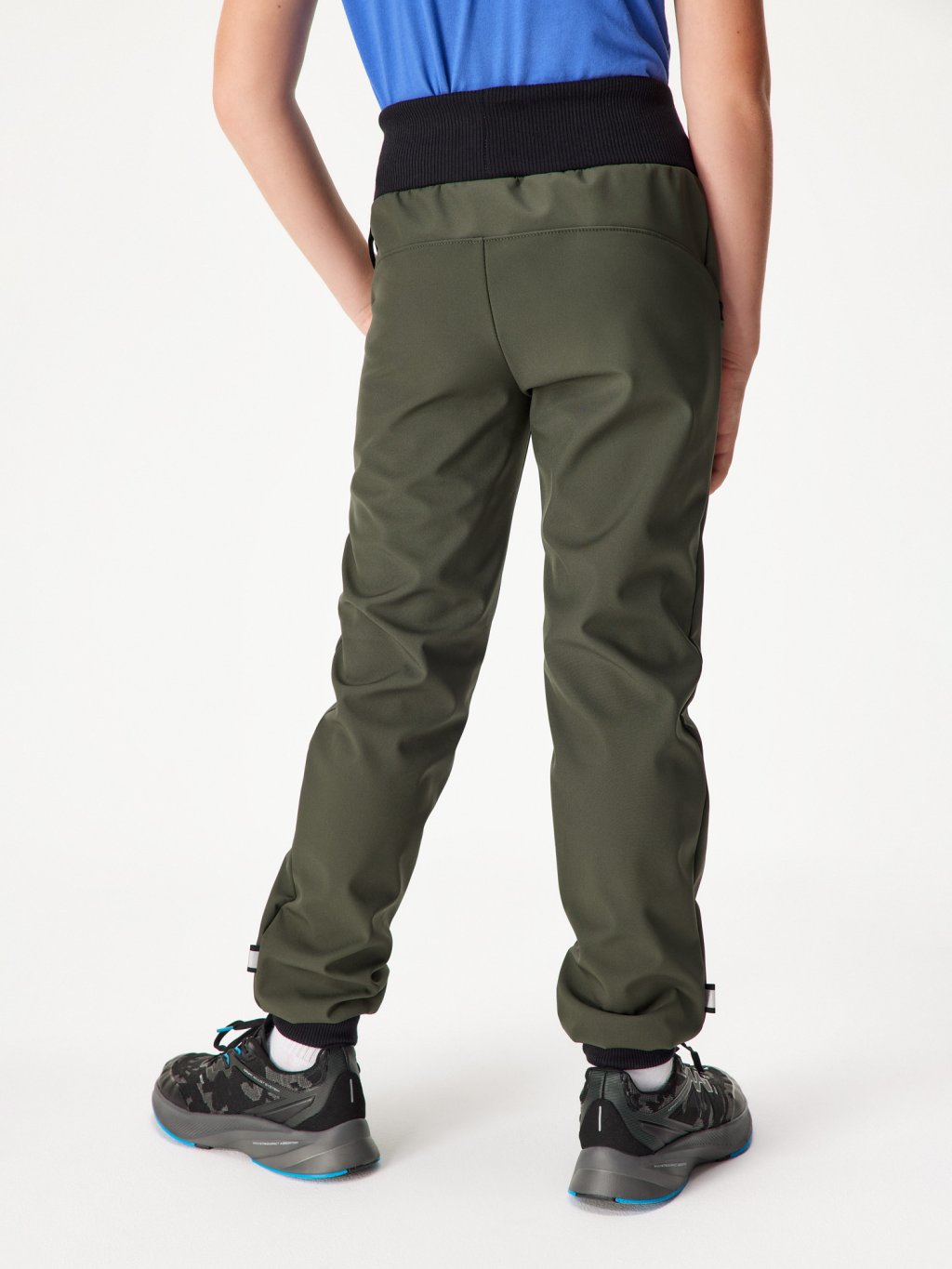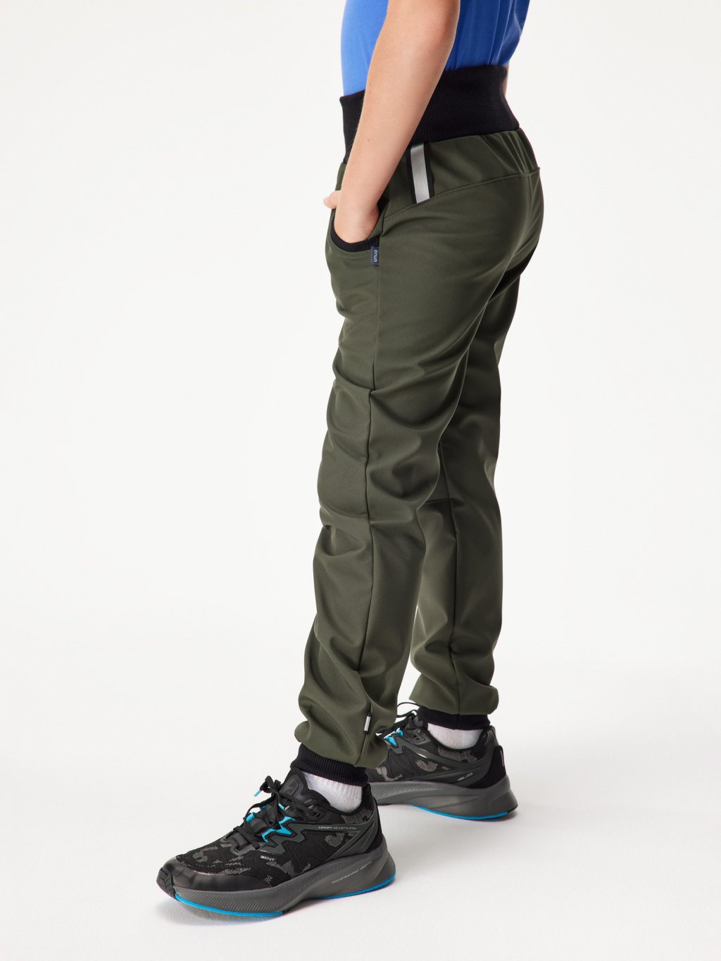 These modern, rather narrower style pants are going to be an exciting choice for every little skater, or even a good little student, who wants to show off in front of the teacher, how ready he is for the school trip in his functional apparels. The pleats on the knees of these pants aren't just a fashionable detail. They serve a purpose, making the pants more flexible, incredibly comfortable, and ensuring they stay in place as you move around. How did this piece win the hearts of so many children and parents? Let's start with strategically placed braids. The soft knit waistband protects the lower back and keeps the pants in place, in a very comfortable way for the child and in any position. The trousers are also equipped with elastic cuffs that protect the ankles from getting cold and wet and it makes it easier to slip into boots.