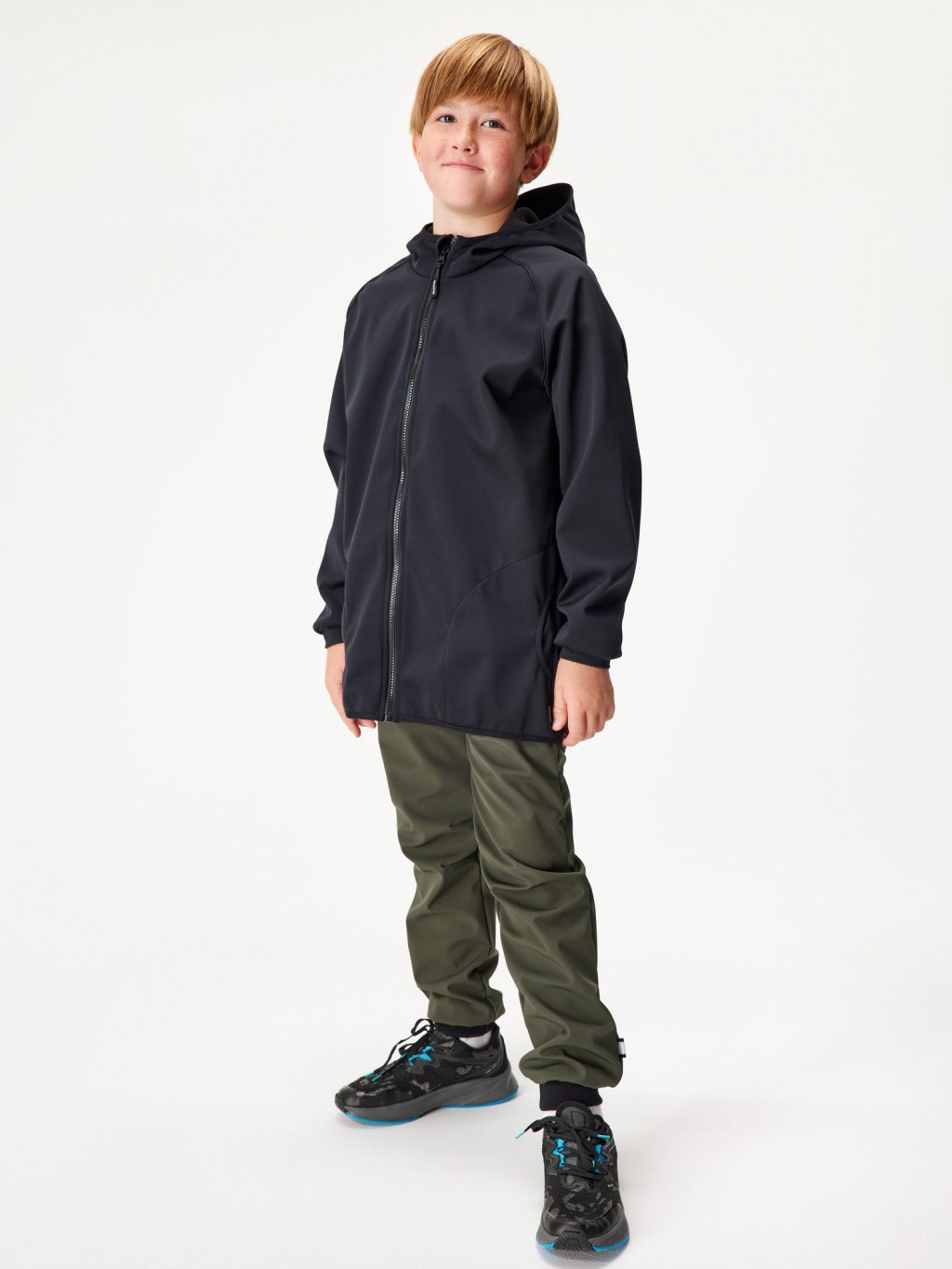 Material from the cosmos, maybe mums just dream. It's warm when it blows around, but when the sun shines, the special membrane makes sure that the kids don't sweat in it. Today, this material is mainly made from recycled PET bottles. Smaller children will use this material on their jacket all year round, but if you want to know when to use it, look at our guide. The material is not completely water-resistant, like a raincoat, but it can handle smaller rains easily. Small accidents can only be wiped with a cloth. Softshell is fitted with a special treatment with high resistance in the abrasion. Water resistance:
