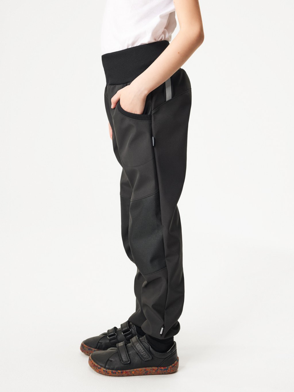 These modern, rather narrower style pants are going to be an exciting choice for every little skater, or even a good little student, who wants to show off in front of the teacher, how ready he is for the school trip in his functional apparels. We've added a super-durable fabric to the knees that can handle some of the rough stuff. How did this piece win the hearts of so many children and parents? Let's start with strategically placed braids. The soft knit waistband protects the lower back and keeps the pants in place, in a very comfortable way for the child and in any position. The trousers are also equipped with elastic cuffs that protect the ankles from getting cold and wet and it makes it easier to slip into boots.