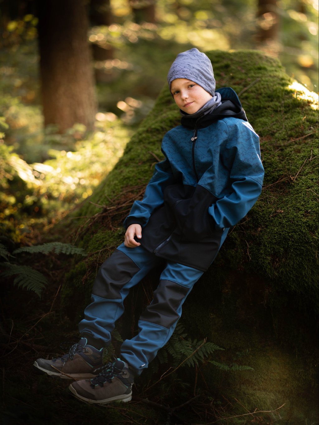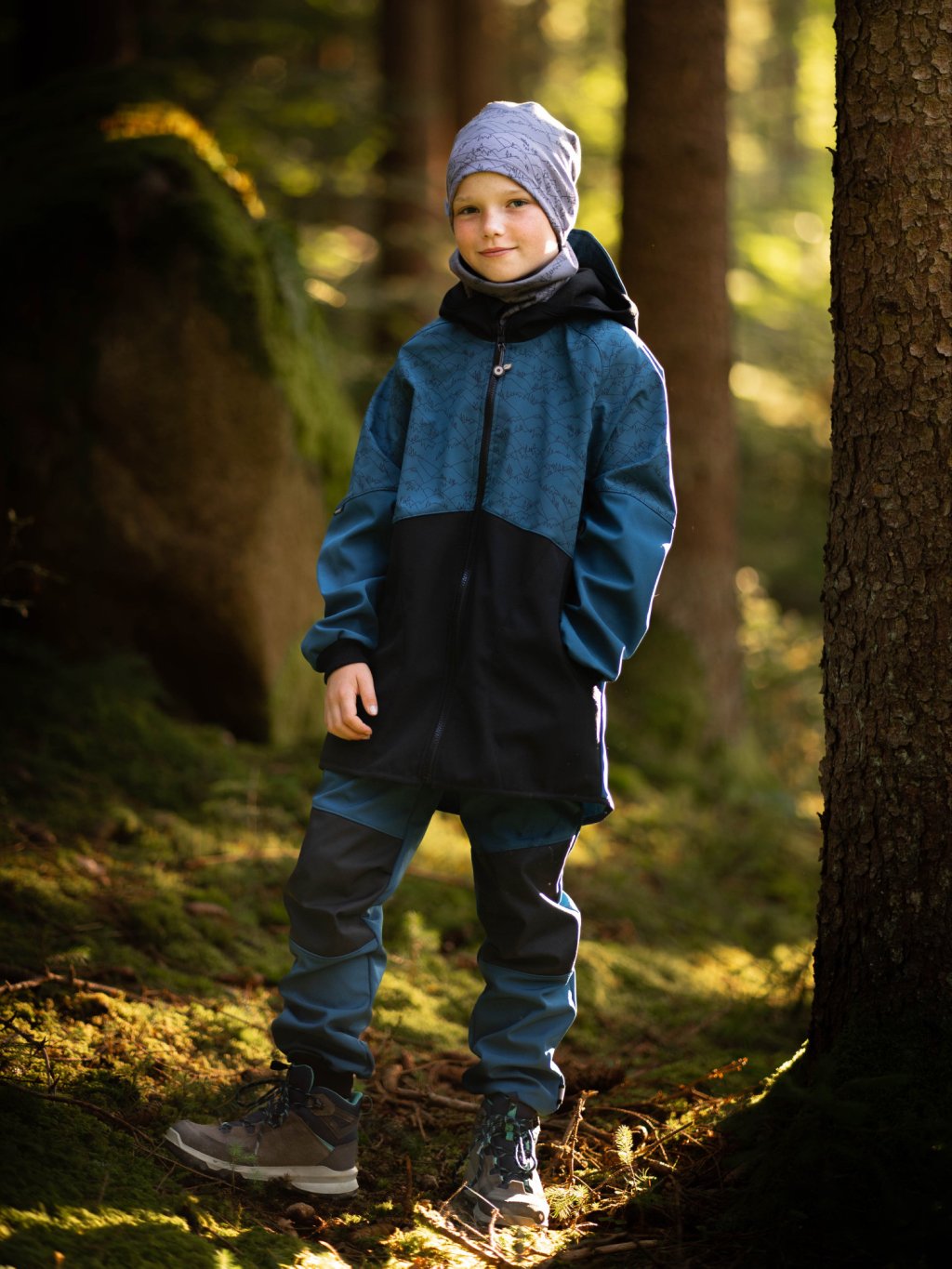 Material from the cosmos, maybe mums just dream. It's warm when it blows around, but when the sun shines, the special membrane makes sure that the kids don't sweat in it. Today, this material is mainly made from recycled PET bottles. Smaller children will use this material on their jacket all year round, but if you want to know when to use it, look at our guide. The material is not completely water-resistant, like a raincoat, but it can handle smaller rains easily. Small accidents can only be wiped with a cloth. Softshell is fitted with a special treatment with high resistance in the abrasion. Water resistance: