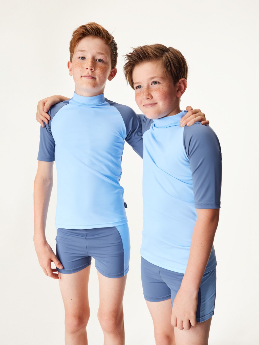 The collection is made of high quality Italian flock fabric with UV protection 50+. Recycled polyamide with OEKO-TEX® certification ensures that the clothes are environmentally friendly and safe for children's skin. In addition, this material is quick-drying, very pleasant to the touch and ensures maximum comfort during wear. Thanks to special technology in the production of the material, the UV protection is permanent and does not wash out after several washing cycles.