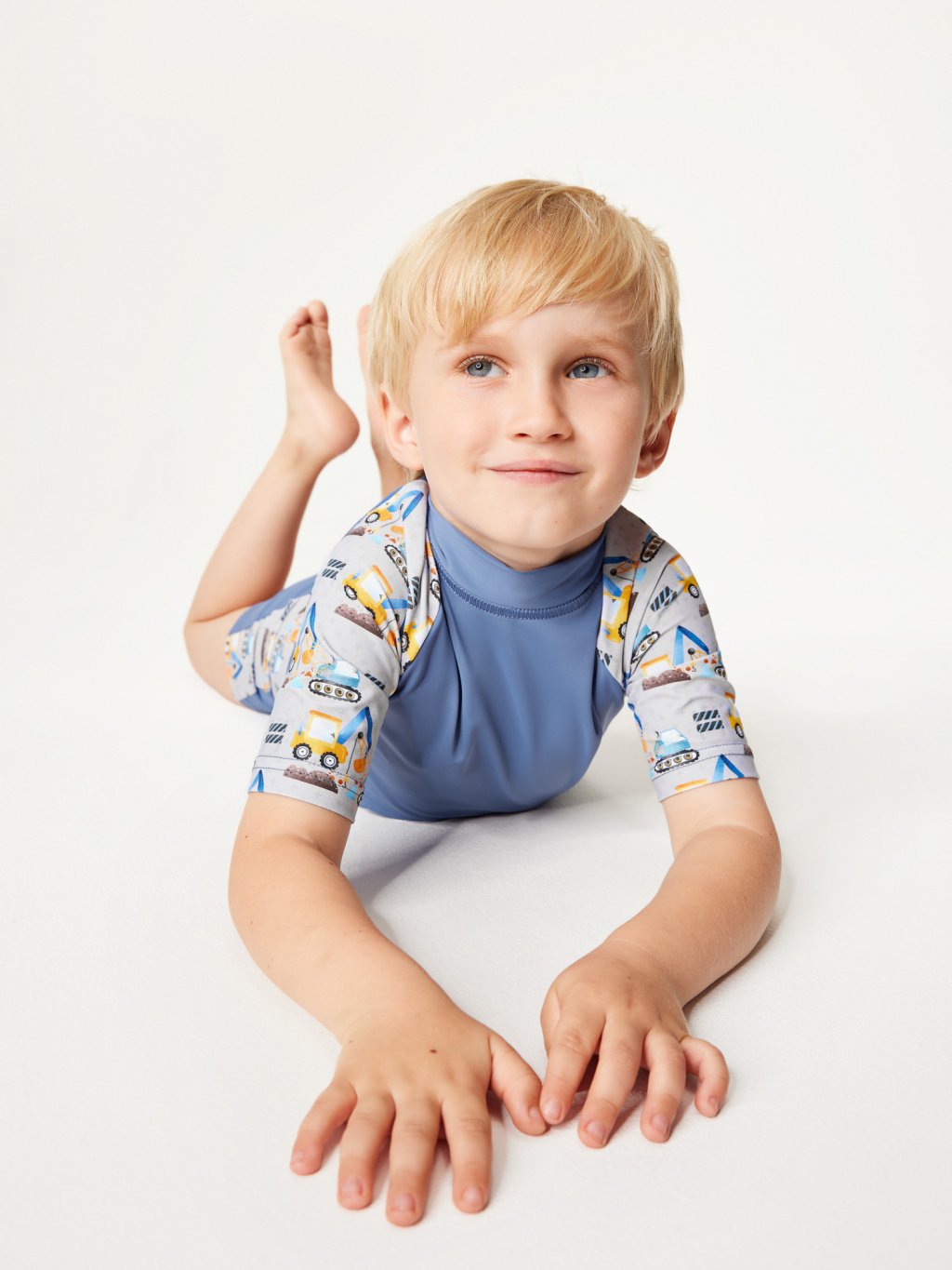 The collection is made of high quality Italian flock fabric with UV protection 50+. Recycled polyamide with OEKO-TEX® certification ensures that the clothes are environmentally friendly and safe for children's skin. In addition, this material is quick-drying, very pleasant to the touch and ensures maximum comfort during wear. Thanks to special technology in the production of the material, the UV protection is permanent and does not wash out after several washing cycles.