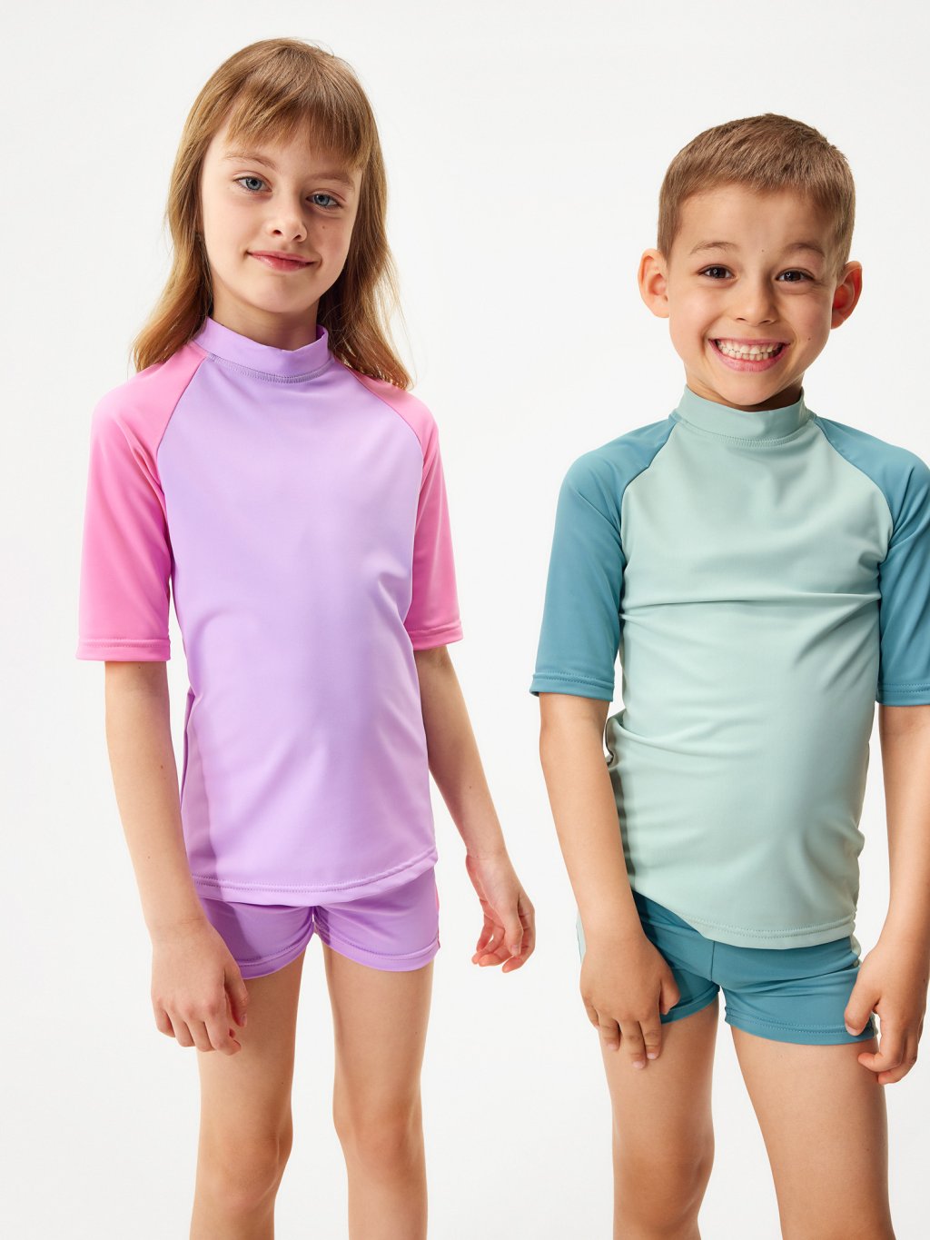The collection is made of high quality Italian flock fabric with UV protection 50+. Recycled polyamide with OEKO-TEX® certification ensures that the clothes are environmentally friendly and safe for children's skin. In addition, this material is quick-drying, very pleasant to the touch and ensures maximum comfort during wear. Thanks to special technology in the production of the material, the UV protection is permanent and does not wash out after several washing cycles.