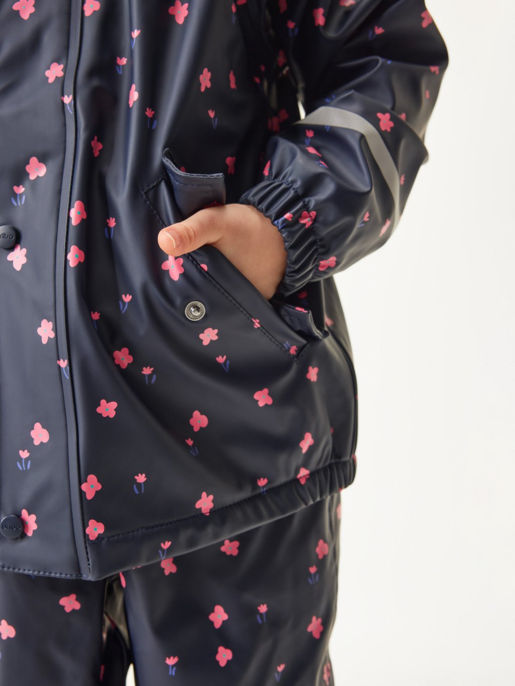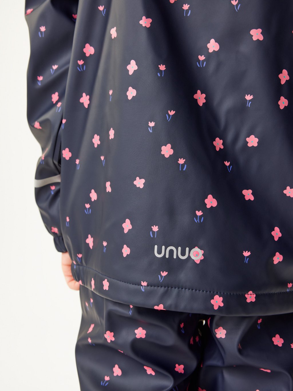 Rain, wind, puddles and mud? No problem! Our children's waterproof jacket with fleece is the ideal choice for little adventurers who are not afraid of any weather. The rubberised material with durable sealed seams ensures that not a drop of water will penetrate, while the soft fleece inside will provide cosy warmth even on colder days. The jacket features a handy hood that protects the head from rain and wind, so children will stay dry and comfortable even in inclement weather. Thanks to elasticated hems at the waist, sleeves and hood, the jacket fits perfectly and prevents getting wet. Reflective elements on the sleeves, hood and back increase children's safety in low visibility. Zip fastenings and snaps with the unuo logo make it easy to put on and the handy pockets for small treasures are snap-closed to ensure nothing falls out. With this jacket, kids can enjoy every outdoor adventure, whether they choose to jump in puddles or explore forest paths! The waterproof collection is designed in the Czech Republic and sewn by an international sewing workshop.