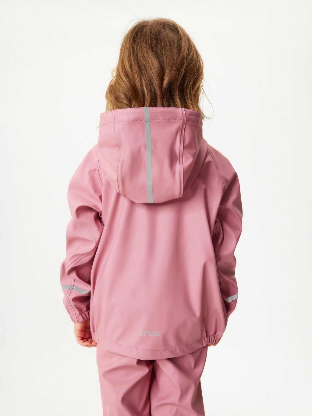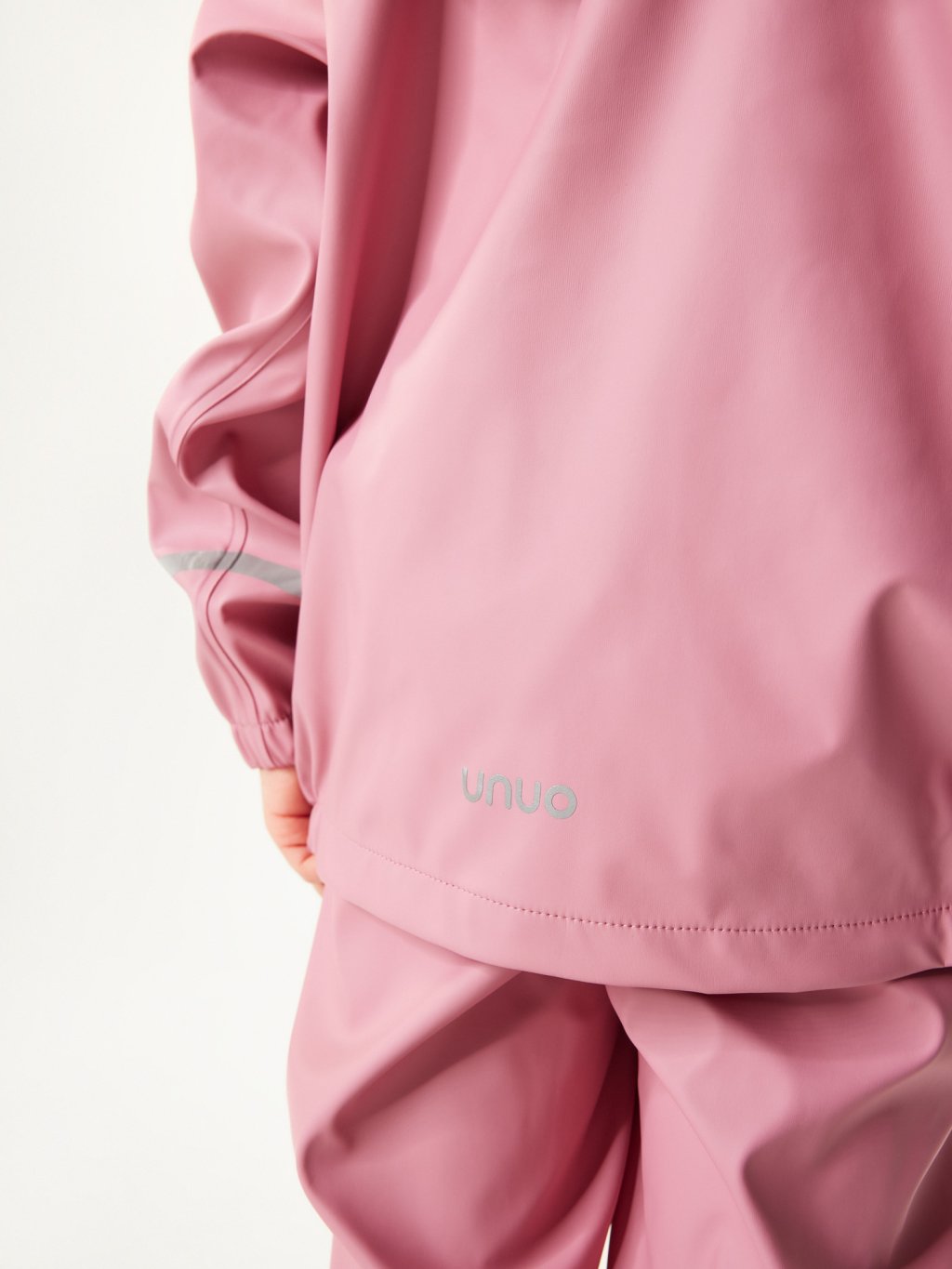 Rain, wind, puddles and mud? No problem! Our children's waterproof jacket with fleece is the ideal choice for little adventurers who are not afraid of any weather. The rubberised material with durable sealed seams ensures that not a drop of water will penetrate, while the soft fleece inside will provide cosy warmth even on colder days. The jacket features a handy hood that protects the head from rain and wind, so children will stay dry and comfortable even in inclement weather. Thanks to elasticated hems at the waist, sleeves and hood, the jacket fits perfectly and prevents getting wet. Reflective elements on the sleeves, hood and back increase children's safety in low visibility. Zip fastenings and snaps with the unuo logo make it easy to put on and the handy pockets for small treasures are snap-closed to ensure nothing falls out. With this jacket, kids can enjoy every outdoor adventure, whether they choose to jump in puddles or explore forest paths! The waterproof collection is designed in the Czech Republic and sewn by an international sewing workshop.