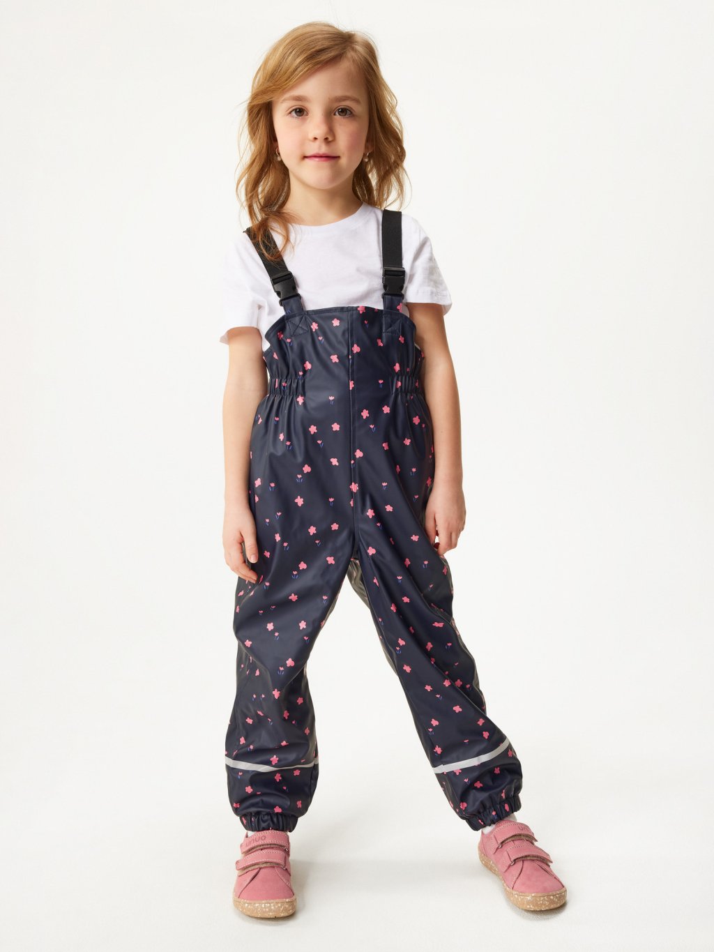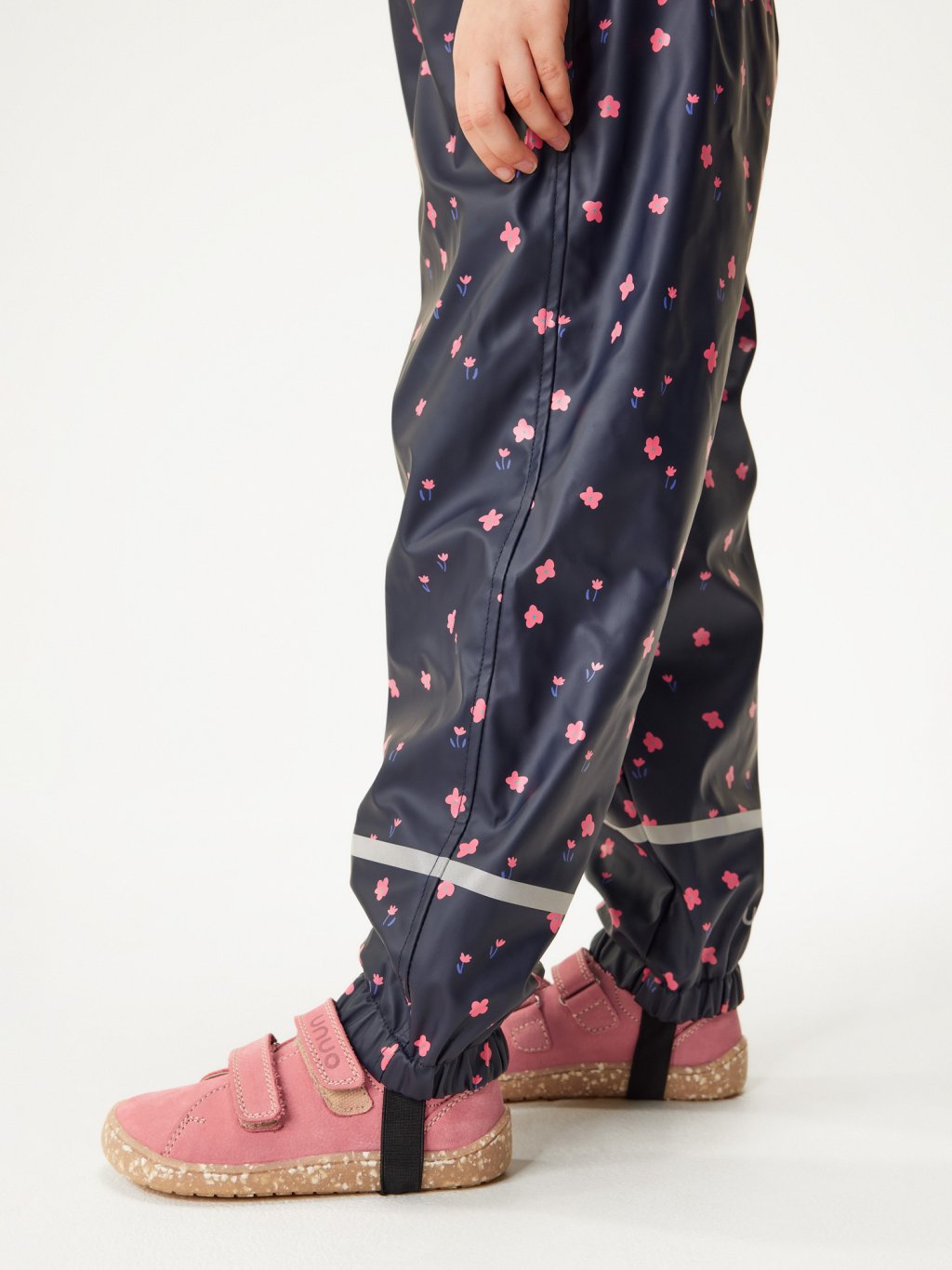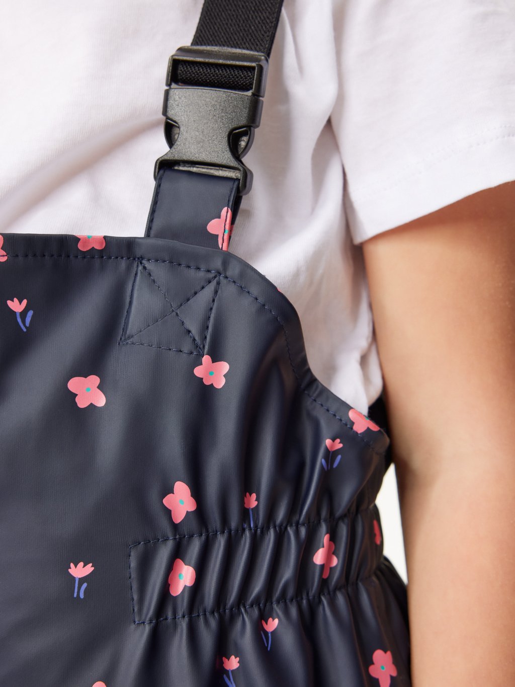 Rain, mud and puddles will no longer be an obstacle! These kids' waterproof trousers with fleece are ideal for outdoor adventures in all weathers. Thanks to the durable rubberised material and sealed seams, they won't let a drop of water through, so kids can jump in puddles and roll in the mud without worry. The inner fleece will provide cosy warmth, while the elasticated leg bands will prevent soaking even in heavy rain. In addition, they feature an elasticated leg that can be fastened behind the shoe, which prevents the legs from rolling up and provides even better protection against moisture. The practical lacl with adjustable suspenders ensures that the trousers fit perfectly and do not restrict movement. Reflective elements on the legs increase safety and visibility in twilight. These pants are a great choice for little adventurers who want to enjoy outdoor play no matter the weather! The waterproof collection is designed in the Czech Republic and sewn by a foreign sewing workshop.