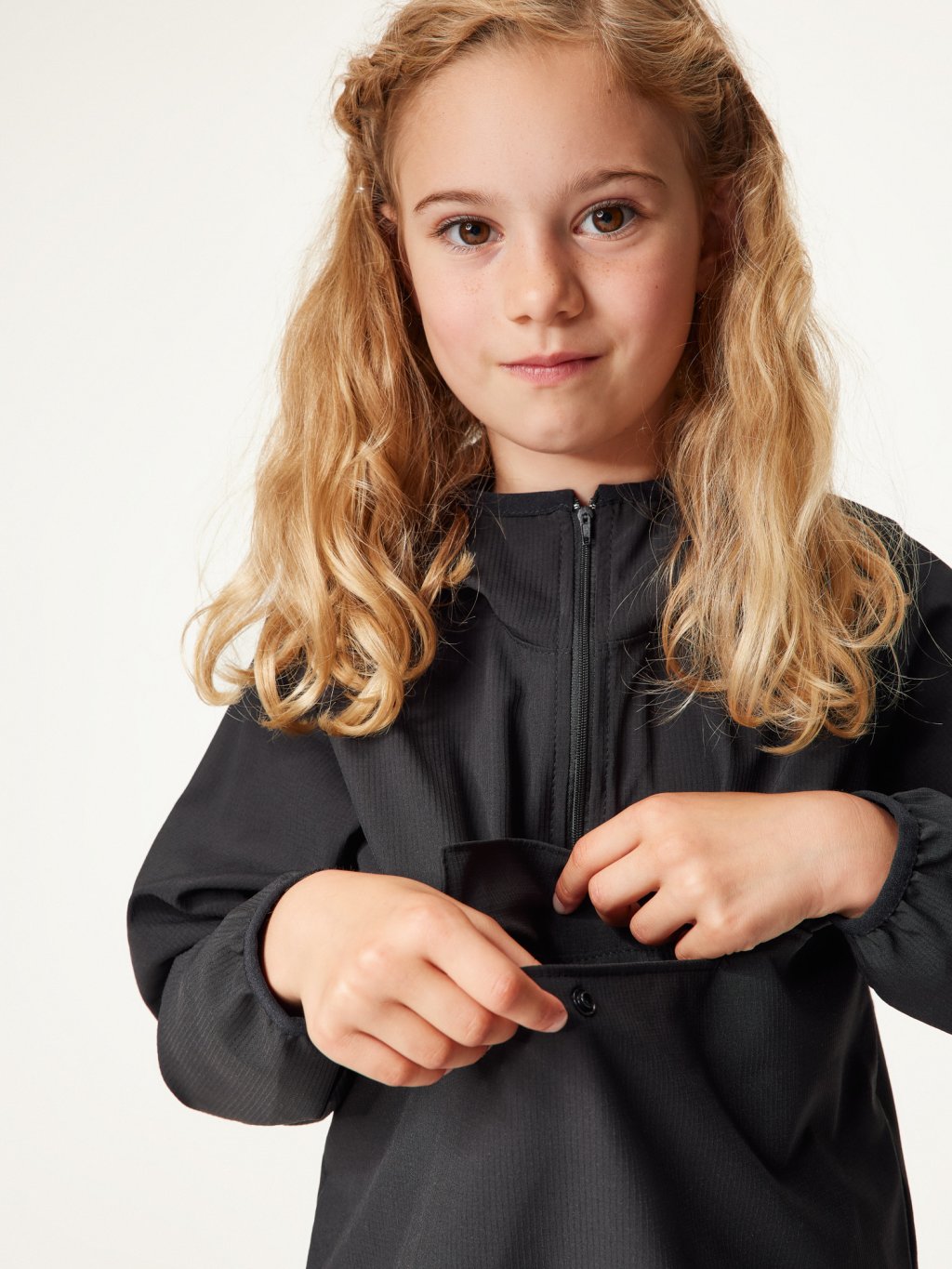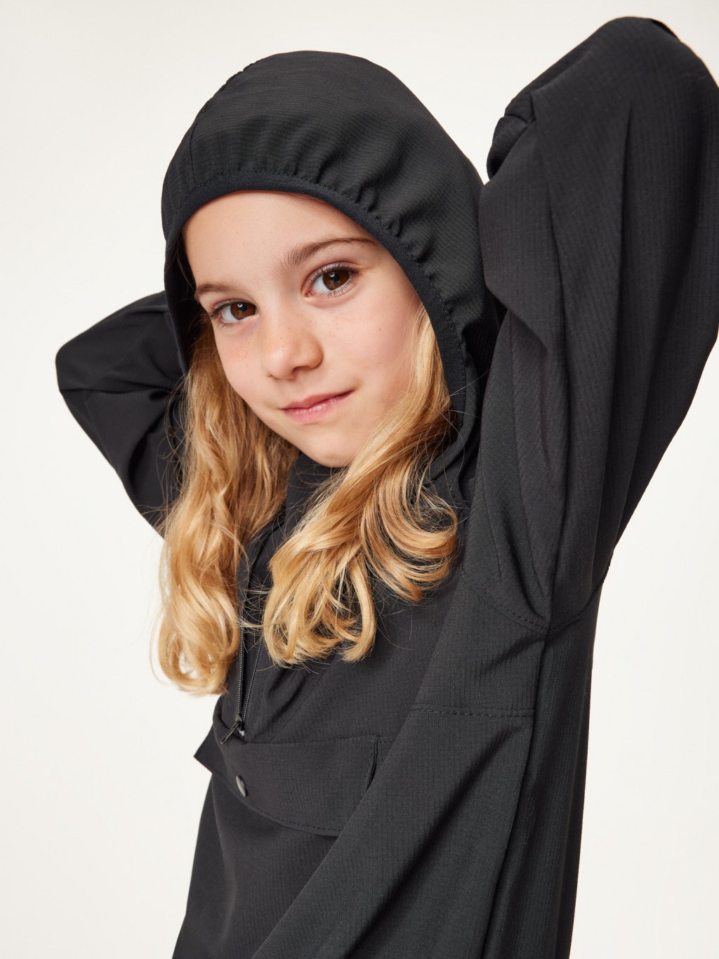 The ideal jacket for any summer adventure on trips or outdoor games. It fits over the head and thanks to the handy pocket, it's easy to fold and pack, meaning it fits easily into a small backpack. Whether your kids are heading on a family outing, playing in the garden or exploring the woods with friends, this windbreaker is the perfect companion. The fit is very versatile and is designed to be suitable for hiking, cycling or just a stroll around town. The functional, lightweight and durable material will protect your child from wind and light rain.The windbreaker is designed and manufactured in the Czech Republic.